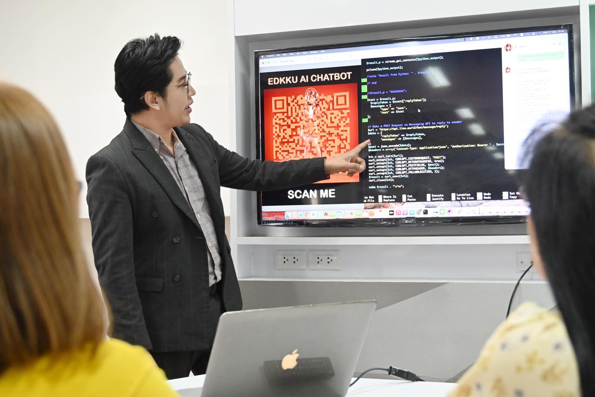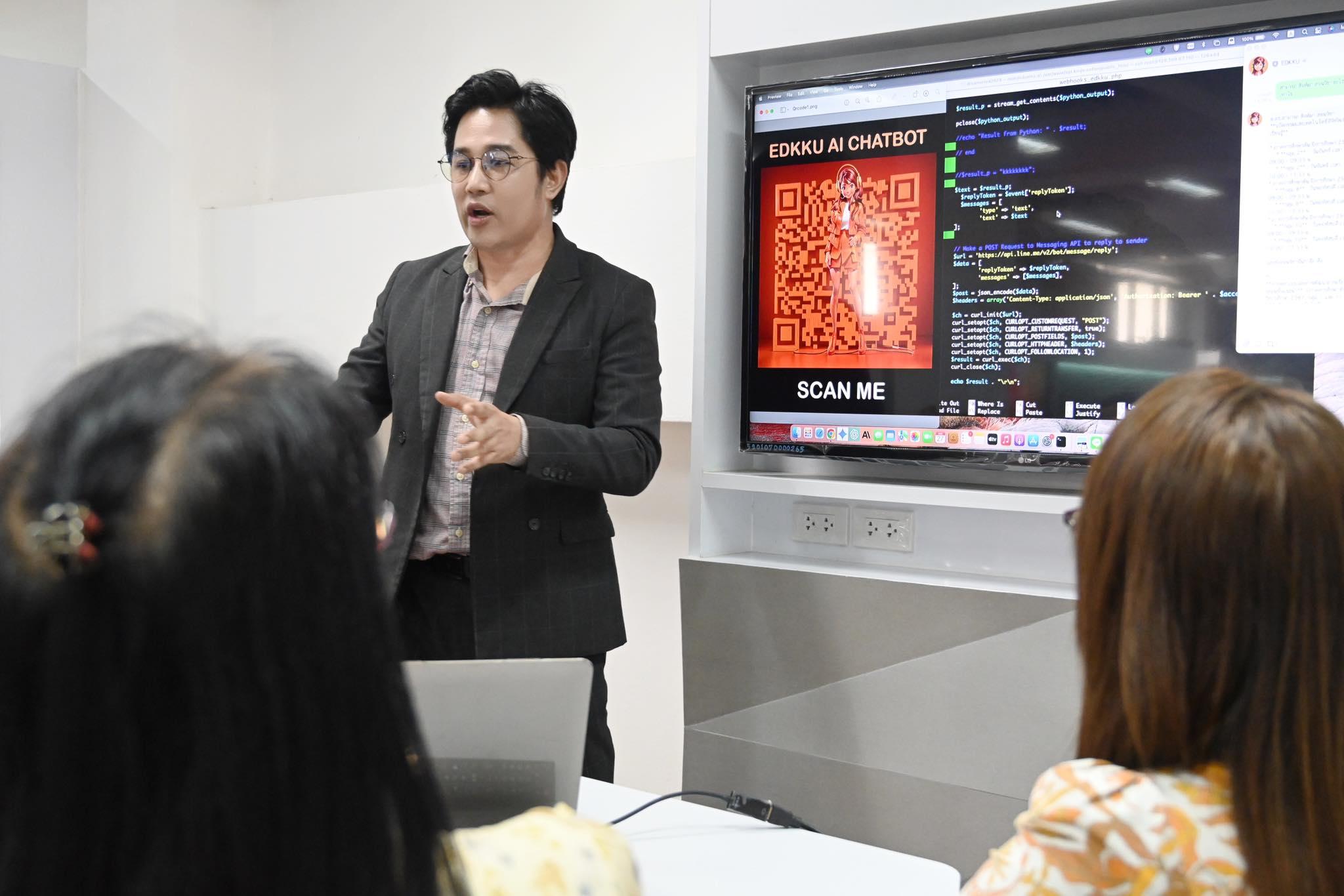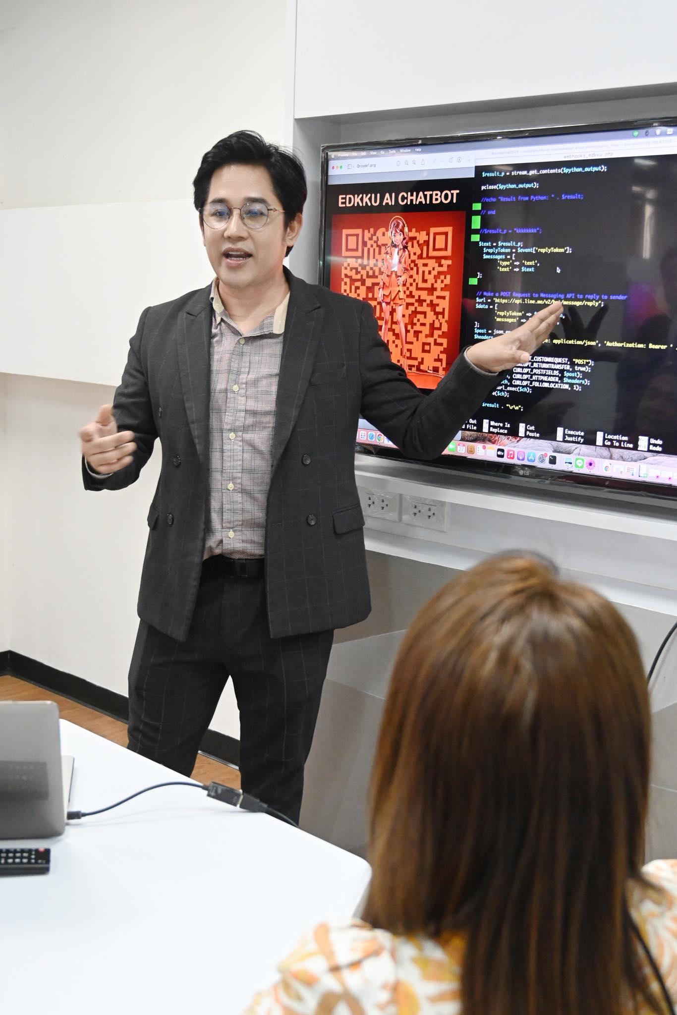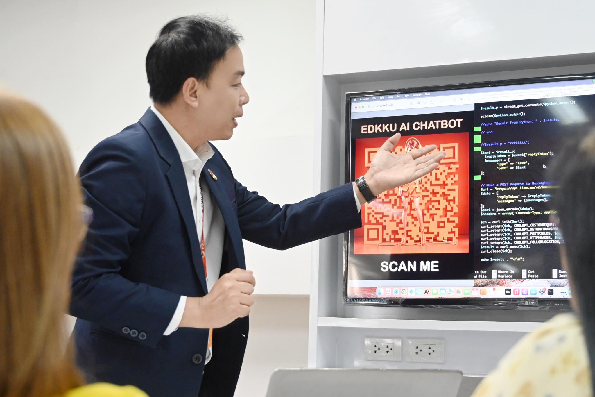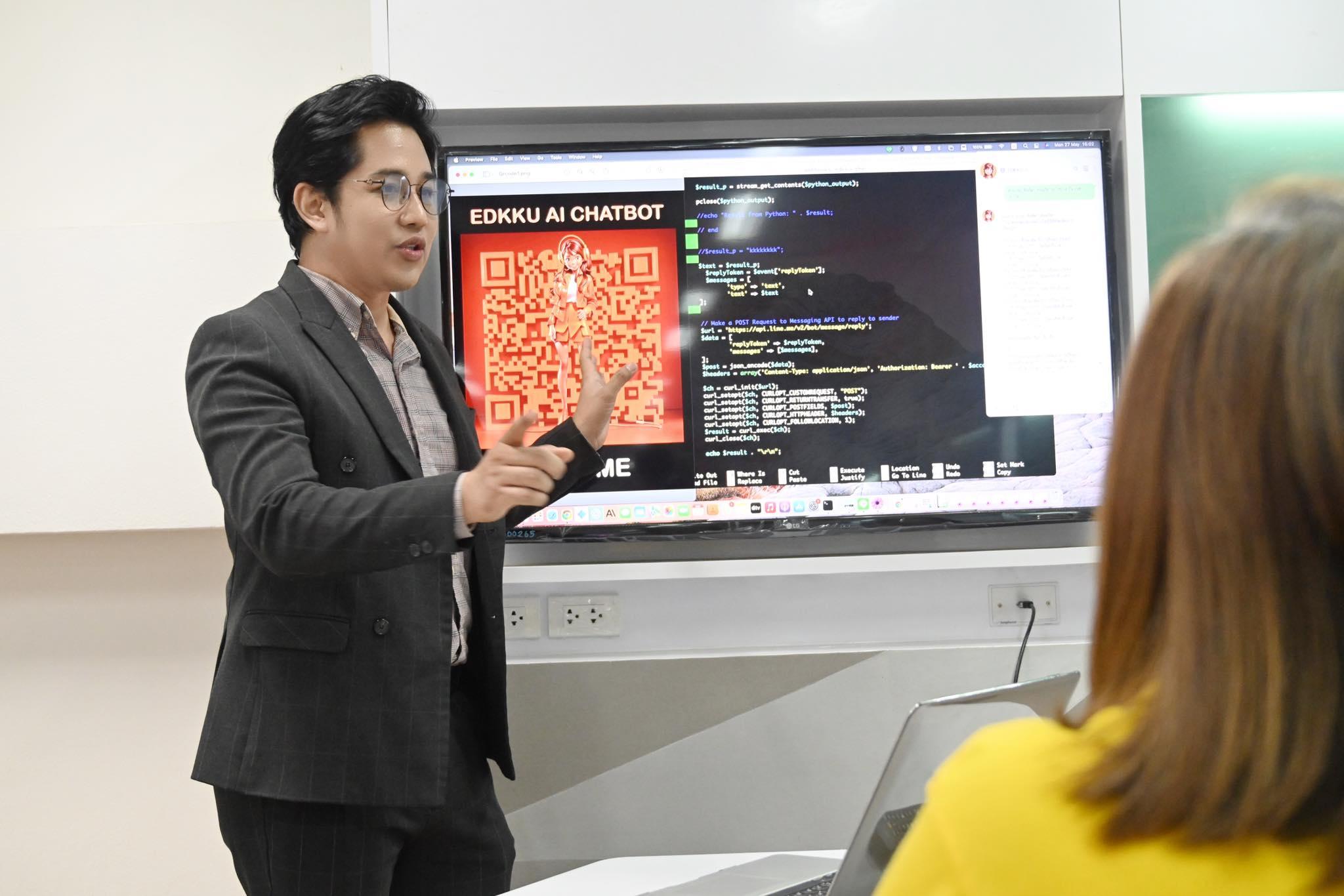 อาจารย์ ดร.สามารถ สิงห์มา อธิบายเพิ่มเติมว่า “ครูพร้อม” EDKKU AI CHATBOT ผู้ช่วยอัจฉริยะ สามารถให้บริการนักศึกษา อาจารย์ บุคลากร และผู้ใช้งานทั่วไป ในหลากหลายรูปแบบ เช่น
