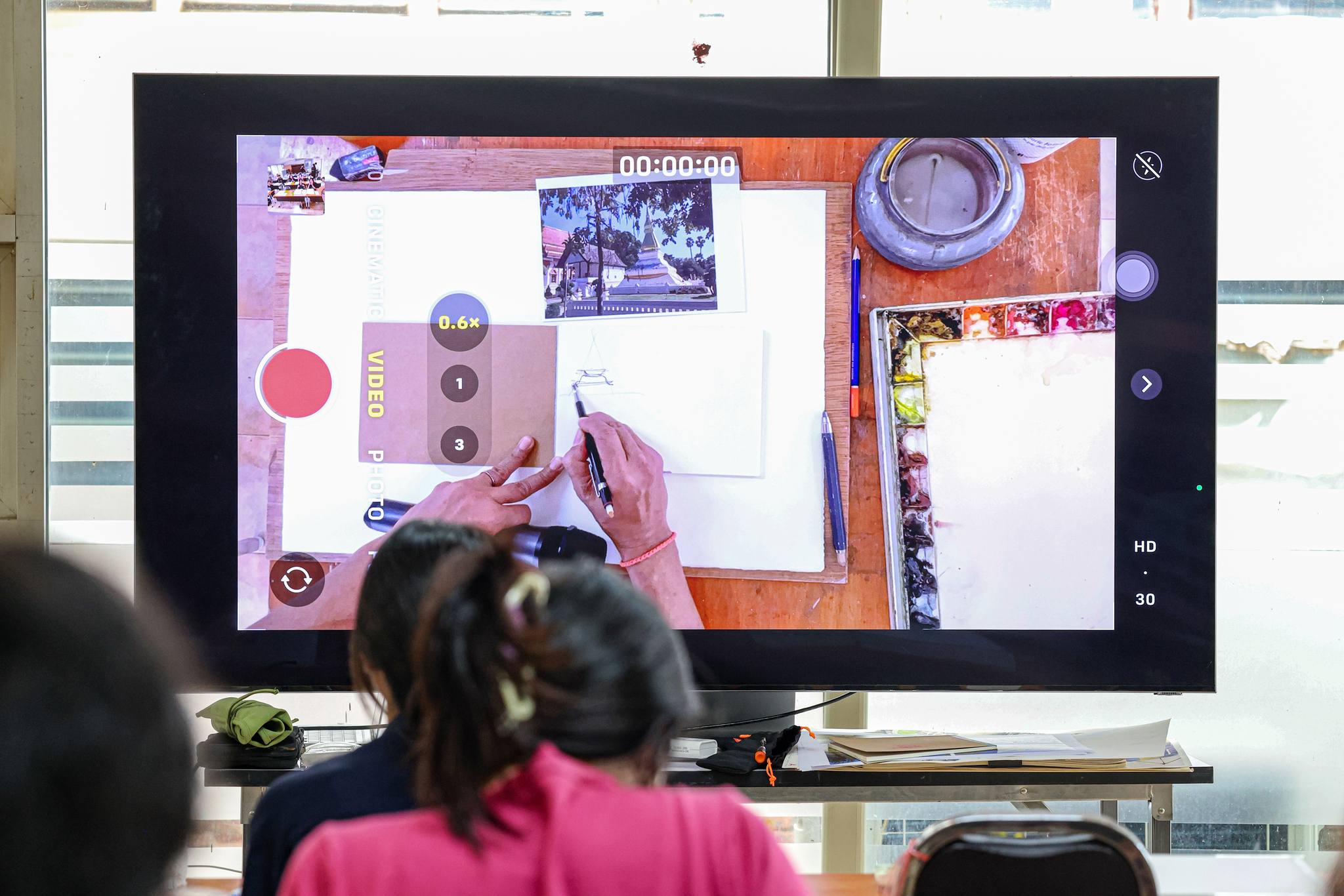 ช็อปวาดสีน้ำ “มาวาดเส้นสีน้ำแนวถาปัด” ท่ามกลางงานเทศกาลอีสานสร้างสรรค์ 2567 (Isan Creative Festival 2024) ซึ่งได้รับความสนใจจากผู้เข้าร่วมอย่างล้นหลาม สะท้อนให้เห็นถึงพลังดึงดูดของสีสันและจินตนาการที่ไร้ขีดจำกัด