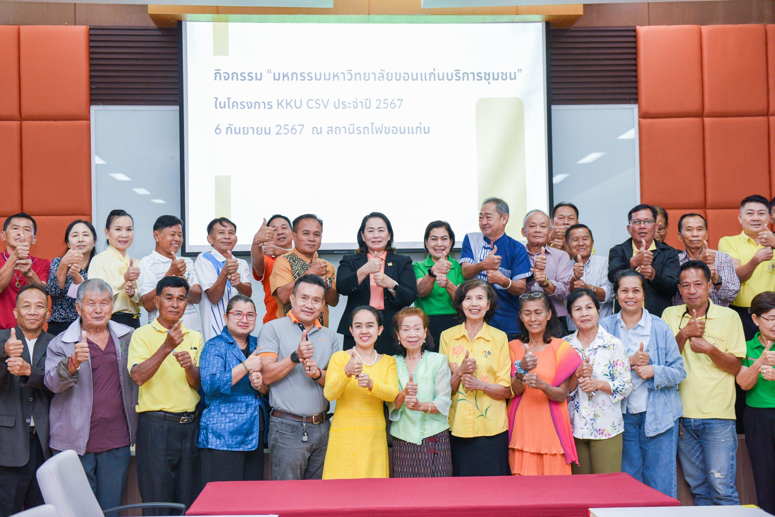 วันที่ 2 กันยายน 2567 มหาวิทยาลัยขอนแก่น นำโดย อาจารย์ณัฐสมล ธนกุลรังสฤษดิ์ รองอธิการบดีฝ่ายกฎหมายและสื่อสารองค์กร เป็นประธาน จัดประชุมประธานชุมชนและชมรม ในเขตเทศบาลนครขอนแก่น เพื่อหารือการจัดงานมหกรรมบริการชุมชนในโครงการ KKU CSV มหาวิทยาลัยขอนแก่นร่วมสร้างคุณค่าสู่สังคม ประจำปีงบประมาณ 2567 โดยมีผู้นำชุมชน และทีมงานจัดกิจกรรม KKU CSV เข้าร่วม กว่า 100 คน ณ ห้องประชุมสิริคุณากร 3 อาคารสิริคุณากร สำนักงานอธิการบดี มหาวิทยาลัยขอนแก่น