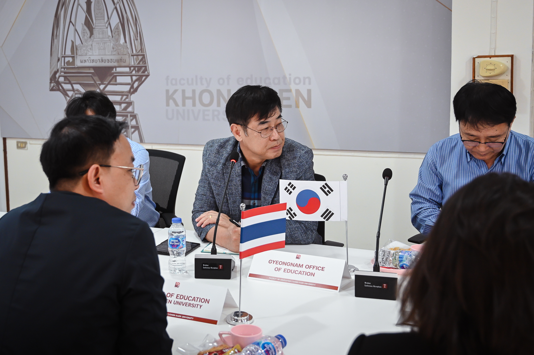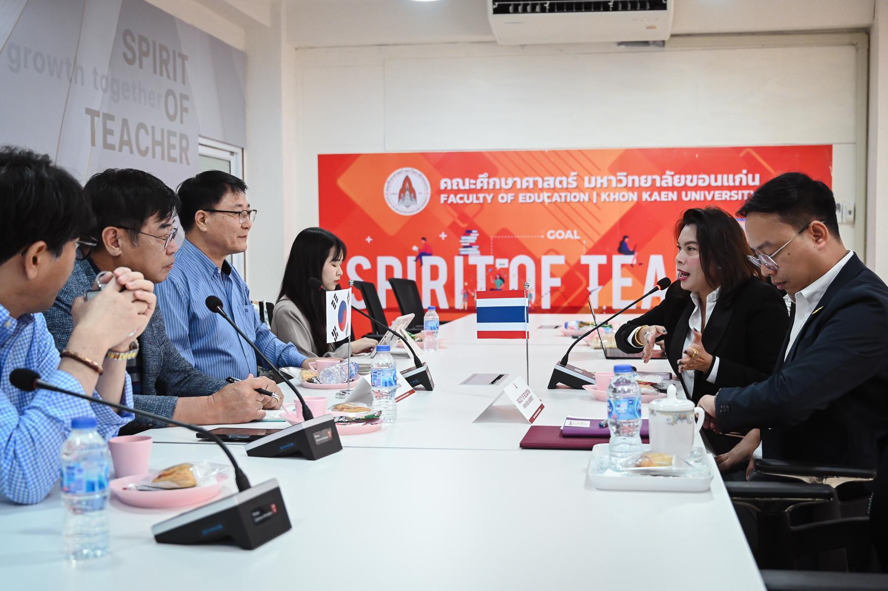 27 สิงหาคม 2567 – คณะศึกษาศาสตร์ มหาวิทยาลัยขอนแก่น ร่วมต้อนรับคณะผู้แทนจาก Gyeongsangnam-do Office of Education สาธารณรัฐเกาหลีใต้ นำโดย Mr.Lee Dong wook, Advisor and Assistant Superintendent โดยมี รศ.ดร.อิศรา ก้านจักร คณบดีคณะศึกษาศาสตร์ พร้อมด้วยคณะผู้บริหาร และ ผู้ทรงคุณวุฒิ ผศ.ดร.พูลศักดิ์ โกษียาภรณ์ รองผู้อำนวยการ สำนักงานสภานโยบายการอุดมศึกษา วิทยาศาสตร์ วิจัยและนวัตกรรมแห่งชาติ และ คุณจตุรภรณ์ โชคภูเขียว ผู้อำนวยการสำนักงานคณะประสานงานคลัสเตอร์ บพค. ร่วมให้การต้อนรับและหารือแนวทางความร่วมมือด้านการศึกษา การหารือในครั้งนี้ มีวัตถุประสงค์เพื่อแลกเปลี่ยนองค์ความรู้และประสบการณ์ด้านการศึกษา รวมถึงนวัตกรรมทางการศึกษาที่น่าสนใจของเกาหลีใต้ เพื่อนำมาประยุกต์ใช้ในการพัฒนาการศึกษาของประเทศไทยให้มีประสิทธิภาพยิ่งขึ้น โดยเฉพาะอย่างยิ่งในด้านการจัดการศึกษา และการนำเทคโนโลยีมาประยุกต์ใช้ในการเรียนการสอน ถือเป็นก้าวสำคัญในการสร้างความร่วมมือระหว่างคณะศึกษาศาสตร์ มหาวิทยาลัยขอนแก่น และ Gyeongsangnam-do Office of Education ซึ่งจะนำไปสู่การแลกเปลี่ยนนักศึกษา อาจารย์ และบุคลากรทางการศึกษา รวมถึงการพัฒนาร่วมกันในโครงการวิจัยและนวัตกรรมทางการศึกษาในอนาคต