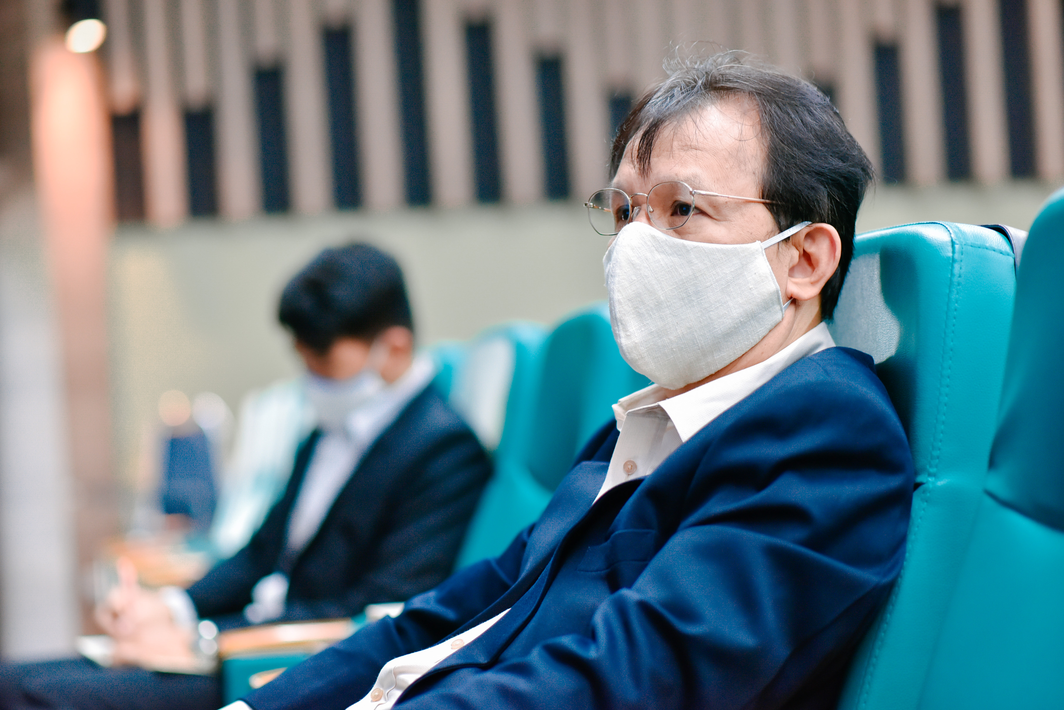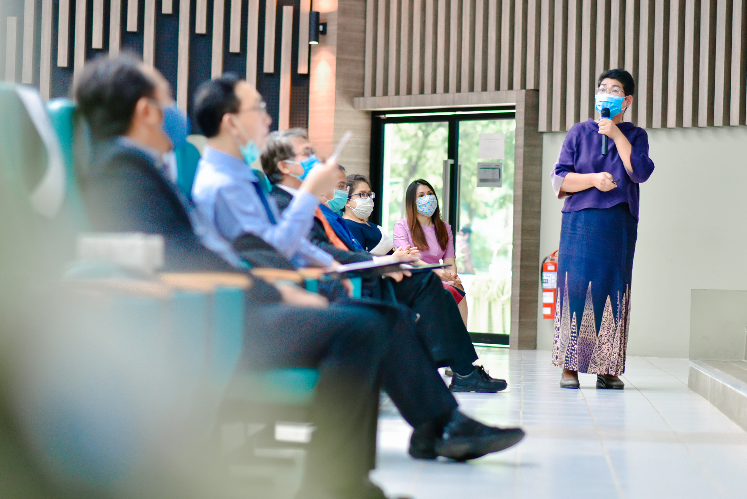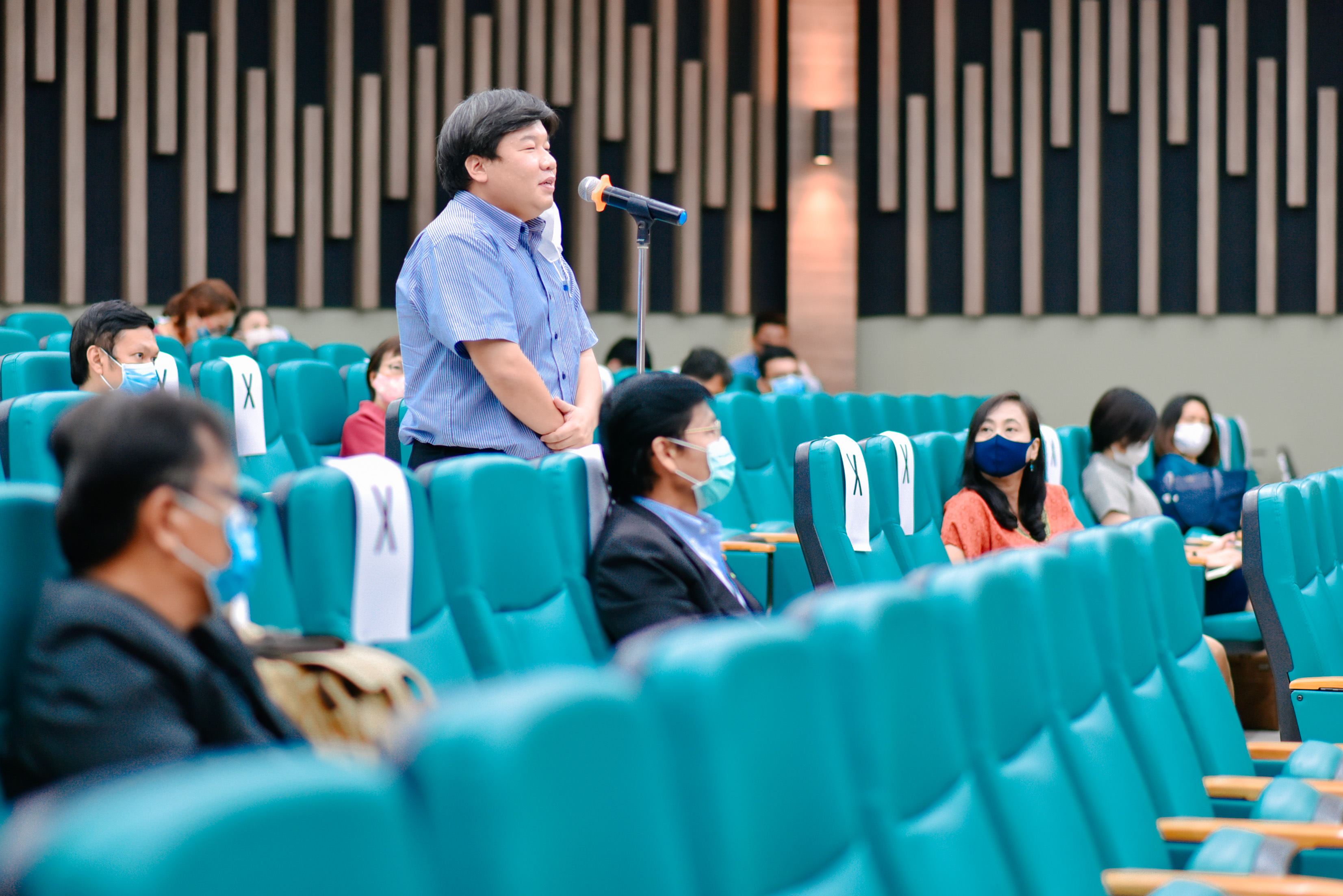 จากนั้น รศ.นพ.ชาญชัย พานทองวิริยะกุล อธิการบดี ได้ให้ข้อเสนอแนะแนวทางการบริหารงาน พร้อมกล่าวให้กำลังใจ คณะผู้บริหารและบุคลากรคณะเกษตรศาสตร์ ให้ผ่านพ้นวิกฤตโควิด-19 ครั้งนี้โดยเร็วที่สุด