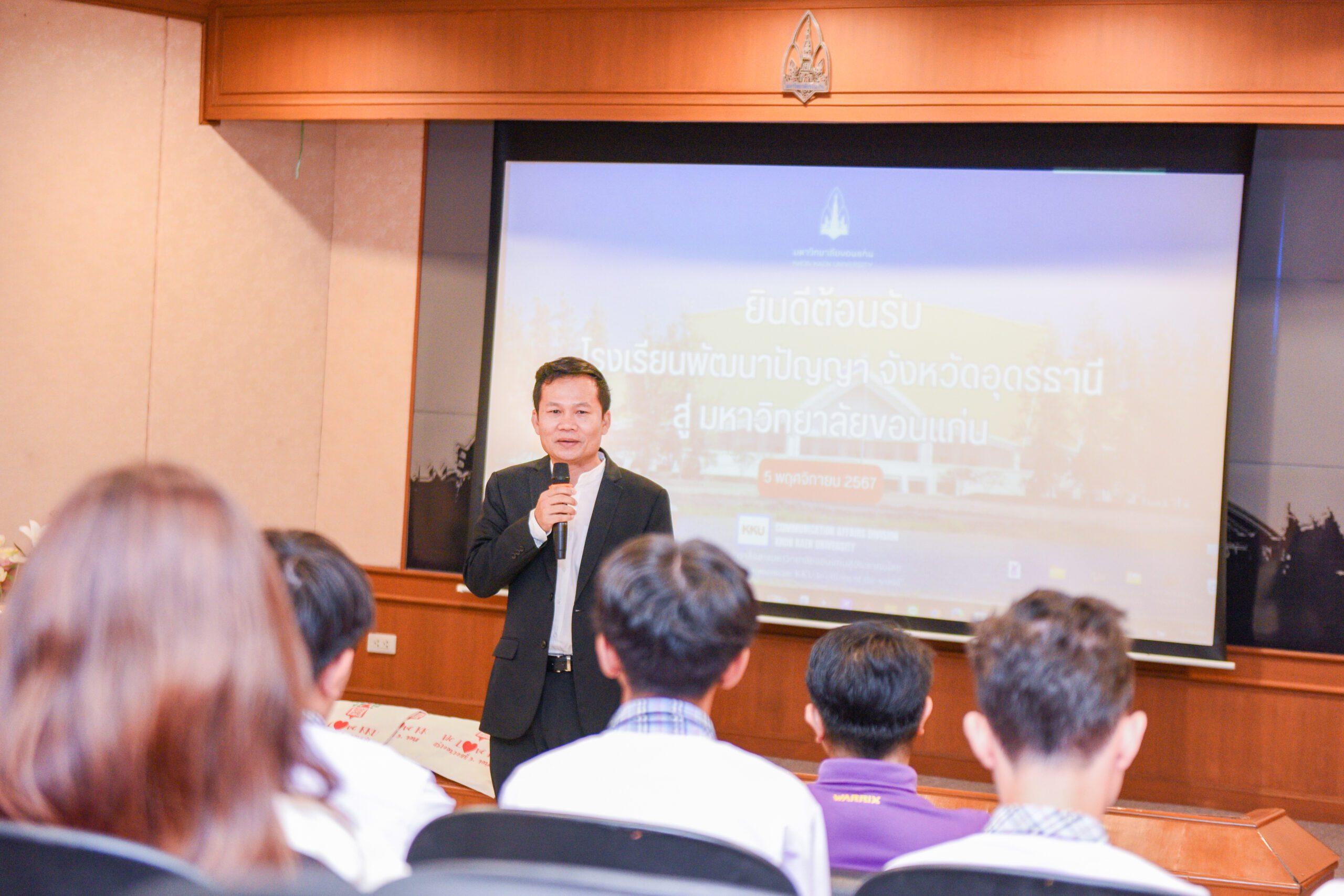 วันที่ 5 พฤศจิกายน 2567 มหาวิทยาลัยขอนแก่น ให้การต้อนรับ คณะครูและนักเรียน โรงเรียนพัฒนาปัญญา จังหวัดอุดรธานี เข้าเยี่ยมชมคณะ/สาขาวิชา พร้อมกับรับการแนะแนวการศึกษาต่อมหาวิทยาลัยขอนแก่น โดยรับเกียรติจาก นายชุมพร พารา ผู้อำนวยการกองสื่อสารองค์กร พร้อมด้วยบุคลากรมหาวิทยาลัยขอนแก่นให้การต้อนรับ ณ ห้องประชุมกองสื่อสารองค์กร อาคารสำนักงานอธิการบดี 2