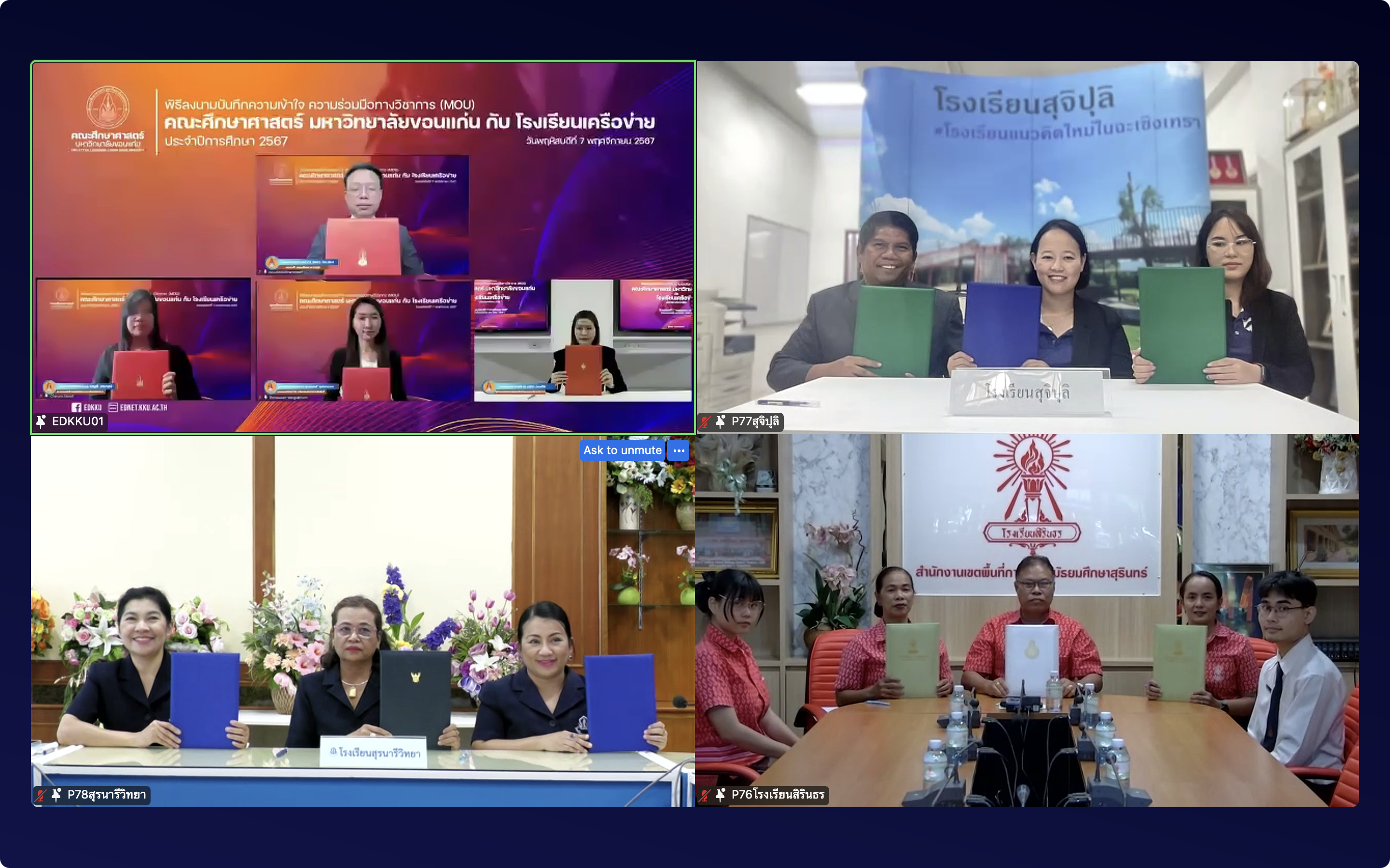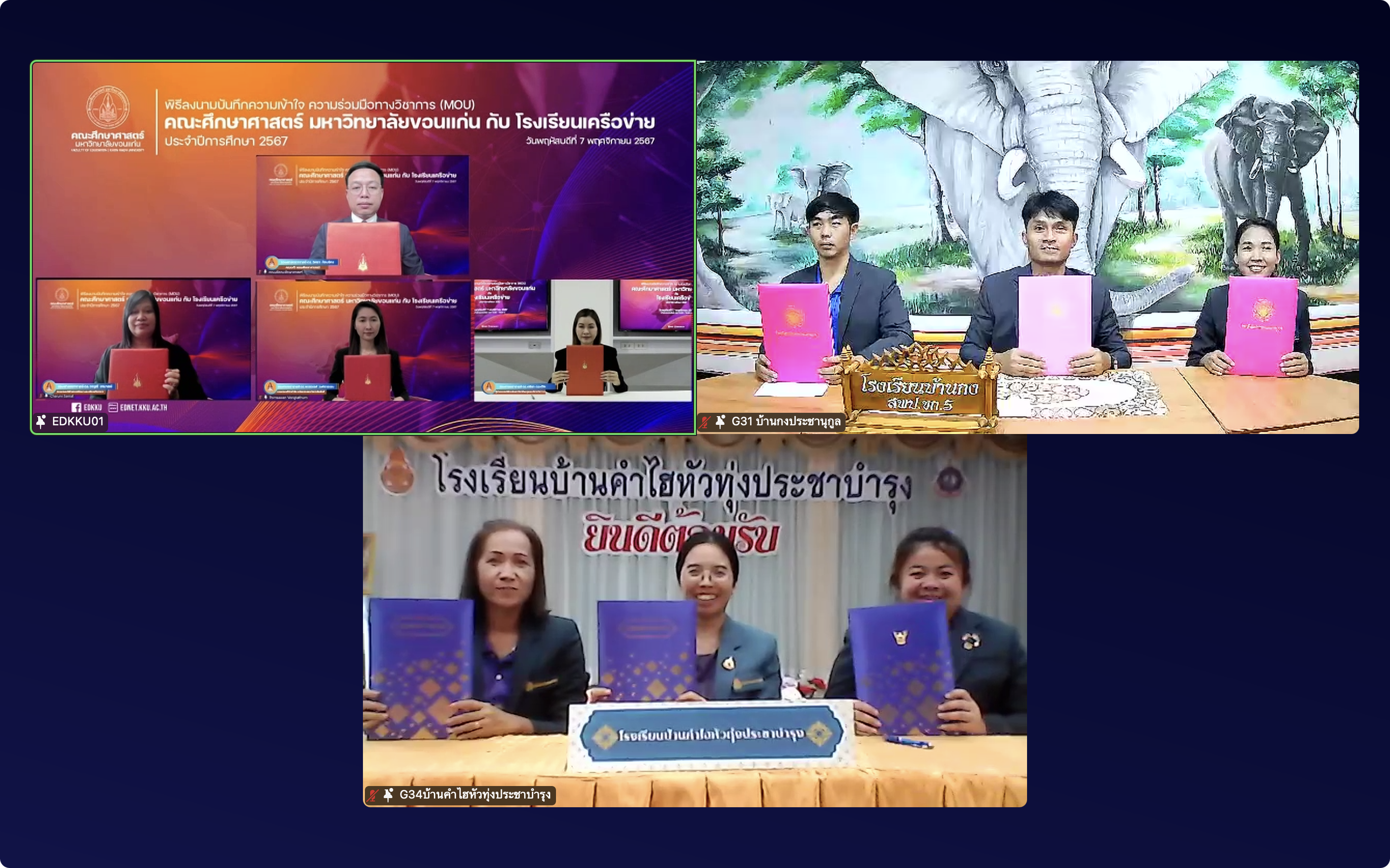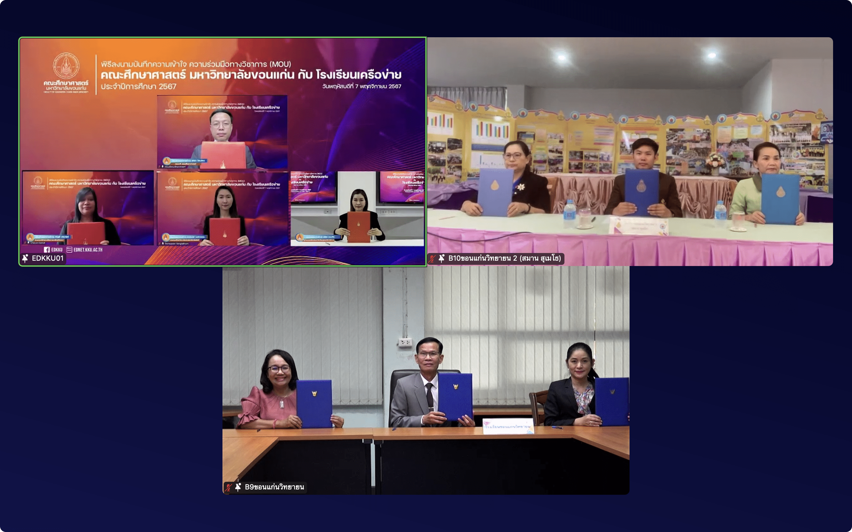 7 พฤศจิกายน 2567 ที่ผ่านมา คณะศึกษาศาสตร์ มหาวิทยาลัยขอนแก่น ได้จัดพิธี “ลงนามบันทึกความเข้าใจความร่วมมือทางวิชาการระหว่างคณะศึกษาศาสตร์ มหาวิทยาลัยขอนแก่น กับโรงเรียนเครือข่าย ประจำปีการศึกษา 2567” เพื่อพัฒนาโรงเรียนนวัตกรรมต้นแบบทางการศึกษา พิธีนี้จัดขึ้นในรูปแบบออนไลน์ผ่านแพลตฟอร์ม Zoom โดยมี รศ.นพ.ชาญชัย พานทองวิริยะกุล อธิการบดีมหาวิทยาลัยขอนแก่น เป็นประธานในพิธีกล่าวเปิด และ รศ.ดร.อิศรา ก้านจักร คณบดีคณะศึกษาศาสตร์ กล่าวต้อนรับผู้บริหารและผู้แทนจากโรงเรียนเครือข่าย จำนวน 96 แห่ง ที่ร่วมลงนามในบันทึกข้อตกลงครั้งนี้ มีวัตถุประสงค์เพื่อส่งเสริมความร่วมมือทางวิชาการระหว่างสถาบันอุดมศึกษาและสถานศึกษาในการพัฒนาคุณภาพการศึกษา ร่วมกันสร้างสรรค์นวัตกรรมการเรียนรู้ และส่งเสริมการเรียนรู้ตลอดชีวิตให้กับผู้เรียน โดยเฉพาะอย่างยิ่งการพัฒนาโรงเรียนนวัตกรรมต้นแบบทางการศึกษา เพื่อให้ผู้เรียนมีความรู้ความสามารถและทักษะที่สอดคล้องกับการเปลี่ยนแปลงของโลกยุคดิจิทัล