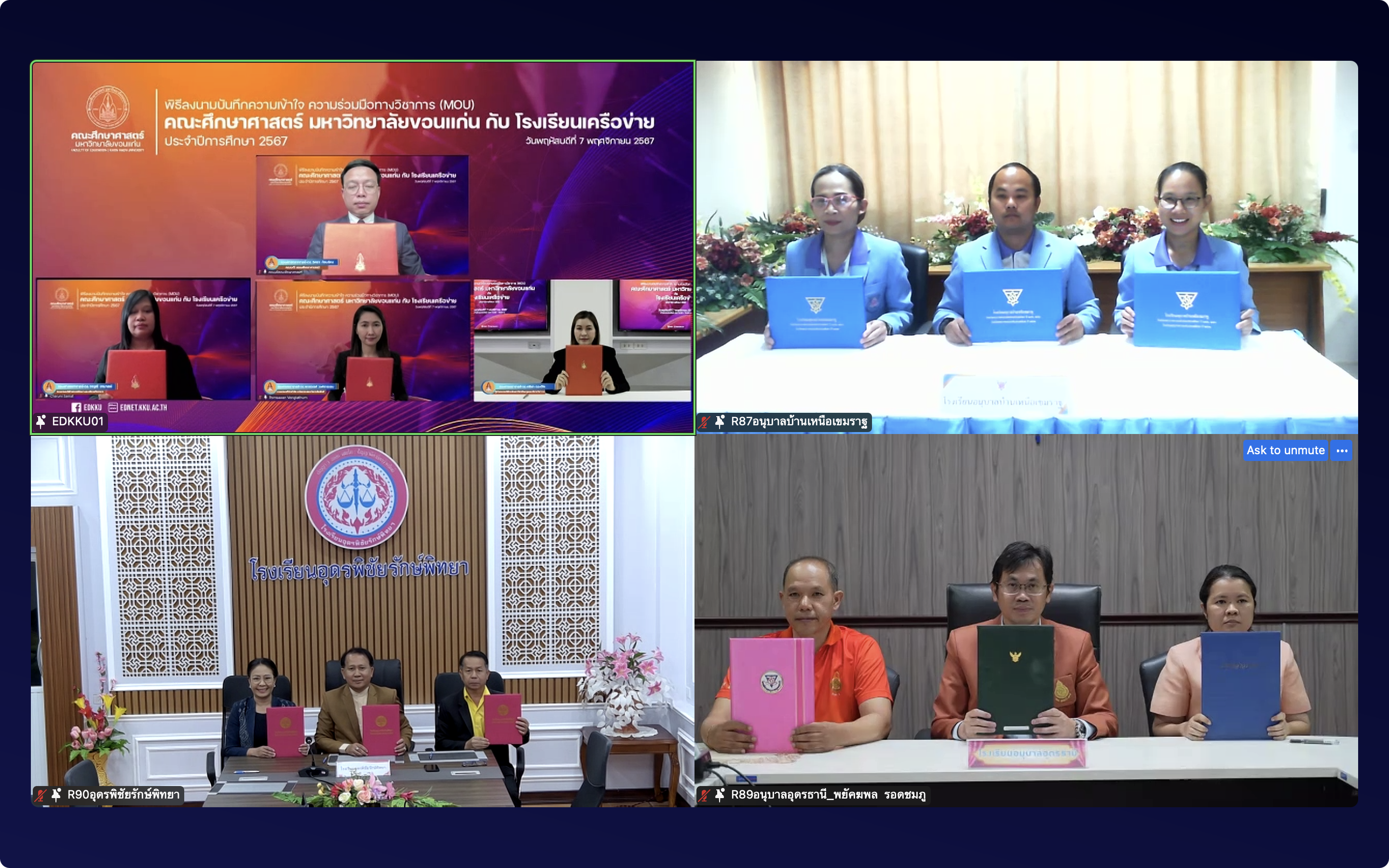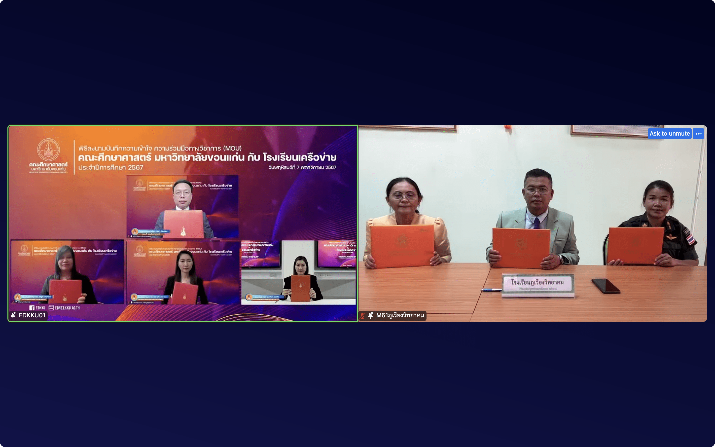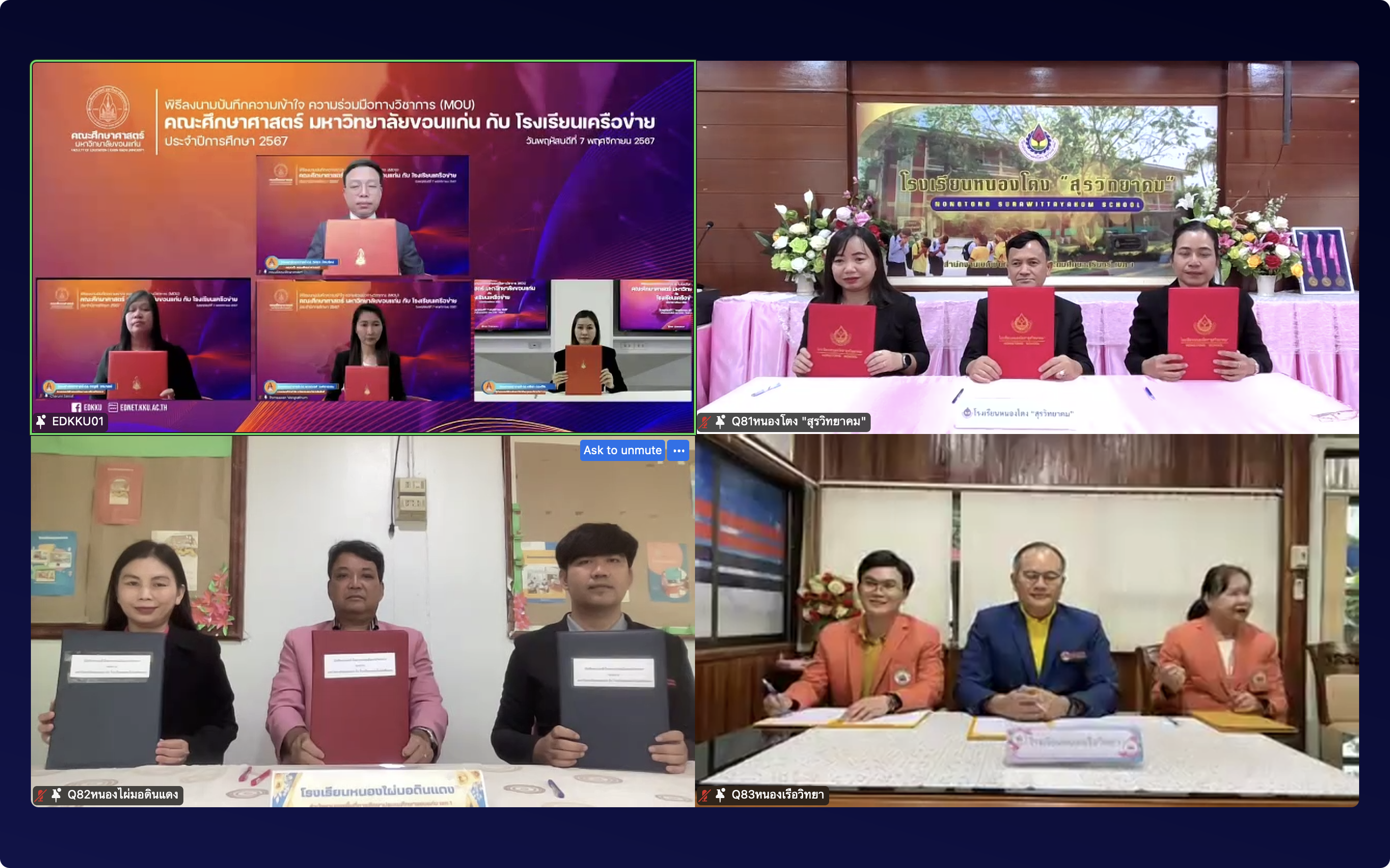 7 พฤศจิกายน 2567 ที่ผ่านมา คณะศึกษาศาสตร์ มหาวิทยาลัยขอนแก่น ได้จัดพิธี “ลงนามบันทึกความเข้าใจความร่วมมือทางวิชาการระหว่างคณะศึกษาศาสตร์ มหาวิทยาลัยขอนแก่น กับโรงเรียนเครือข่าย ประจำปีการศึกษา 2567” เพื่อพัฒนาโรงเรียนนวัตกรรมต้นแบบทางการศึกษา พิธีนี้จัดขึ้นในรูปแบบออนไลน์ผ่านแพลตฟอร์ม Zoom โดยมี รศ.นพ.ชาญชัย พานทองวิริยะกุล อธิการบดีมหาวิทยาลัยขอนแก่น เป็นประธานในพิธีกล่าวเปิด และ รศ.ดร.อิศรา ก้านจักร คณบดีคณะศึกษาศาสตร์ กล่าวต้อนรับผู้บริหารและผู้แทนจากโรงเรียนเครือข่าย จำนวน 96 แห่ง ที่ร่วมลงนามในบันทึกข้อตกลงครั้งนี้ มีวัตถุประสงค์เพื่อส่งเสริมความร่วมมือทางวิชาการระหว่างสถาบันอุดมศึกษาและสถานศึกษาในการพัฒนาคุณภาพการศึกษา ร่วมกันสร้างสรรค์นวัตกรรมการเรียนรู้ และส่งเสริมการเรียนรู้ตลอดชีวิตให้กับผู้เรียน โดยเฉพาะอย่างยิ่งการพัฒนาโรงเรียนนวัตกรรมต้นแบบทางการศึกษา เพื่อให้ผู้เรียนมีความรู้ความสามารถและทักษะที่สอดคล้องกับการเปลี่ยนแปลงของโลกยุคดิจิทัล