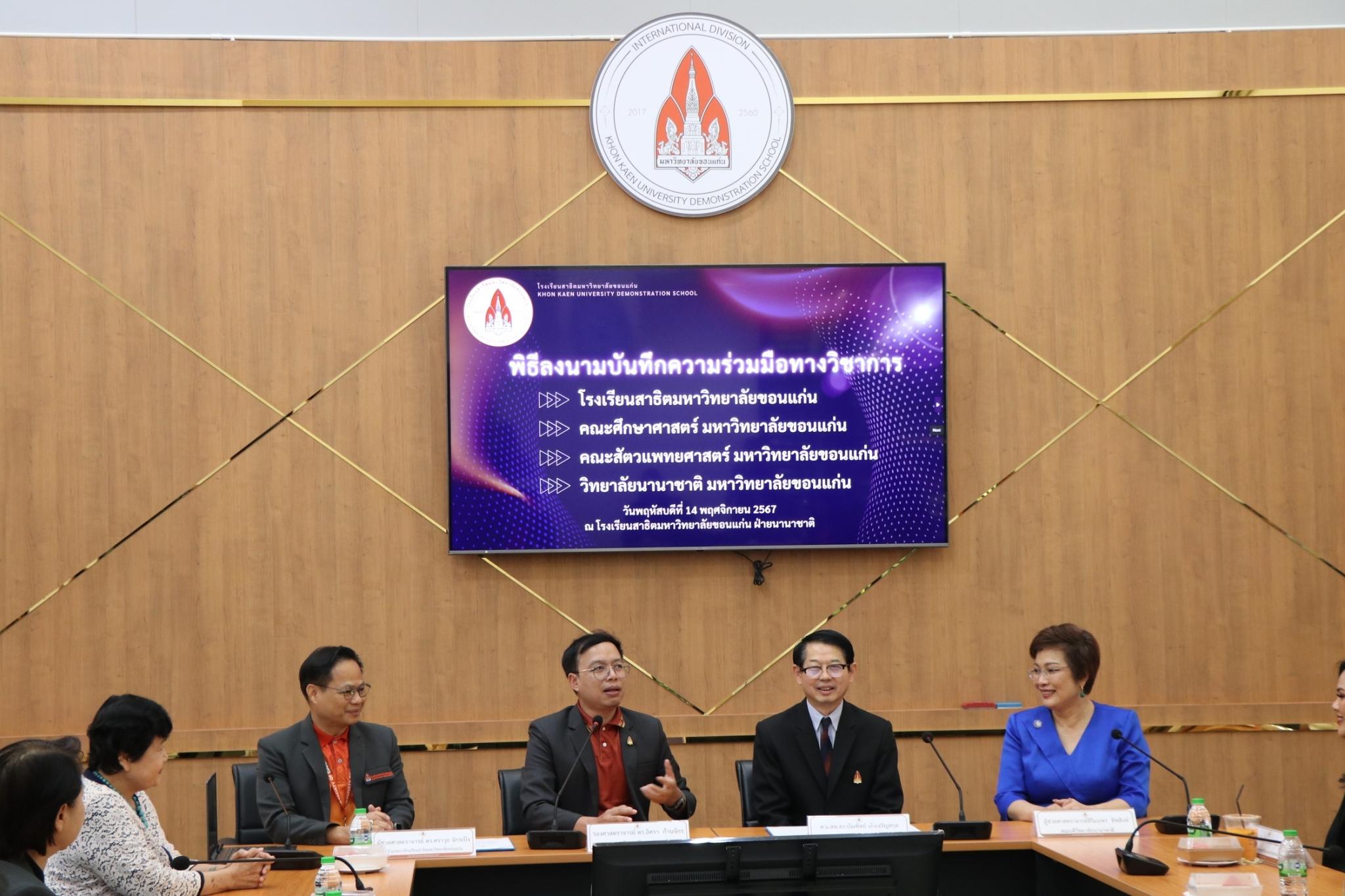 14 พฤศจิกายน 2567 – โรงเรียนสาธิตมหาวิทยาลัยขอนแก่น ได้จัดพิธีลงนามบันทึกความร่วมมือทางวิชาการ (MOA) โรงเรียนสาธิตมหาวิทยาลัยขอนแก่น ร่วมกับคณะศึกษาศาสตร์ วิทยาลัยนานาชาติ และคณะสัตวแพทยศาสตร์ มหาวิทยาลัยขอนแก่น เพื่อพัฒนารูปแบบการจัดการศึกษาในกระบวนทัศน์ใหม่ที่เน้นความร่วมมือระหว่างหน่วยงานและการเตรียมความพร้อมให้นักเรียนก้าวสู่การศึกษาระดับมหาวิทยาลัย (Pre-University)