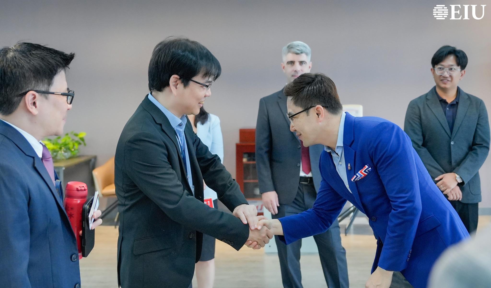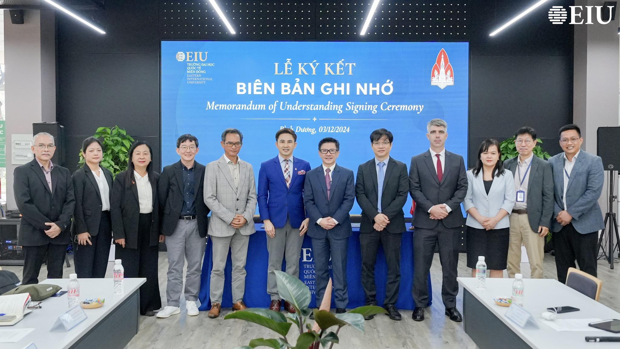 การลงนามความร่วมมือกับ Eastern International University (EIU) ได้รับเกียรติจากผู้บริหารระดับสูงของ EIU นำโดย Dr.Nguyen Tan Loi นายกสภามหาวิทยาลัย และ Dr.Ngo Minh Duc อธิการบดี พร้อมด้วยคณะผู้บริหารประกอบด้วย Dr.Kang Seung Won คณบดีคณะบริหารธุรกิจ Becamex Business School และผู้บริหารท่านอื่นๆ โดยมีเป้าหมายในการพัฒนาความร่วมมือด้านการออกแบบและการพัฒนาเมือง ซึ่งจะเริ่มจากการส่งนักศึกษาไปฝึกงานหรือสหกิจกับบริษัท Becamex Tokyo ซึ่งเป็นบริษัทอสังหาริมทรัพย์ชั้นนำระดับโลก ในเดือนมิถุนายน 2568 รวมถึงการแลกเปลี่ยนนักศึกษาในหลักสูตรอบรมภาษาอังกฤษ และการส่งคณาจารย์ไปจัดการอบรมเรื่อง Design Thinking ให้แก่บุคลากรของ EIU และ Becamex ในเดือนมีนาคม 2568