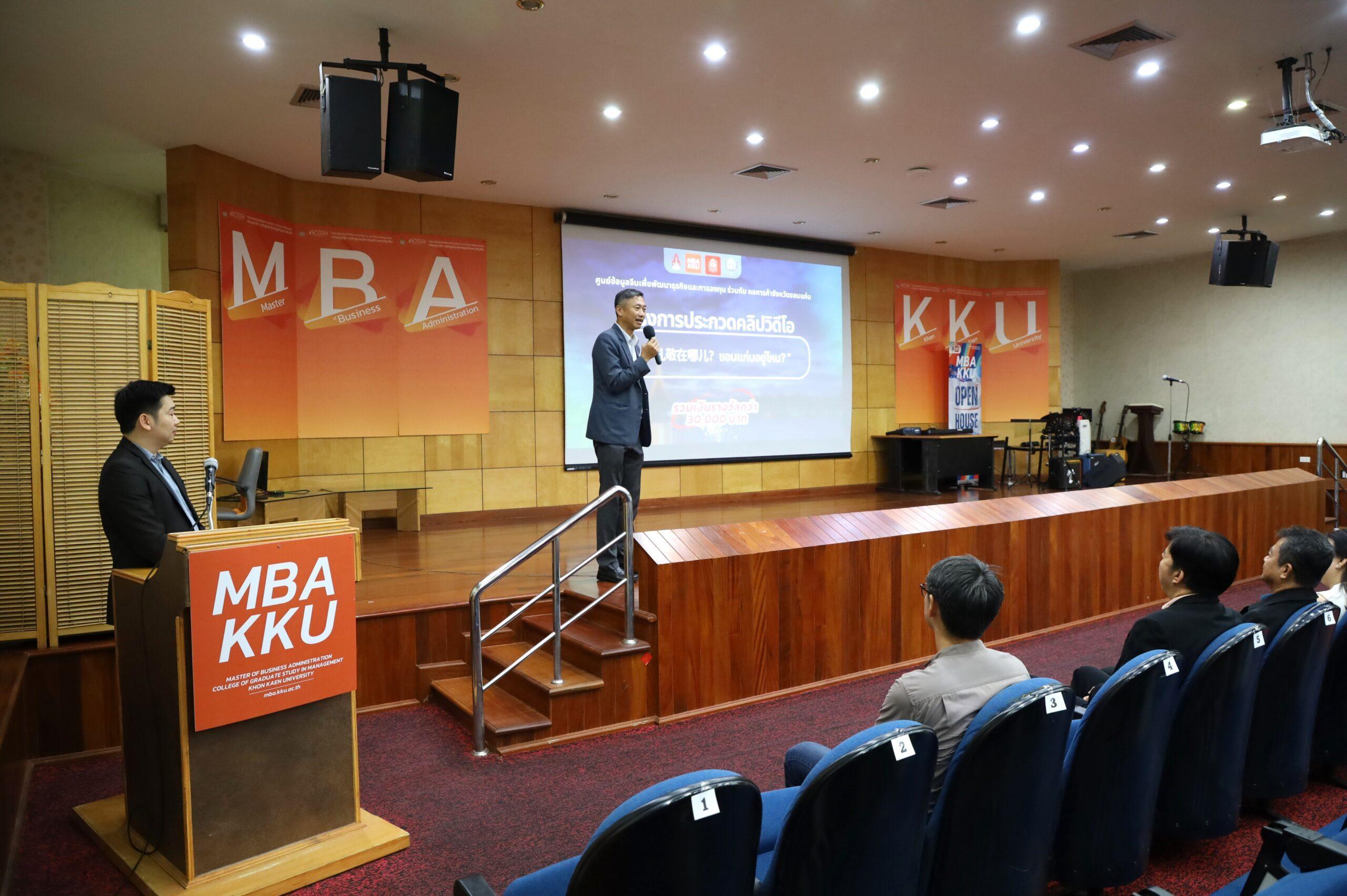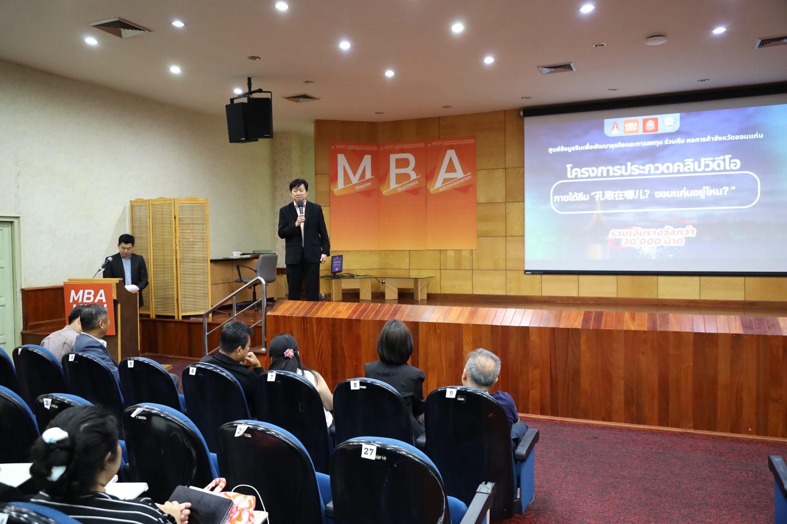 เมื่อวันที่ 12 ธันวาคม 2567 ศูนย์ข้อมูลจีนเพื่อพัฒนาธุรกิจและการลงทุน (KKU ChIC) วิทยาลัยบัณฑิตศึกษาการจัดการ มหาวิทยาลัยขอนแก่น ร่วมกับหอการค้าจังหวัดขอนแก่น จัดพิธีเปิดโครงการประกวดคลิปวิดีโอภาษาจีนแนะนำจังหวัดขอนแก่น ภายใต้แนวคิด “孔敬在哪儿?ขอนแก่นอยู่ที่ไหน?” โดยมี ดร.ศักดิ์ชัย เจริญศิริพรกุล คณบดีวิทยาลัยบัณฑิตศึกษาการจัดการ เป็นประธานในพิธี พร้อมด้วย นายชาญณรงค์ บุริสตระกูล ประธานหอการค้าจังหวัดขอนแก่น และ ดร.วัชรพล ศิริสุวิไล ผู้อำนวยการศูนย์ข้อมูลจีนฯ ร่วมกิจกรรม ในการนี้มี คณาจารย์และนักเรียนจากโรงเรียนขอนแก่นวิทยายน โรงเรียนแก่นนครวิทยาลัย และโรงเรียนกัลยาณวัตร ร่วมงานกว่า  30 คน ณ ห้องประชุม พล.ต.อ.เภา สารสิน อาคารสุนทร-อารยา อรุณานนท์ชัย วิทยาลัยบัณฑิตศึกษาการจัดการ มหาวิทยาลัยขอนแก่น