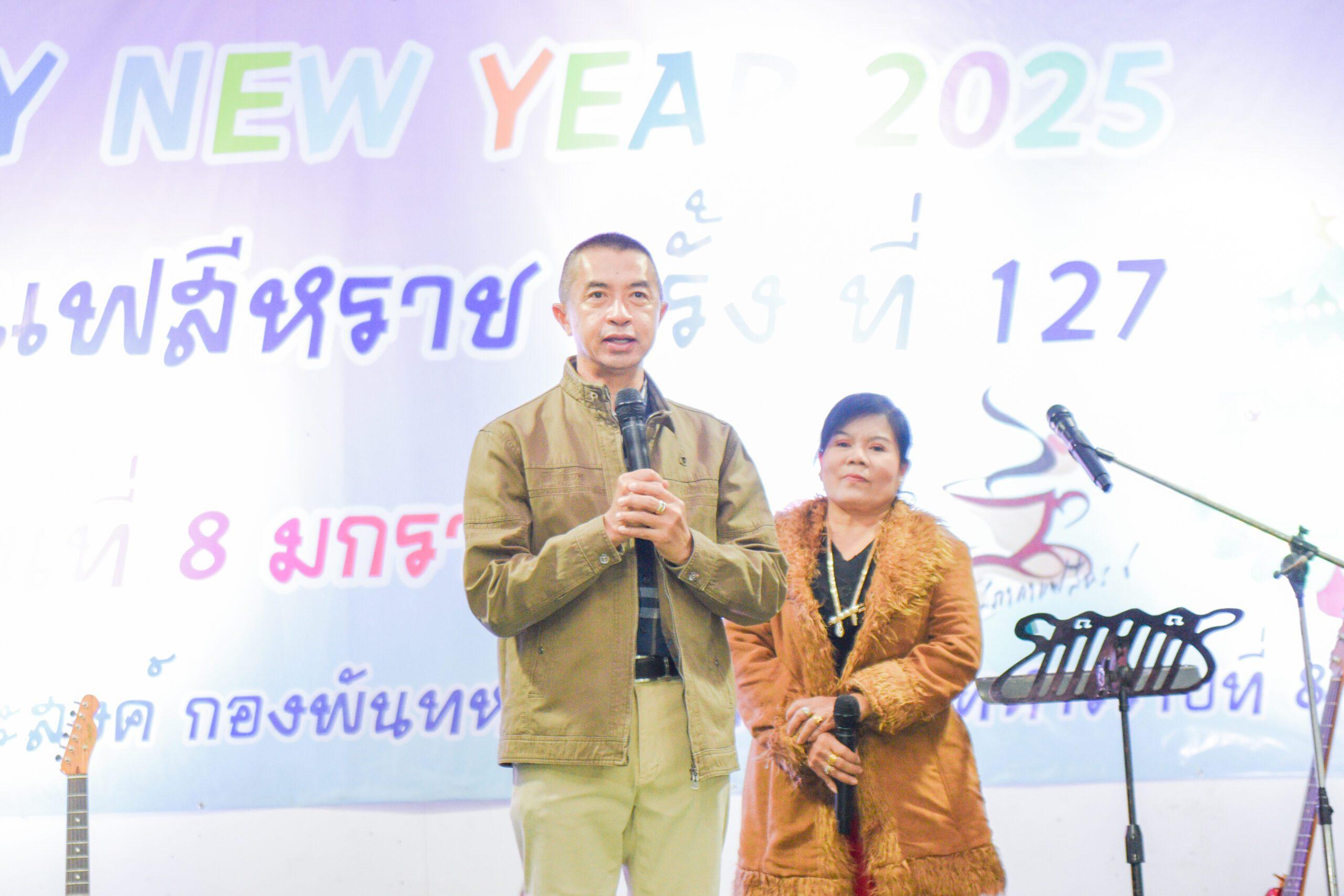 ภายในงาน ได้รับเกียรติจาก พันเอก สุพรเทพ ไชยยงค์ รองผู้บังคับการกรมทหารราบที่ 8 กล่าวเปิดงานประชุม “สภากาแฟสีหราช” ครั้งที่ 127 และกล่าวอวยพรปีใหม่ ให้กับผู้ที่เข้าร่วมงาน จากนั้น อาจารย์ณัฐสมล ธนกุลรังสฤษดิ์ รองอธิการบดีฝ่ายกฎหมายและสื่อสารองค์กร มหาวิทยาลัยขอนแก่น ได้กล่าวอวยพรปีใหม่ และมอบของขวัญปีใหม่ให้กับผู้ร่วมงานครั้งนี้ด้วย