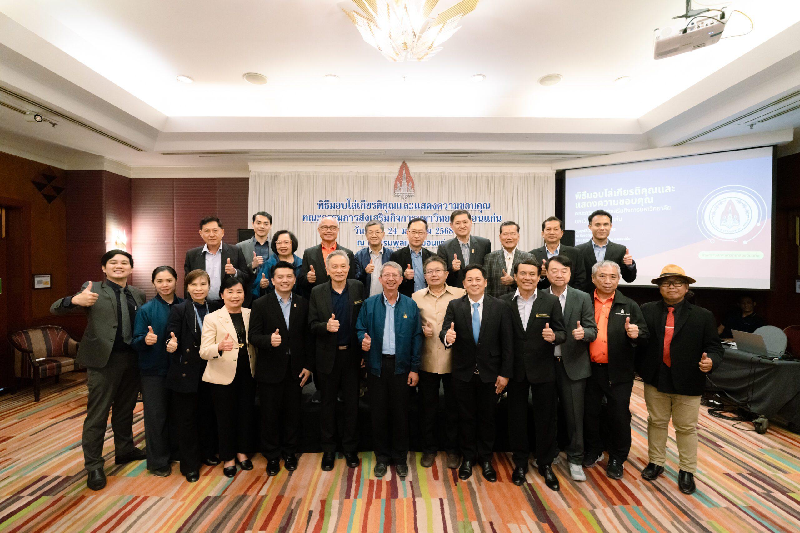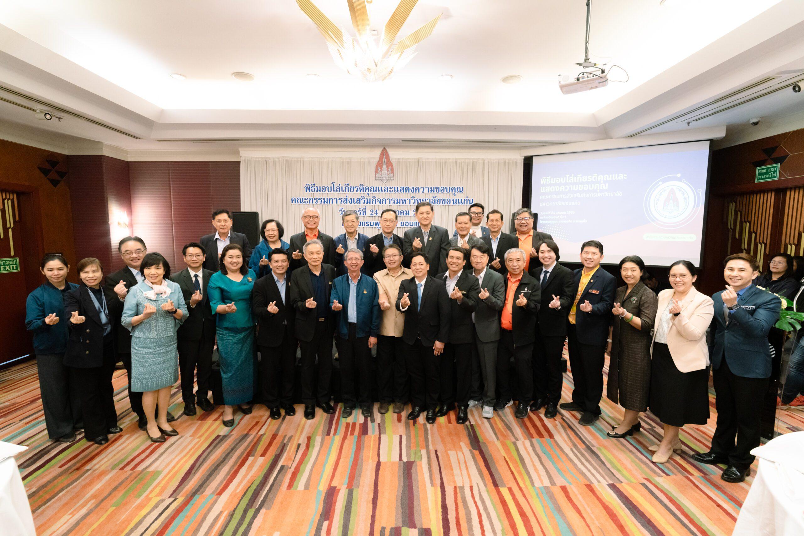ด้วยความทุ่มเท เสียสละ และอุทิศตนอย่างเต็มที่ตลอดระยะเวลา 3 ปี ส่งผลให้เกิดการพัฒนาและความก้าวหน้าของมหาวิทยาลัยขอนแก่นอย่างเป็นรูปธรรม มหาวิทยาลัยจึงจัดพิธีมอบโล่เกียรติคุณและงานเลี้ยงแสดงความขอบคุณในครั้งนี้ เพื่อประกาศเกียรติคุณและเป็นเกียรติประวัติสืบไป
