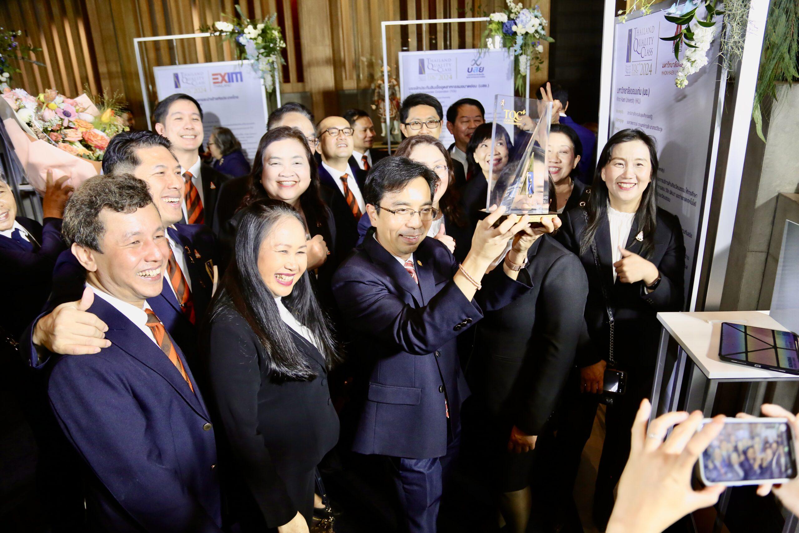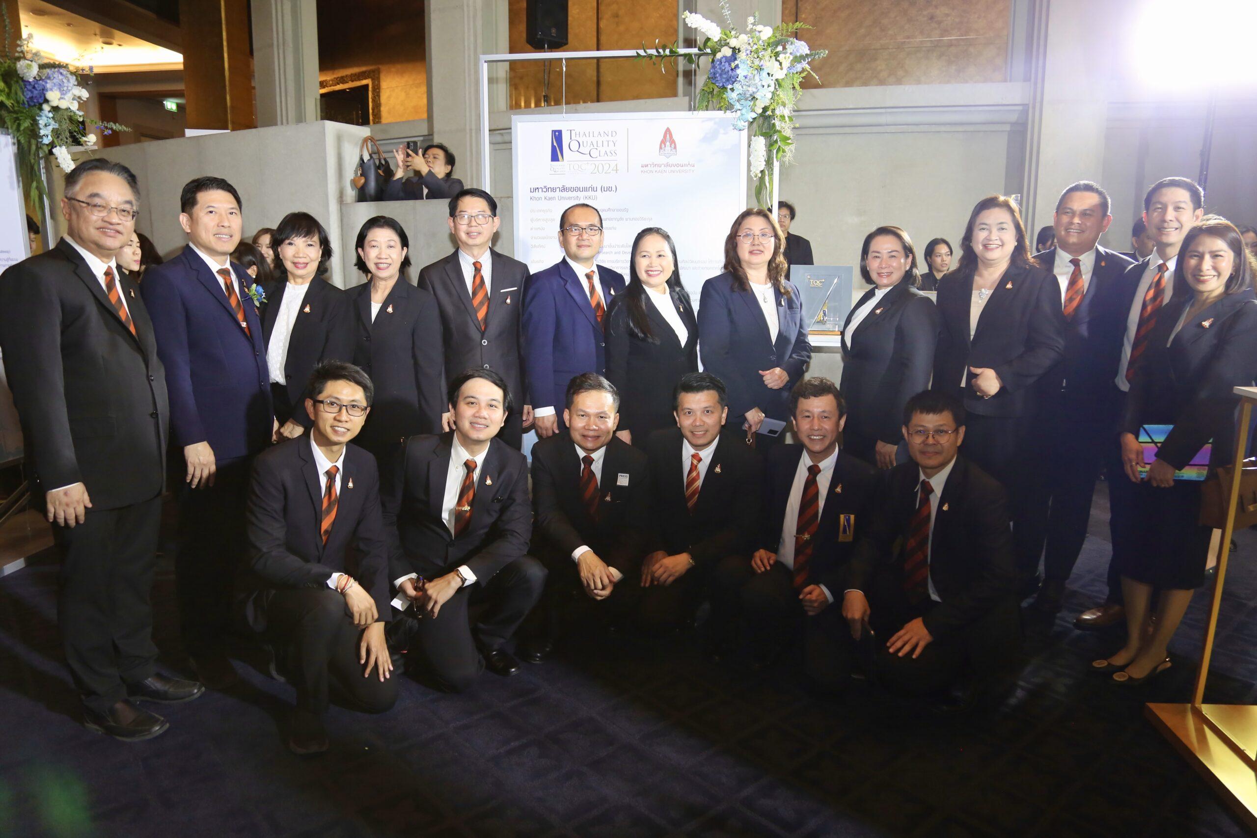 ในปีนี้ รศ.นพ.ชาญชัย พานทองวิริยะกุล อธิการบดีมหาวิทยาลัยขอนแก่น พร้อมด้วย รศ.ดร.รัชพล สันติวรากร คณบดีคณะวิศวกรรมศาสตร์ นำทีมคณะผู้บริหารมหาวิทยาลัย เข้ารับรางวัลอันทรงเกียรติ 2 รางวัล โดยมหาวิทยาลัยขอนแก่นได้รับรางวัลการบริหารสู่ความเป็นเลิศที่มีความโดดเด่นด้านการสร้างประโยชน์ให้สังคม (Thailand Quality Class Plus: Societal Contribution) นับเป็นสถาบันอุดมศึกษาแห่งแรกที่ได้รับรางวัลนี้ ในขณะที่คณะวิศวกรรมศาสตร์ได้รับรางวัลการบริหารสู่ความเป็นเลิศที่มีความโดดเด่นด้านการปฏิบัติการ (Thailand Quality Class Plus: Operation)
