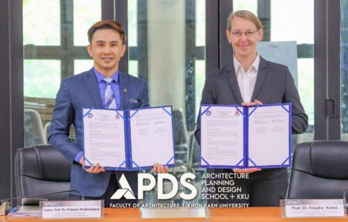 คณะสถาปัตยกรรมศาสตร์ มหาวิทยาลัยขอนแก่น โดย รองศาสตราจารย์ ดร.กฤตภัทร ถาปาลบุตร คณบดีคณะสถาปัตยกรรมศาสตร์ เตรียมลงนามขยายข้อตกลงความร่วมมือทางวิชาการกับ The Institute of Geography of the University of Cologne, Germany โดย Professor Dr. Frauke Krass จากประเทศสหพันธรัฐเยอรมนี เพื่อสานต่อพันธกิจในการพัฒนาองค์ความรู้และศักยภาพบุคลากรด้านสถาปัตยกรรมศาสตร์และผังเมืองอย่างต่อเนื่อง