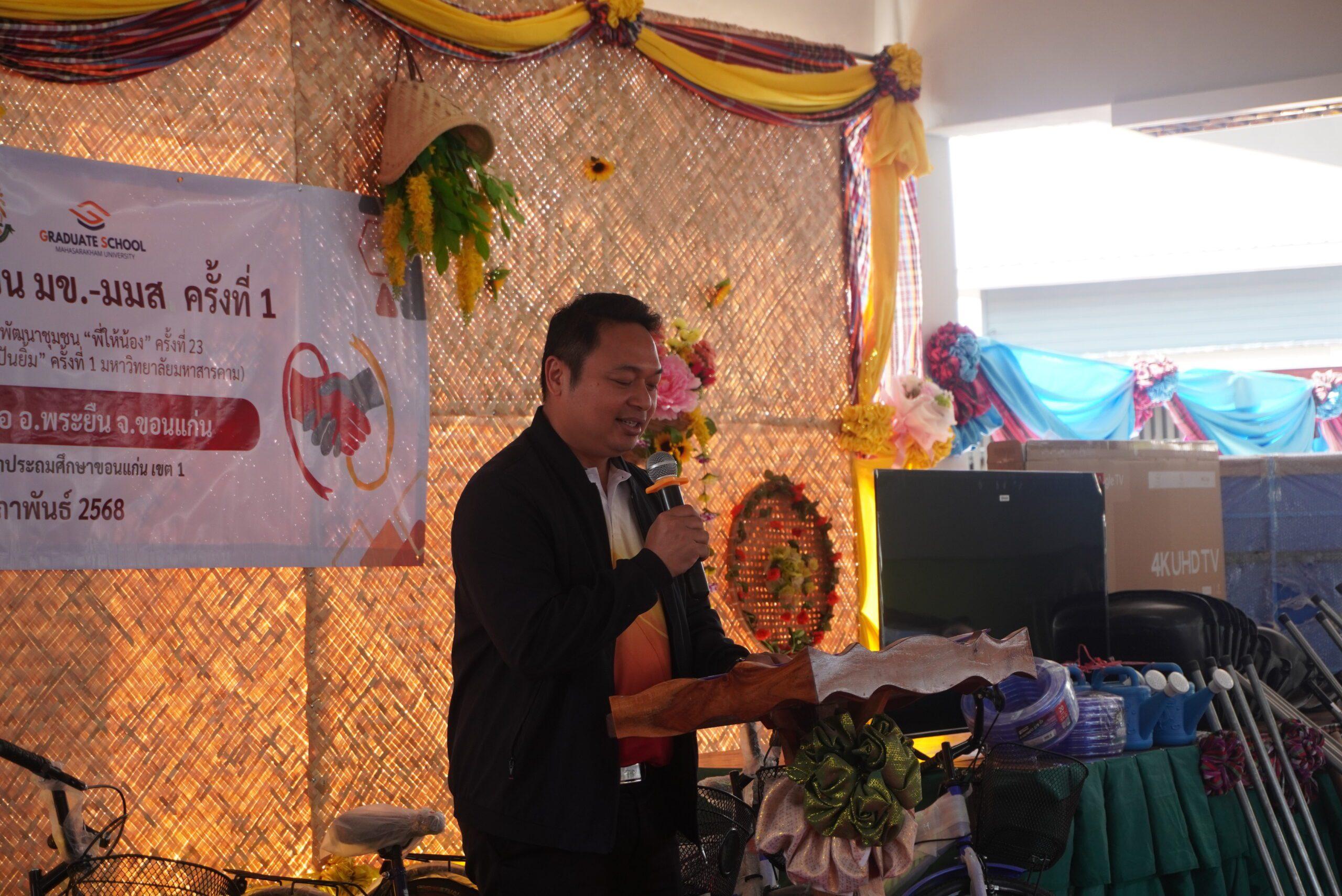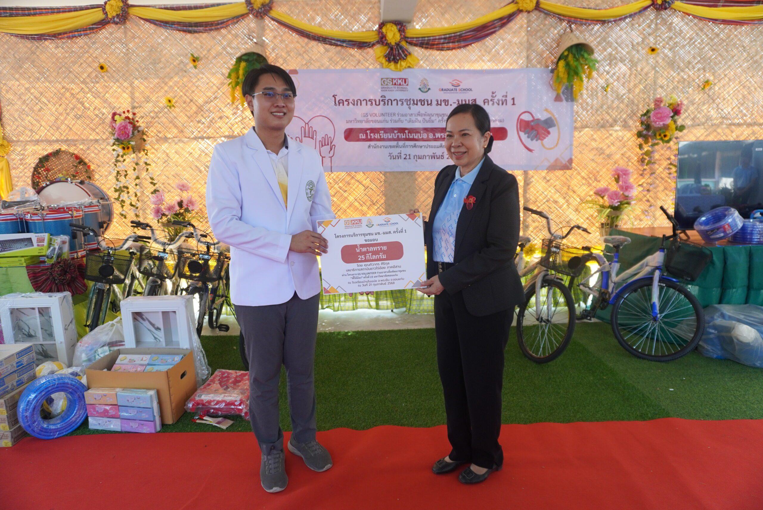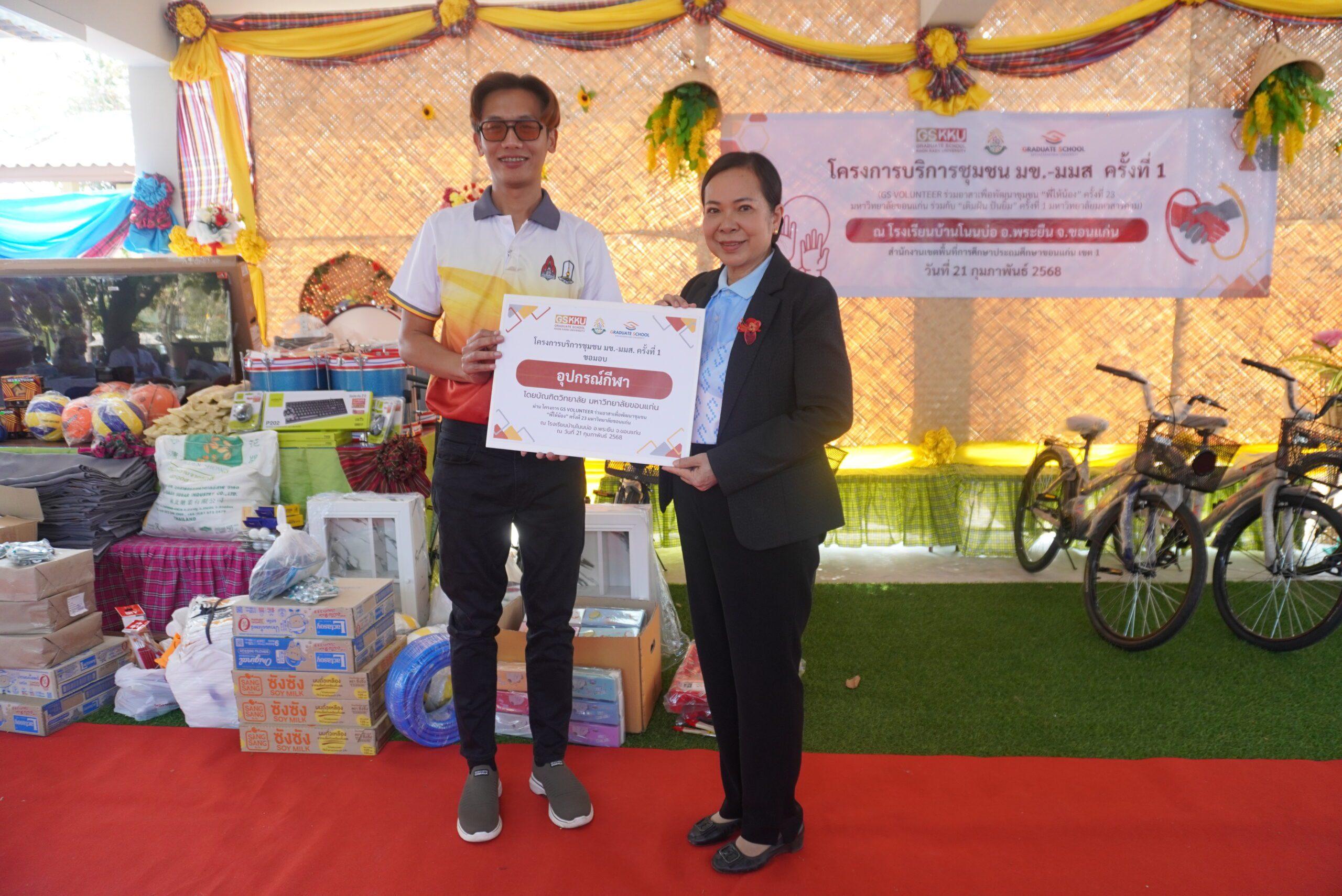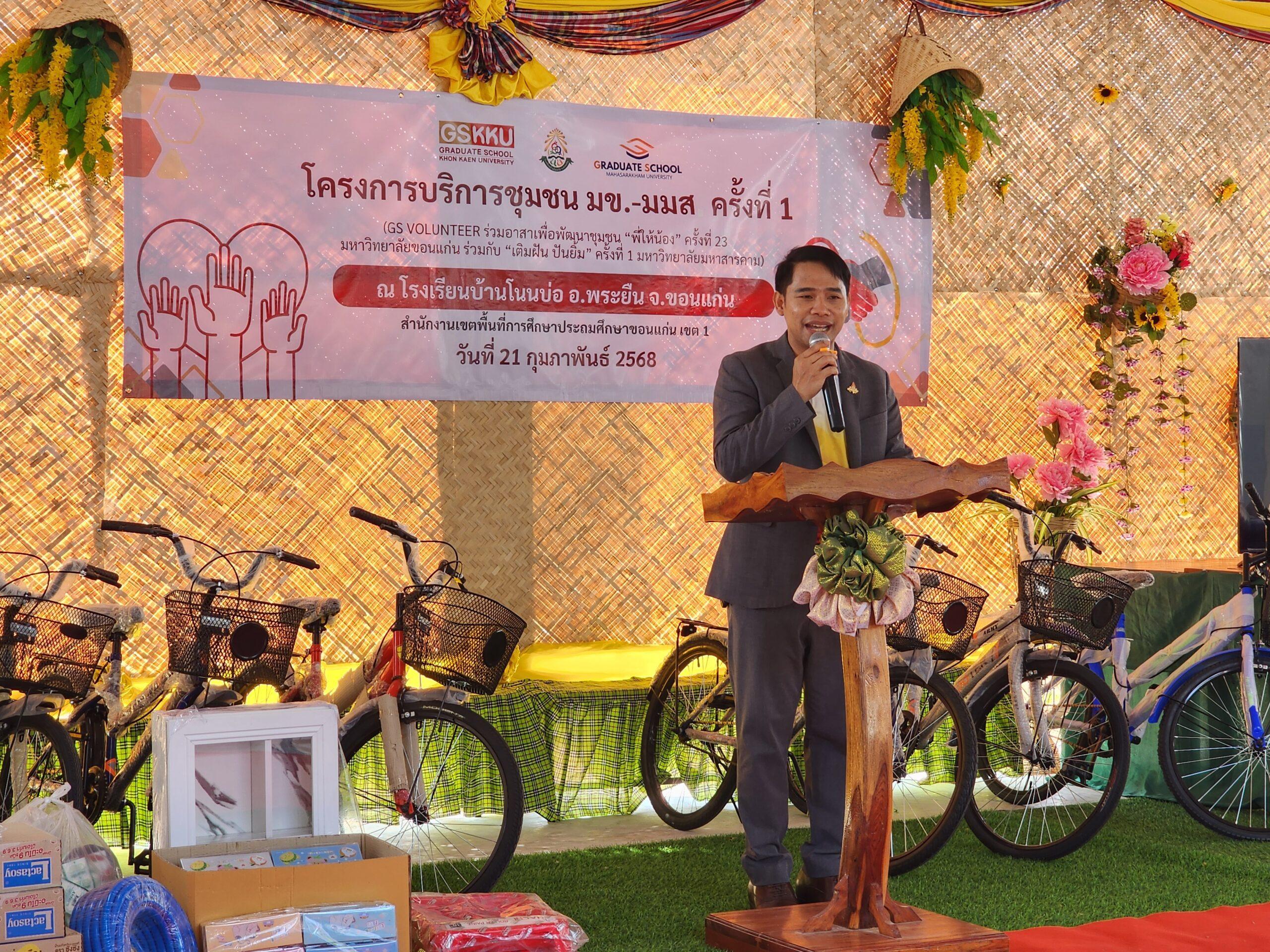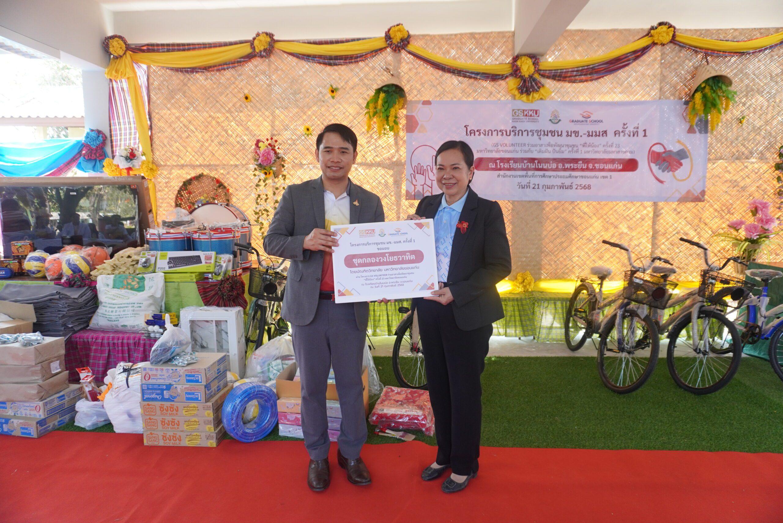 สโมสรนักศึกษาระดับบัณฑิตศึกษา มหาวิทยาลัยขอนแก่น (มข.) และสโมสรนิสิตบัณฑิตศึกษา มหาวิทยาลัยมหาสารคาม (มมส) ร่วมจัดโครงการบริการชุมชน มข.-มมส ครั้งที่ 1 เมื่อวันที่ 21 กุมภาพันธ์ พ.ศ. 2568 ณ โรงเรียนบ้านโนนบ่อ อำเภอพระยืน จังหวัดขอนแก่น ภายใต้โครงการ “GS Volunteer ร่วมอาสาเพื่อพัฒนาชนบท ‘พี่ให้น้อง’ ครั้งที่ 23” และโครงการ “เติมฝัน ปันยิ้ม” ครั้งที่ 1