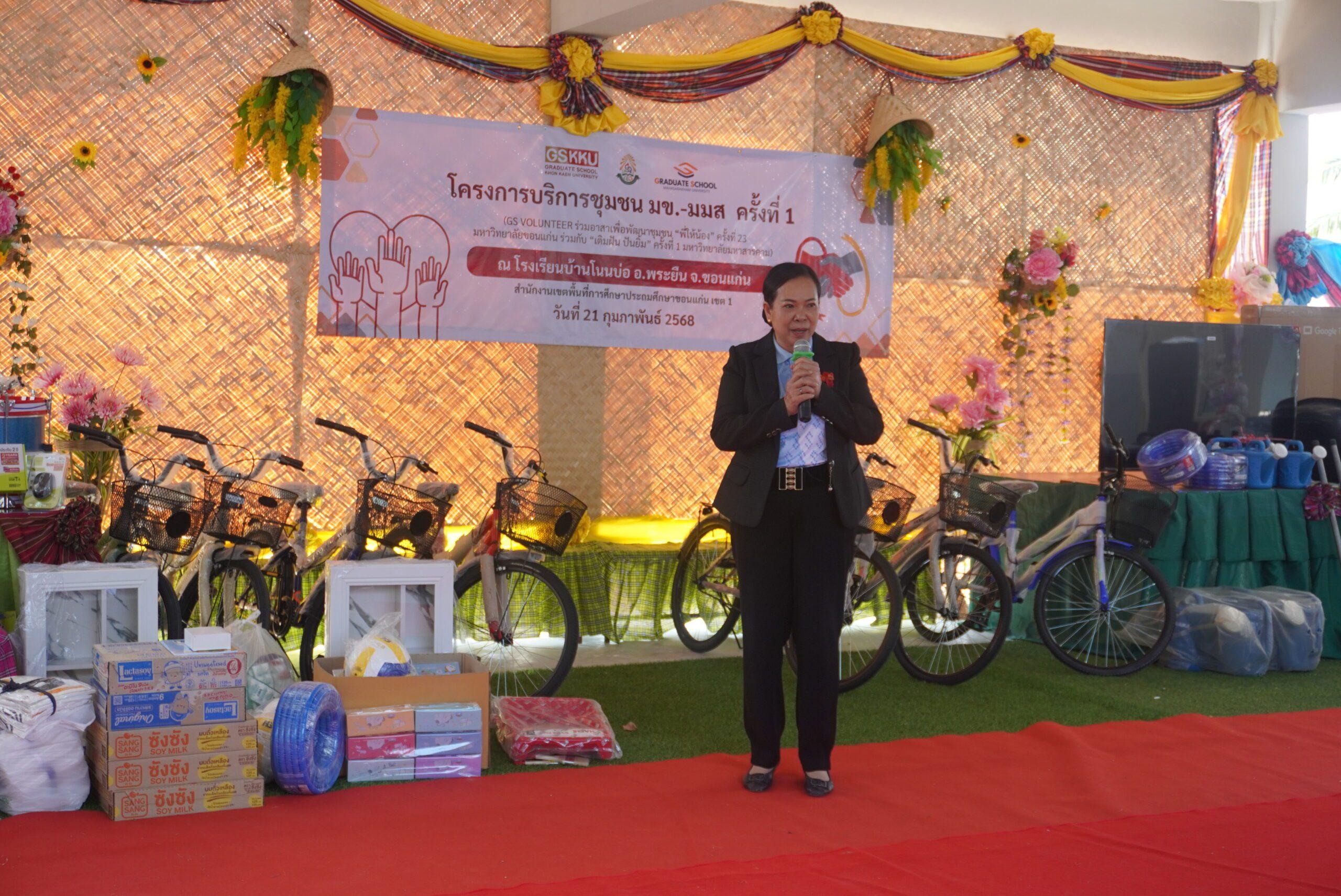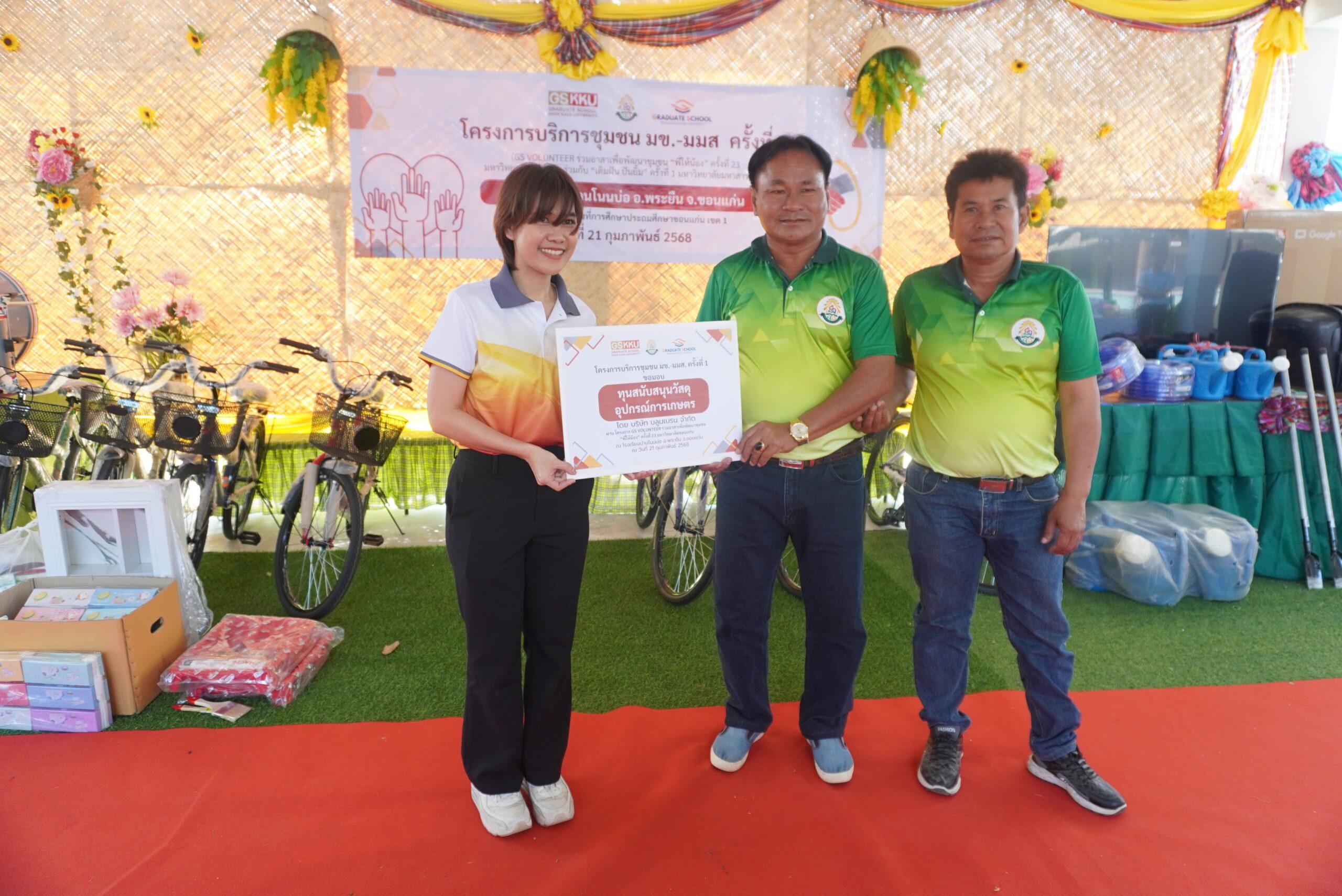 นางอัจฉราพร อินทรทัพ ผู้อำนวยการโรงเรียนบ้านโนนบ่อ กล่าวต้อนรับคณะผู้บริหารและผู้เข้าร่วมโครงการ จากนั้น ศ.ดร.เกียรติไชย ฟักศรี คณบดีบัณฑิตวิทยาลัย มหาวิทยาลัยขอนแก่น กล่าวเปิดโครงการ โดยเน้นย้ำถึงความสำคัญของการสนับสนุนการศึกษาแก่เยาวชนในพื้นที่ห่างไกล และการส่งเสริมให้นักศึกษาระดับบัณฑิตศึกษามีส่วนร่วมในกิจกรรมเพื่อสังคม รศ.ดร.ชลธี โพธิ์ทอง รองคณบดีบัณฑิตวิทยาลัยฝ่ายบริหาร มหาวิทยาลัยมหาสารคาม กล่าวขอบคุณผู้มีจิตอาสาที่ร่วมสร้างสรรค์กิจกรรมนี้ จากนั้นเป็นการมอบของที่ระลึก อุปกรณ์การเรียนการสอน และทุนการศึกษาแก่นักเรียนจำนวน 22 ทุน ทุนละ 500 บาท