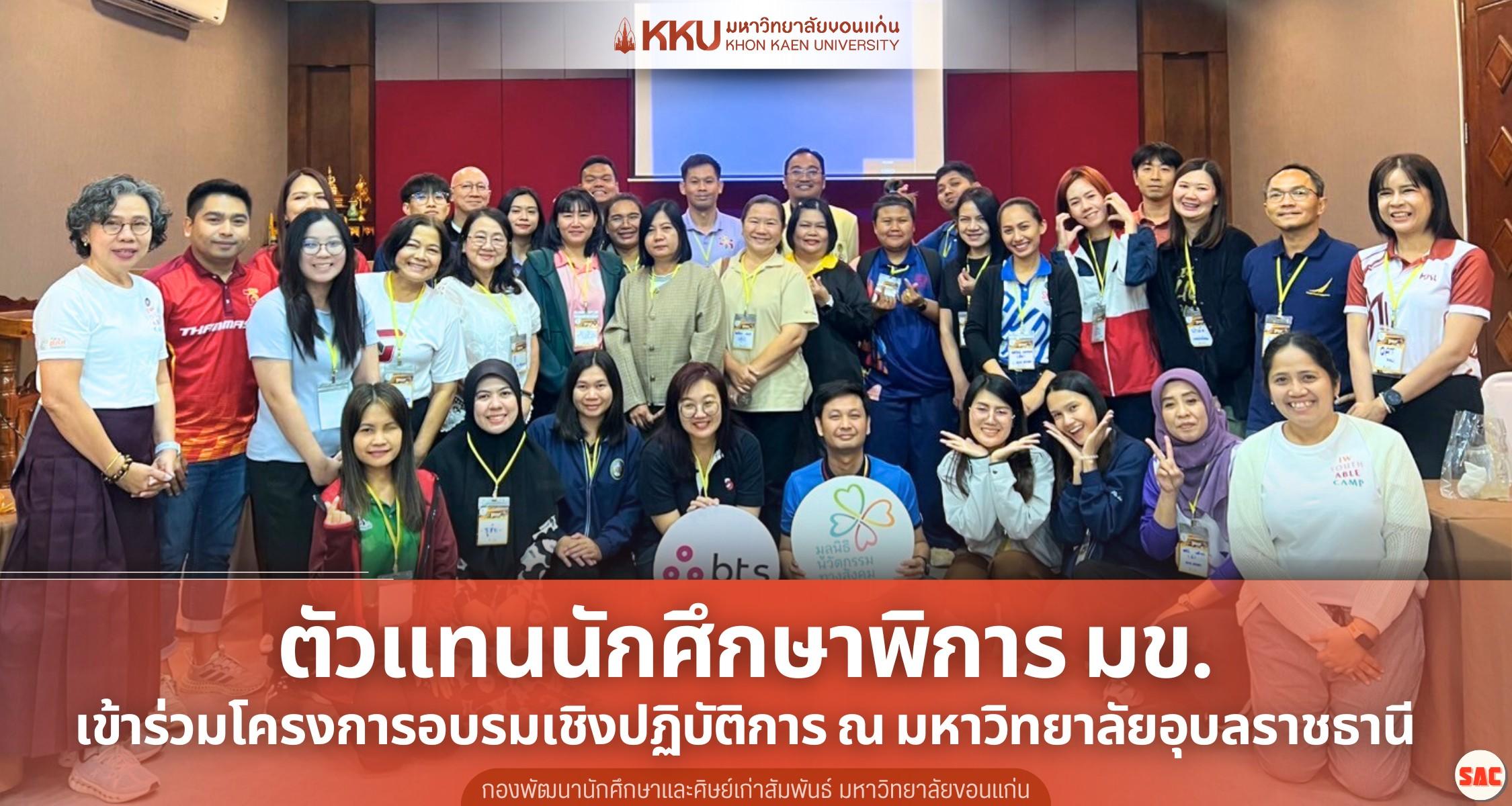 มหาวิทยาลัยขอนแก่นนำนักศึกษาพิการเข้าร่วมโครงการอบรมเชิงปฏิบัติการ “การส่งเสริมและพัฒนาศักยภาพบุคลากรที่เกี่ยวข้องกับการจัดการศึกษาสำหรับนักศึกษาพิการในระดับอุดมศึกษา” ซึ่งจัดขึ้นโดยสำนักงานปลัดกระทรวงการอุดมศึกษา วิทยาศาสตร์ วิจัยและนวัตกรรม ร่วมกับมหาวิทยาลัยอุบลราชธานี และภาคีเครือข่าย ระหว่างวันที่ 20 – 23 กุมภาพันธ์ 2568