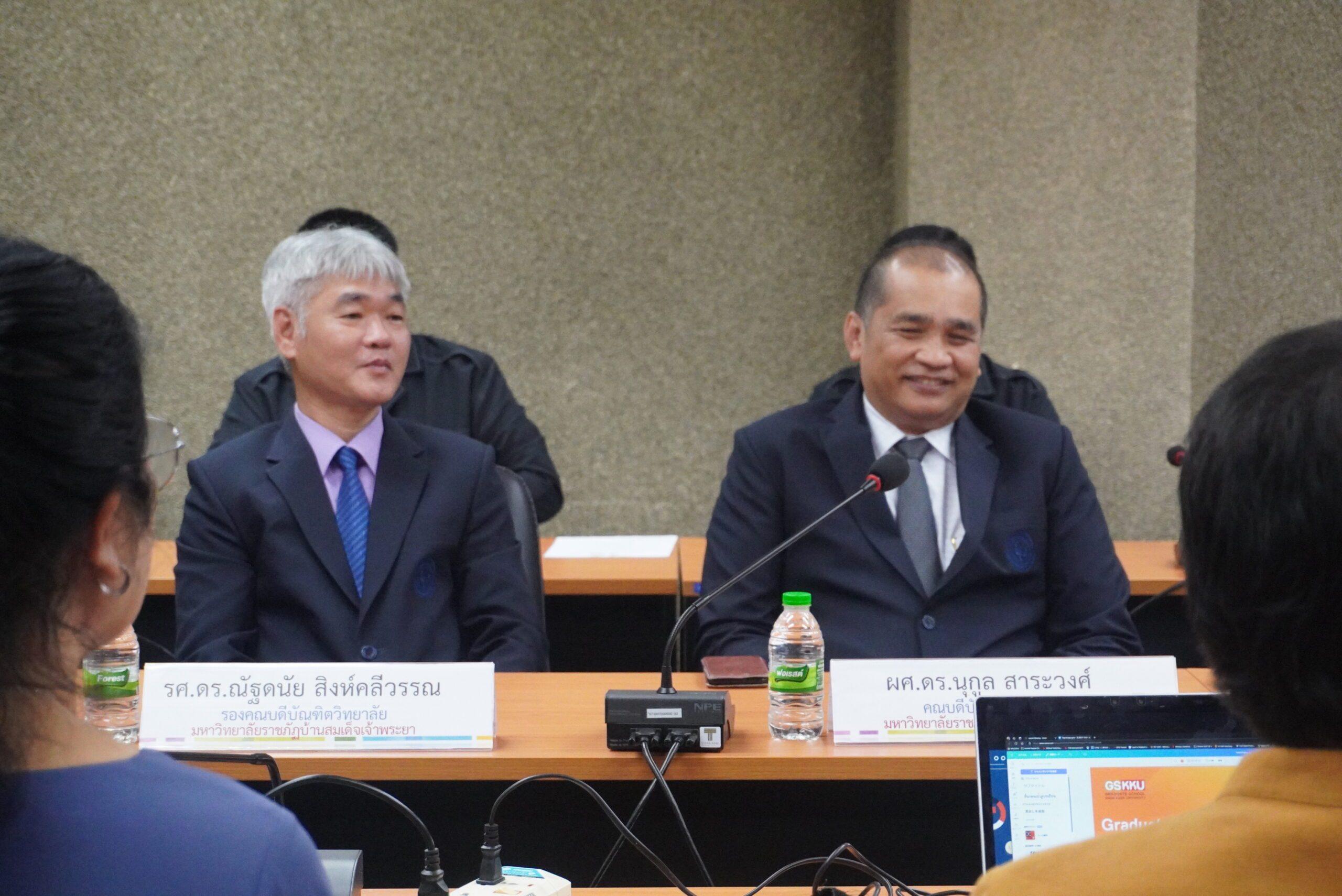 วันที่ 28 กุมภาพันธ์ พ.ศ. 2568 ศาสตราจารย์ ดร.เกียรติไชย ฟักศรี คณบดีบัณฑิตวิทยาลัย มหาวิทยาลัยขอนแก่น พร้อมคณะผู้บริหาร ประธานหลักสูตรสาขาวิชาร่วม หัวหน้างาน และบุคลากร ให้การต้อนรับคณะศึกษาดูงานจากบัณฑิตวิทยาลัย มหาวิทยาลัยราชภัฏบ้านสมเด็จเจ้าพระยา นำโดย ผู้ช่วยศาสตราจารย์ ดร.คณกร สว่างเจริญ อธิการบดี พร้อมด้วย ผู้ช่วยศาสตราจารย์ ดร.ณัฏฐ์ เดชะปัญญา รองอธิการบดี ผู้ช่วยศาสตราจารย์ ดร.นุกูล สาระวงศ์ คณบดีบัณฑิตวิทยาลัย และบุคลากร รวม 17 ท่าน