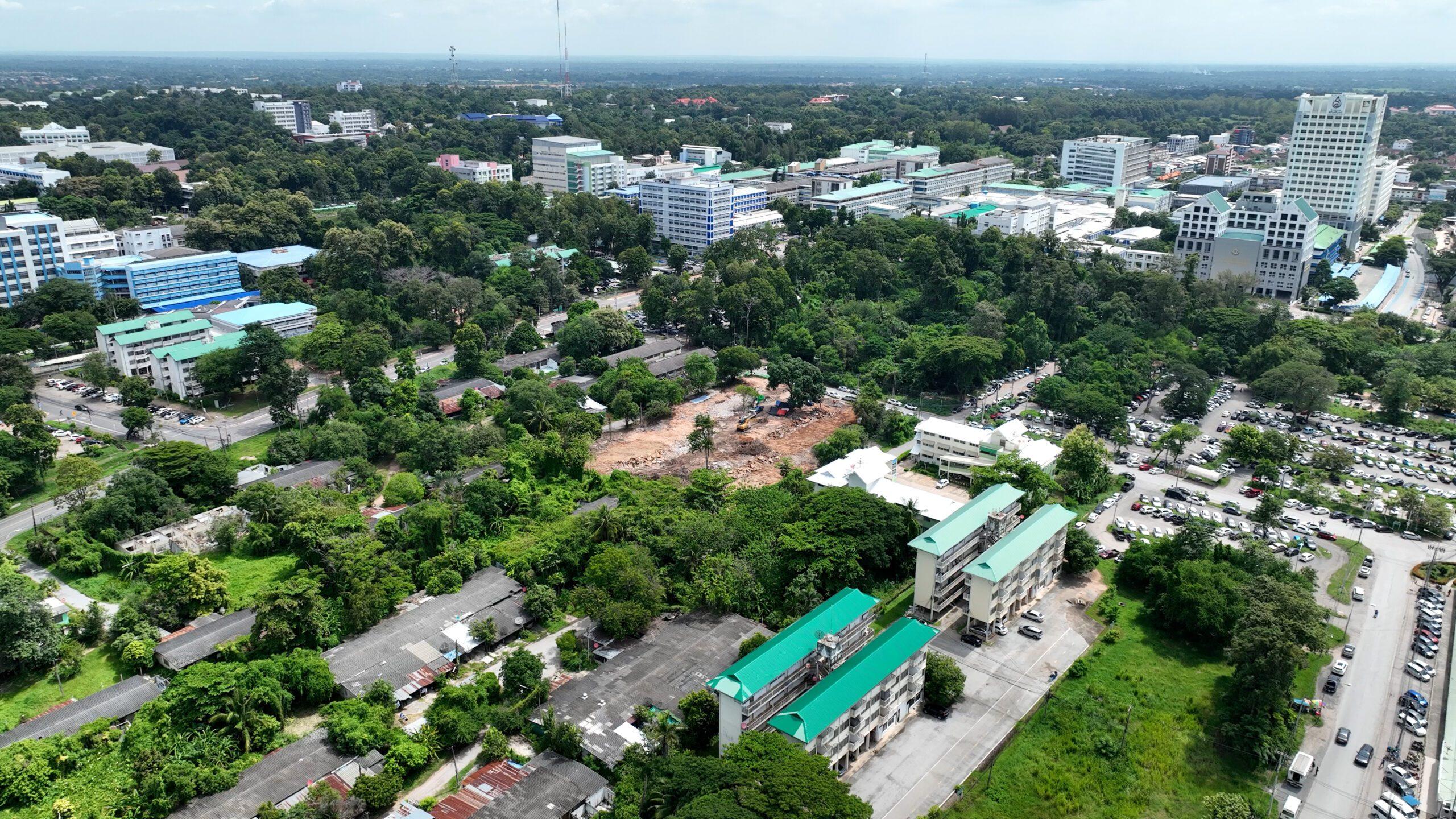 มหาวิทยาลัยขอนแก่นตระหนักถึงปัญหาเหล่านี้ พร้อมเดินหน้าปรับภูมิทัศน์มหาวิทยาลัยด้วยแนวคิด “อาคารสีเขียว” โดยเน้นการออกแบบที่ส่งเสริมสิ่งแวดล้อมอย่างเป็นระบบ ตั้งแต่การจัดสรรพื้นที่โล่งเพื่อซับน้ำฝน ลดปัญหาน้ำท่วม ไปจนถึงการวางแผนให้แต่ละอาคารสามารถกักเก็บน้ำฝนและนำน้ำกลับมาใช้ใหม่ โดยปัจจุบัน มข. ได้ใช้ระบบรีไซเคิลน้ำไปแล้วถึง 30% อีกทั้งยังให้ความสำคัญกับการประหยัดพลังงาน โดยเฉพาะการลดการใช้เครื่องปรับอากาศซึ่งเป็นปัจจัยหลักในการใช้พลังงานของมหาวิทยาลัย ควบคู่ไปกับการเลือกใช้ระบบปรับอากาศที่มีประสิทธิภาพสูง
