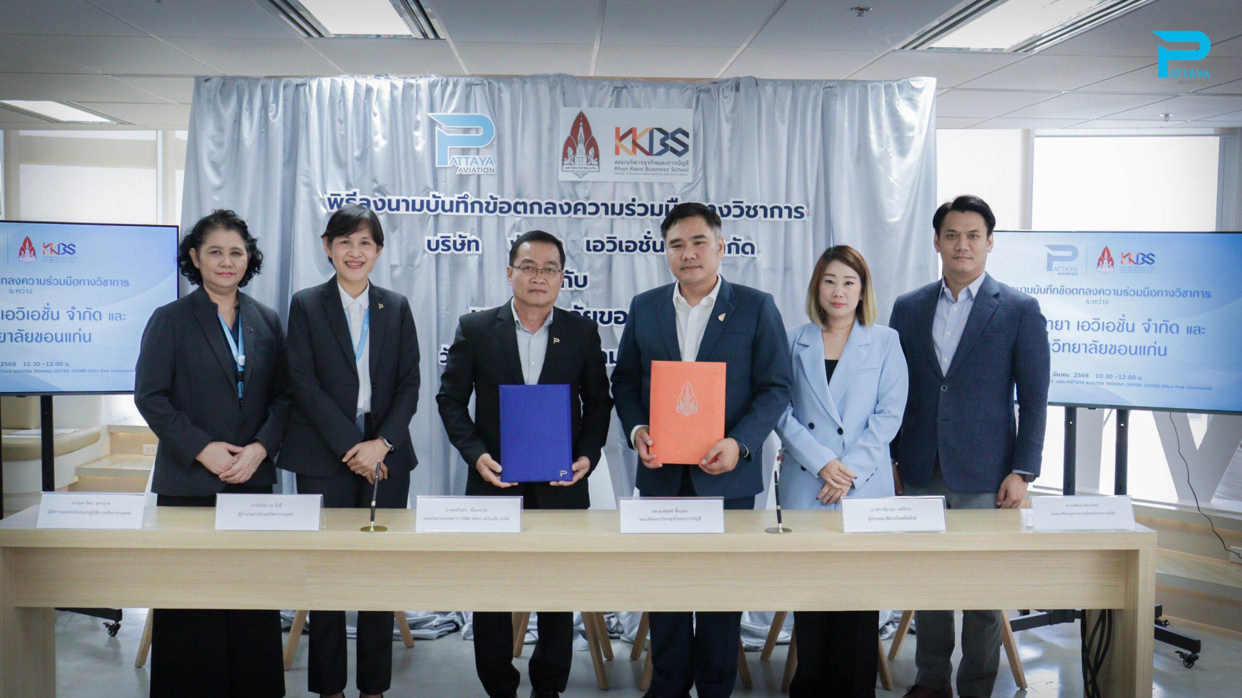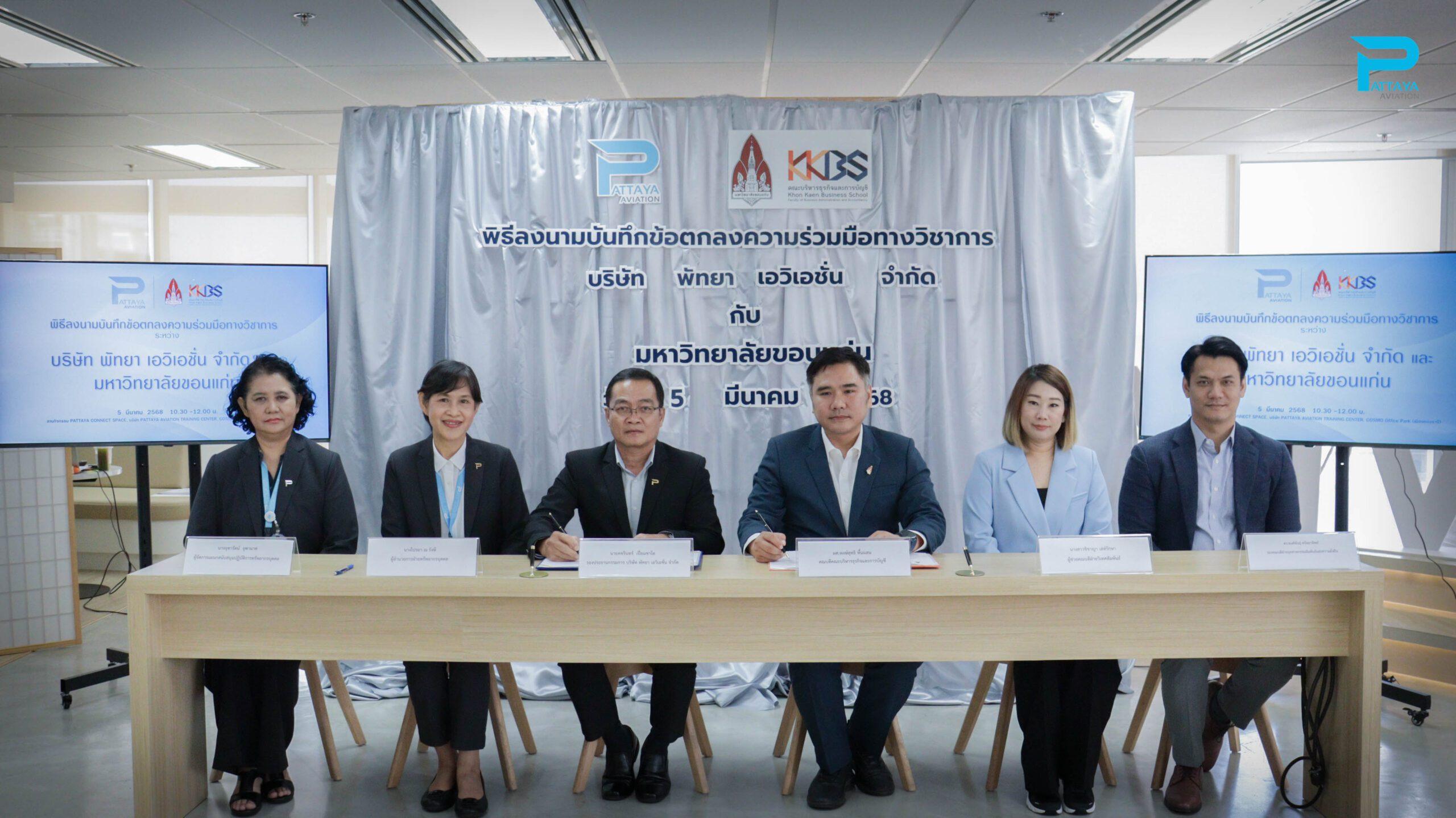 เมื่อวันที่ 5 มีนาคม 2568 ที่ผ่านมา คณะบริหารธุรกิจและการบัญชี มหาวิทยาลัยขอนแก่น ลงนามบันทึกข้อตกลงความร่วมมือทางวิชาการ (MOU) ร่วมกับ บริษัท พัทยา เอวิเอชั่น จำกัด ณ ลาน Pattaya Connect Space อาคารคอสโม ออฟฟิศพาร์ค ชั้น 8 โดยภายในพิธีได้รับเกียรติจากผู้บริหารทั้งสองหน่วยงาน ประกอบด้วย ผู้ช่วยศาสตราจารย์ ดร.พงษ์สุทธิ พื้นแสน คณบดีคณะบริหารธุรกิจและการบัญชี พร้อมด้วย ดร.พงศ์พันธุ์ ศรัทธาทิพย์ รองคณบดีฝ่ายอุตสาหกรรมสัมพันธ์และความยั่งยืน ดร.ชิชาญา เล่ห์รักษา ผู้ช่วยคณบดีฝ่ายวิเทศสัมพันธ์ และนายรชรินทร์ เปี่ยมชาโต รองประธานกรรมการ บริษัท พัทยา เอวิเอชั่น จำกัด พร้อมด้วย นางไปรยา ณ รังสี ผู้อำนวยการฝ่ายทรัพยากรบุคคล นางจุฑารัตน์ จุฑามาศ ผู้จัดการแผนกสนับสนุนปฏิบัติการทรัพยากรบุคคล และบุคลากรจากทั้งสองหน่วยงานเข้าร่วมเป็นสักขีพยานในพิธีลงนามบันทึกข้อตกลงความร่วมมือทางวิชาการในครั้งนี้