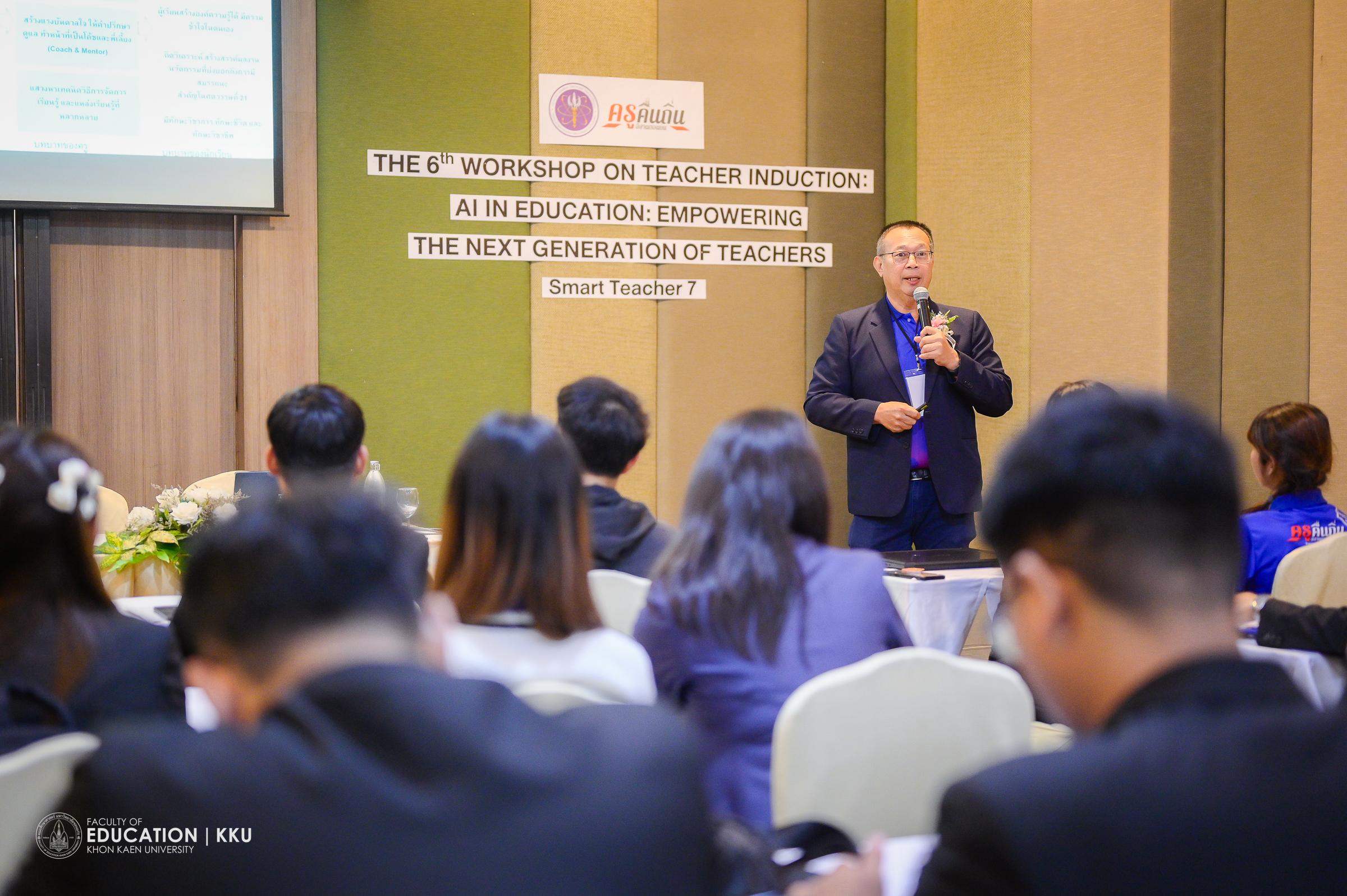 คณะศึกษาศาสตร์ มหาวิทยาลัยขอนแก่น ในฐานะแม่ข่ายสถาบันผลิตครูเพื่อพัฒนาท้องถิ่นภาคตะวันออกเฉียงเหนือตอนบน จัด การอบรมเชิงปฏิบัติการโครงการผลิตครูเพื่อพัฒนาท้องถิ่น ระยะการเข้าสู่วิชาชีพ รุ่นบรรจุปี 2566 (รุ่นที่ 8) หรือ The 6th Workshop on Teacher Induction ภายใต้หัวข้อสุดล้ำ “Ai in Education Empowering The Next Generation of Teachers” ระหว่างวันที่ 7-8 เมษายน 2568 ณ โรงแรมอวานี ขอนแก่น โฮเทล แอนด์ คอนเวนชั่น เซ็นเตอร์ โดยได้รับความร่วมมือจาก 19 สถาบันเครือข่ายผลิตครูเพื่อพัฒนาท้องถิ่นในเขตภาคอีสานตอนบน