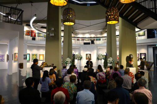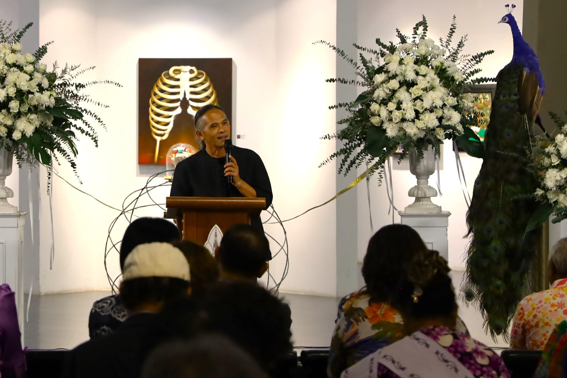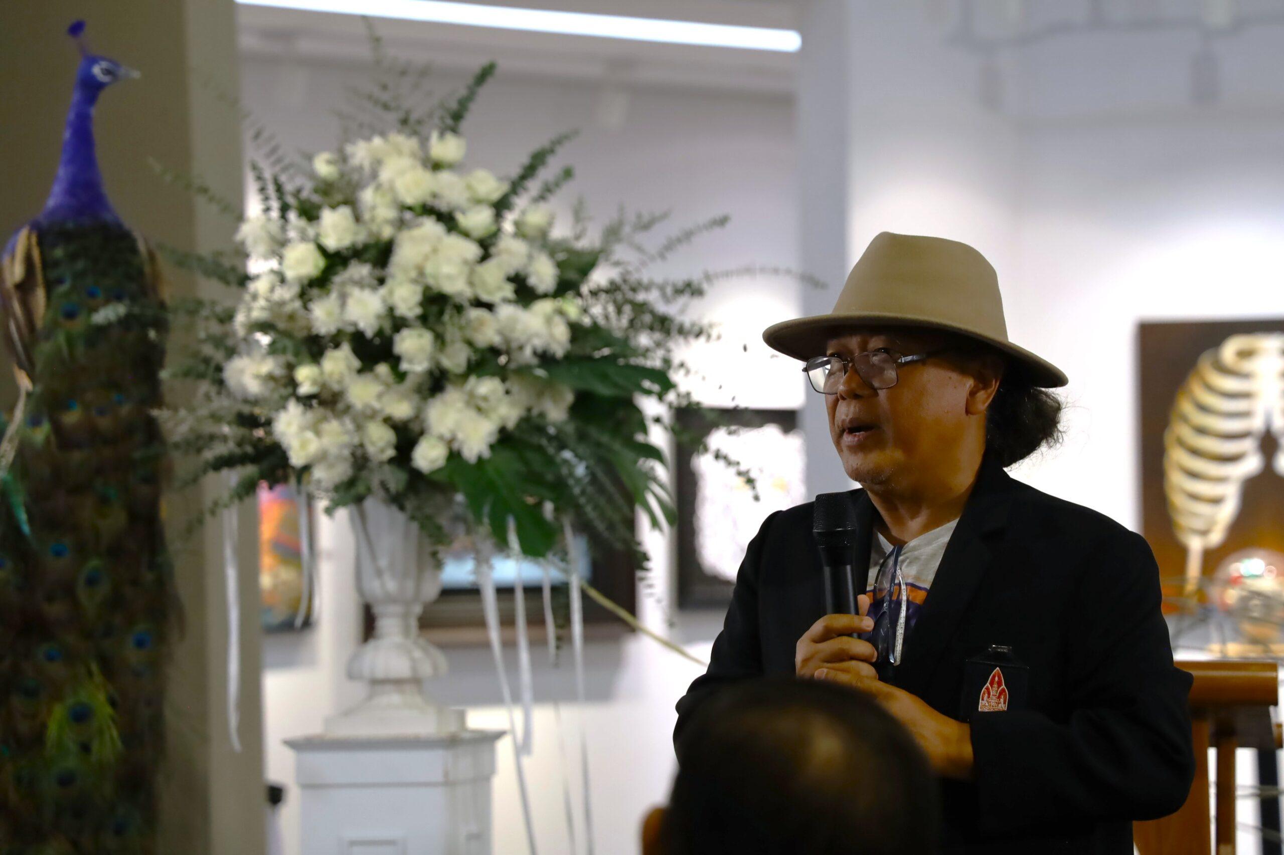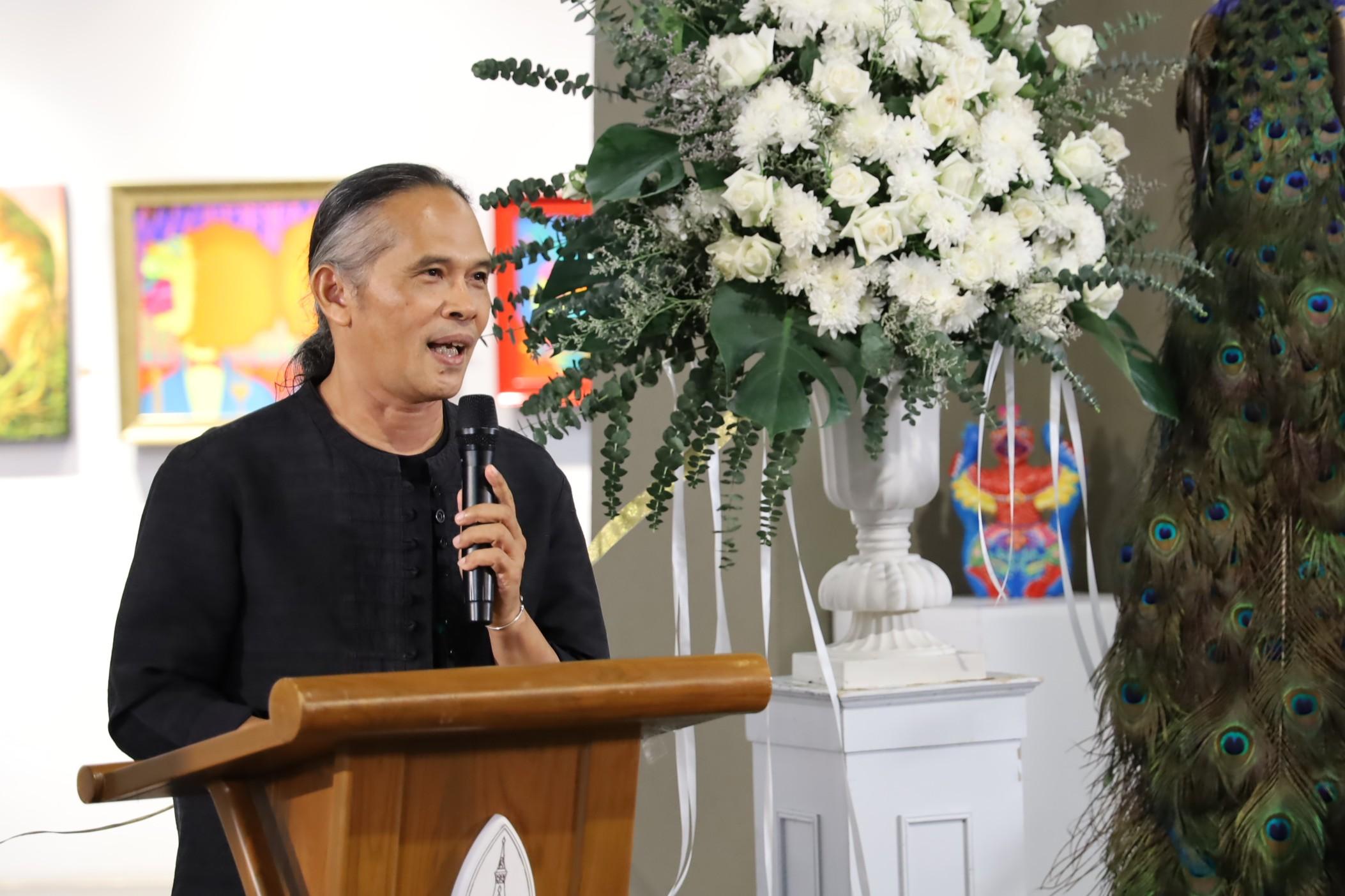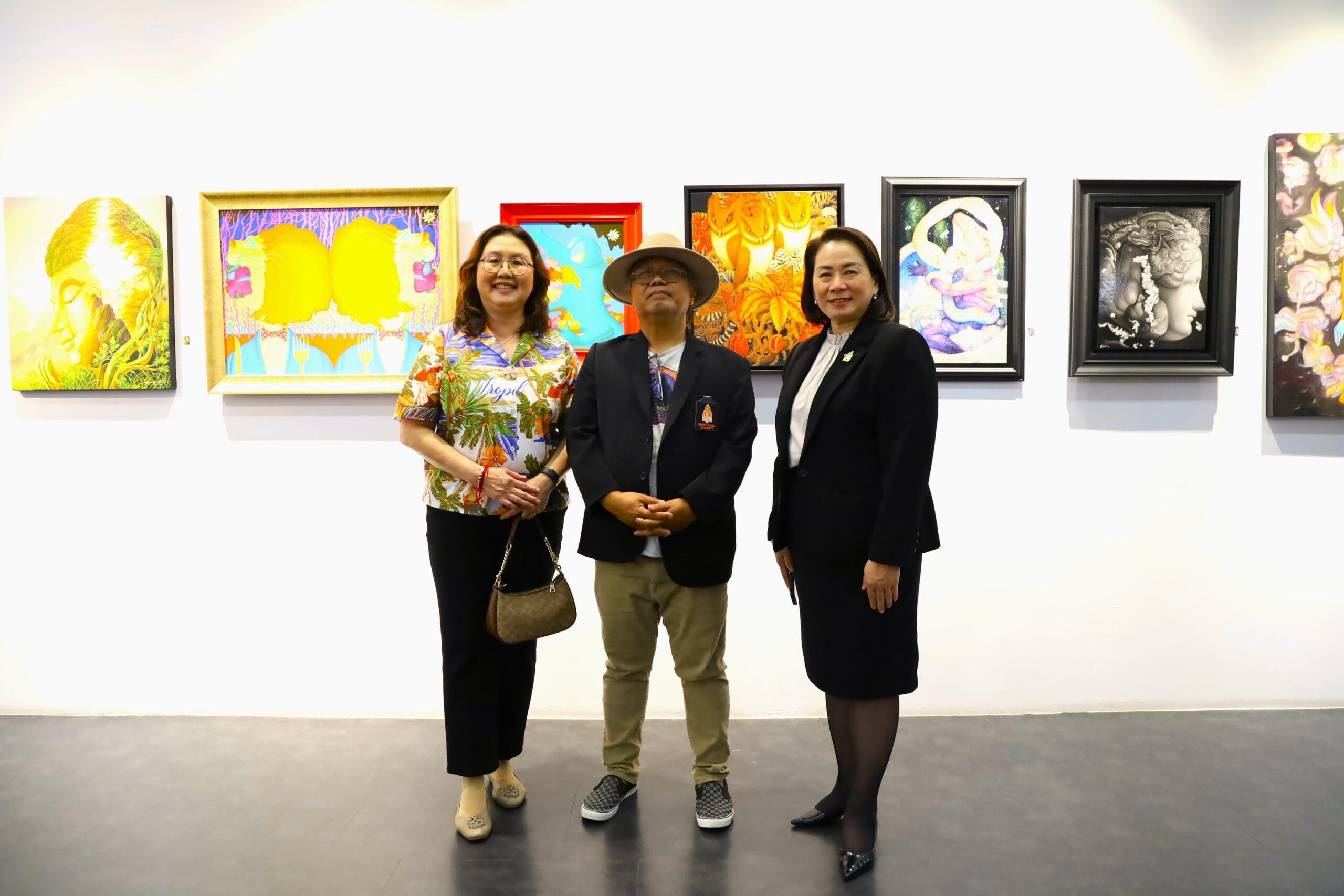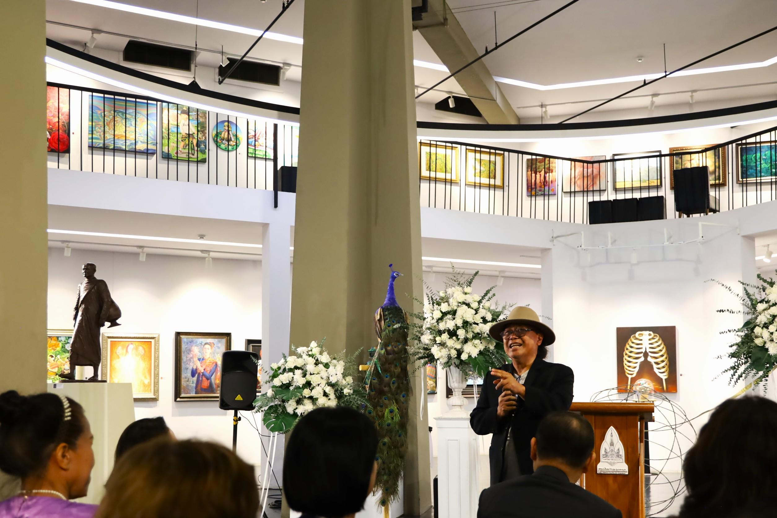 รศ.ดร.นิยม วงษ์พงษ์คำ รองอธิการบดีฝ่ายศิลปวัฒนธรรมและเศรษฐกิจสร้างสรรค์ กล่าวต้อนรับว่า “หอศิลป์มหาวิทยาลัยขอนแก่นมุ่งเป็นศูนย์กลางการเผยแพร่และแลกเปลี่ยนความรู้ด้านศิลปวัฒนธรรมในภูมิภาคอีสาน ปัจจุบันหอศิลป์ได้รับความสนใจจากศิลปินอย่างล้นหลาม จนมีการจองคิวจัดแสดงผลงานเต็มตลอดปี 2568 แล้ว โดยพื้นที่ชั้น 3 จะเป็นพื้นที่จัดแสดงผลงานของศิลปินแห่งชาติที่บริจาคให้กับมหาวิทยาลัยขอนแก่น เพื่อให้ผู้สนใจได้เรียนรู้งานศิลปะ นอกจากนี้เรายังมีเป้าหมายที่จะพัฒนาหอศิลป์ให้เป็นพื้นที่ศิลปะที่เปิดบริการ 24 ชั่วโมง และผลักดันสู่การเป็นหอศิลป์ระดับชาติต่อไป”