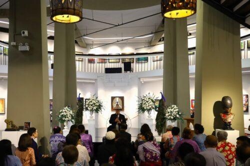 “ผมเห็นการทำงานของคณะกรรมการส่งเสริมกิจการมหาวิทยาลัยขอนแก่นแล้วรู้สึกประทับใจมาก เพราะทุกท่านได้ร่วมกันผลักดันทุ่มเททั้งแรงกายแรงใจ ความจริงแล้วศิลปินในภาคอีสานมีจำนวนมาก ทั้งศิลปินแห่งชาติ ศิลปินศิลปาธร และศิลปินมรดกอีสาน หลายท่านมีชื่อเสียง สร้างผลงานมาอย่างต่อเนื่องยาวนาน มีผลงานมูลค่าสูงและเป็นที่ต้องการของผู้สะสม การจัดงานครั้งนี้มีศิลปินตอบรับเข้าร่วมกว่า 100 ท่าน โดยรายได้จากการจำหน่ายผลงาน 30% จะนำเข้าสู่โครงการระดมทุนเพื่อการศึกษา ‘พี่ให้น้องกองละ 1,000 บาท’ เพื่อมอบทุนการศึกษาแก่นักศึกษามหาวิทยาลัยขอนแก่นที่ขาดแคลนทุนทรัพย์ เห็นได้ว่านิทรรศการครั้งนี้ไม่ได้เป็นเพียงการส่งเสริมงานศิลปะอีสาน แต่ยังเป็นการวางรากฐานสำคัญในการพัฒนาวงการศิลปะของภูมิภาคให้เติบโตอย่างยั่งยืนต่อไปในอนาคต” อาจารย์ธีระวัฒน์กล่าวสรุป