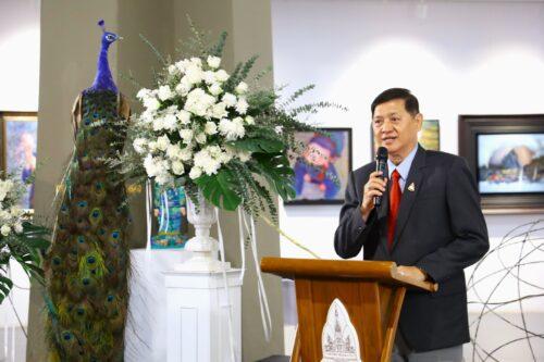 ด้าน นายสุกิจ ศิรินรกุล ประธานกรรมการส่งเสริมกิจการมหาวิทยาลัยขอนแก่น กล่าวในพิธีเปิดว่า “ในภาคอีสานเราเป็นภาคที่มีคนมากที่สุด มีศิลปินเป็นจำนวนมาก แต่การรวมตัว การขายภาพยังมีน้อย นอกจากนี้ปัจจุบันชาวต่างชาติได้เกิดกระแสไล่ชอปปิ้งศิลปะตามลุ่มแม่น้ำโขง กรรมการส่งเสริมกิจการมหาวิทยาลัยขอนแก่น ก็เลยเกิดแนวคิดที่อยากจะเป็นศูนย์รวมให้ศิลปินภาคอีสานมารวมตัวกัน ขณะเดียวกันการจัดงานครั้งนี้ยังสอดคล้องกับแนวคิดนิวอีสานของมหาวิทยาลัยขอนแก่น และกิจกรรมครั้งนี้ยังเป็น Soft Power อีกด้วย ขอขอบคุณอาจารย์ธีรวัฒน์ ที่สามารถรวบรวมผลงานจากศิลปินกว่า 123 ชิ้น โดยมีราคาเริ่มตั้งแต่ 5,000 – 300,000 บาท ถือเป็นราคาที่จับต้องได้ ในนามมหาวิทยาลัยขอนแก่นมีความภาคภูมิใจที่ได้ผลักดันผลงานของศิลปินทุกท่านที่มาในวันนี้ ให้ประชาชนทั่วไปได้ชื่นชม อยากจะเชิญชวนให้ทุกท่านมาดู มาซื้อเพื่อนำเงินไปช่วยโครงการที่ช่วยน้องและพัฒนาหอศิลป์ให้ได้มาตรฐานมีความงดงามระดับชาติต่อไป”ประธานกรรมการส่งเสริมกิจการมหาวิทยาลัยขอนแก่นกล่าวทิ้งท้าย