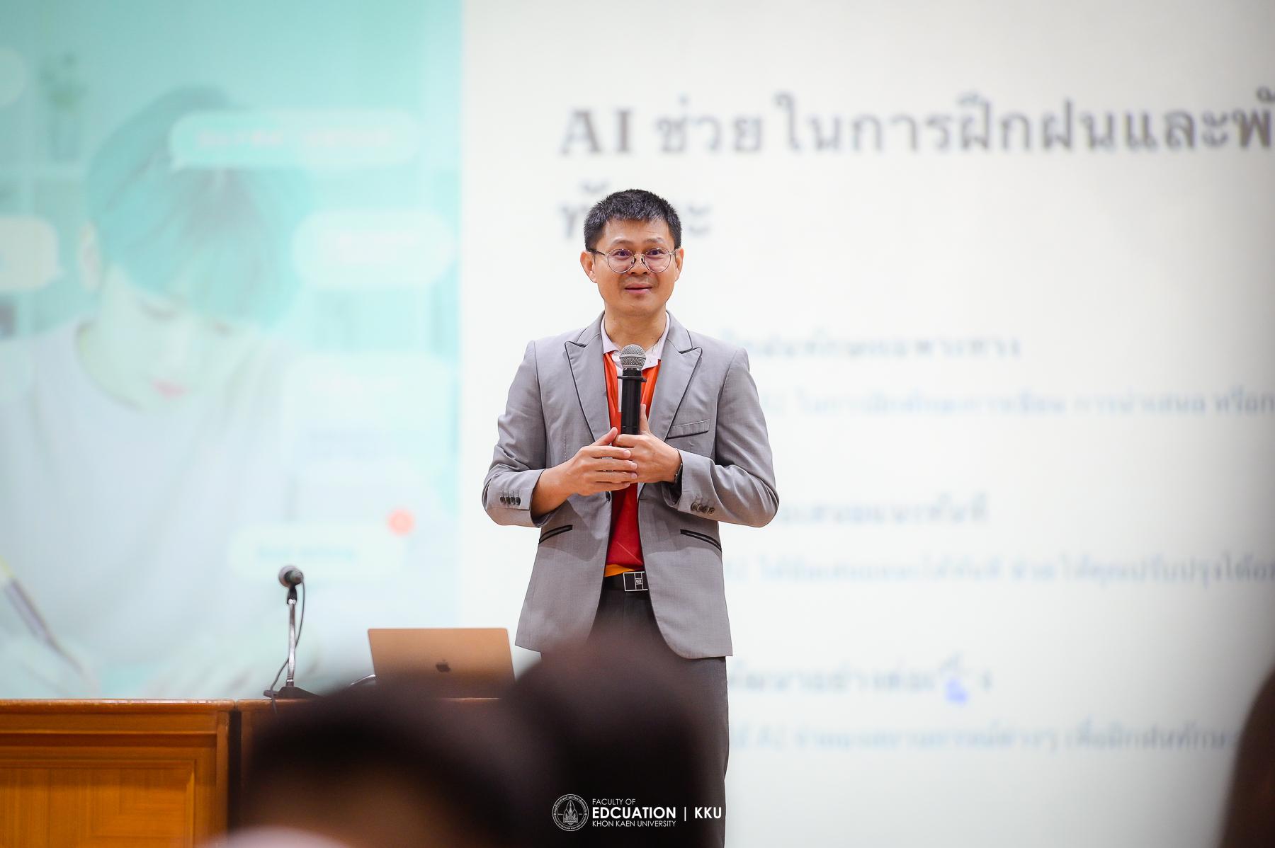 ผศ.ดร.อนุชา โสมาบุตร ได้แนะแนวทางการประยุกต์ใช้ AI อย่างสร้างสรรค์ในวิชาชีพครู โดยเน้นย้ำว่า AI ไม่ใช่เพียงเครื่องมือ แต่เป็นเสมือน “เพื่อนคู่คิด” ที่สามารถช่วยเสริมสมรรถนะการเรียนรู้และพัฒนาทักษะที่จำเป็นในอนาคตได้อย่างไร้ขีดจำกัด นักศึกษาสามารถใช้ AI เพื่อค้นหาข้อมูลในมุมมองที่แตกต่าง สร้างสรรค์สื่อการสอนรูปแบบใหม่ หรือแม้กระทั่งเป็นผู้ช่วยในการวางแผนการจัดการเรียนรู้ที่ตอบสนองต่อผู้เรียนรายบุคคล โดยหลักสำคัญคือการสร้าง “ทักษะความฉลาดรู้ด้านปัญญาประดิษฐ์ (AI Literacy)” ซึ่งเป็นทักษะพื้นฐานที่ครูยุคใหม่ต้องมี เพื่อให้สามารถเลือกใช้และประยุกต์ใช้เครื่องมือ AI ได้อย่างสร้างสรรค์ มีประสิทธิภาพ รู้เท่าทัน และมีจริยธรรม นอกจากนี้ ยังได้แนะนำ “KKU IntelSphere” แพลตฟอร์ม AI ของมหาวิทยาลัยขอนแก่น ที่เปิดโอกาสให้นักศึกษาทุกคนสามารถเข้าถึงและใช้ประโยชน์จากเทคโนโลยี AI ได้อย่างเต็มศักยภาพ เพื่อต่อยอดการเรียนรู้และการวิจัยของตนเอง