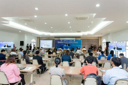อาจารย์ณัฐสมล ธนกุลรังสฤษดิ์ รองอธิการบดีฝ่ายกฎหมายและสื่อสารองค์กร มหาวิทยาลัยขอนแก่น กล่าวว่า โครงการนี้มีความสอดคล้องกับยุทธศาสตร์มหาวิทยาลัยขอนแก่น พ.ศ. 2568-2571 ที่มุ่งเน้นการพัฒนาการศึกษา การพัฒนาบุคลากรให้มีสมรรถนะสูงในระดับนานาชาติ การขับเคลื่อนงานวิจัยและนวัตกรรมที่ตอบโจทย์สังคม รวมถึงการยกระดับบทบาทของมหาวิทยาลัยในเวทีสากล “โครงการนี้ไม่ใช่เพียงเวทีของการอบรม แต่คือเวทีแห่งความร่วมมือ การวิจัย การพัฒนานวัตกรรม และการเตรียมความพร้อมของครูในศตวรรษที่ 21 ที่เชื่อมโยงกับเป้าหมายสำคัญของยุทธศาสตร์ มข. ในหลายด้าน”