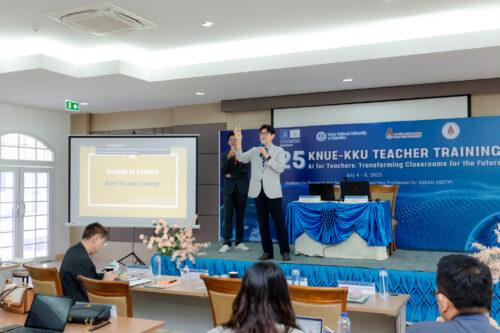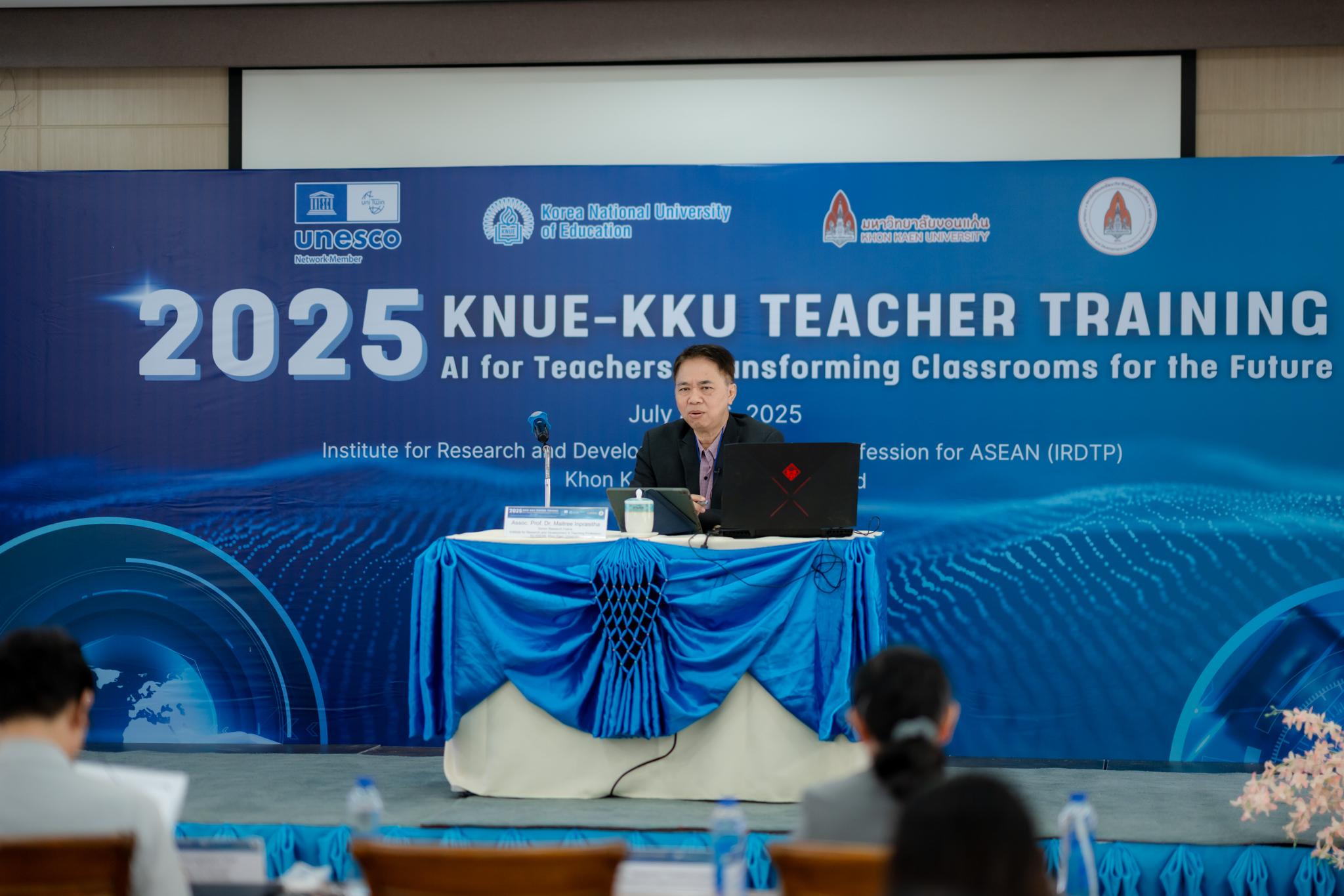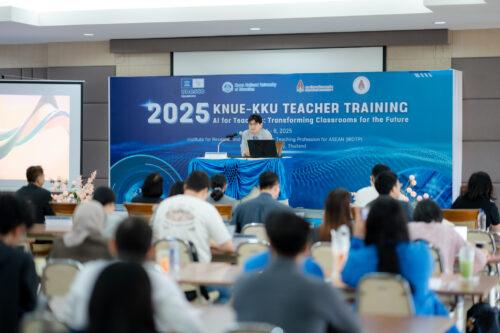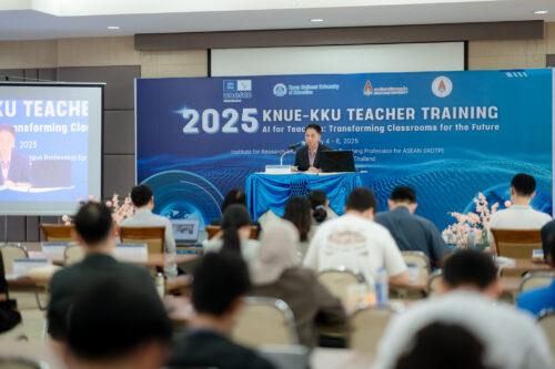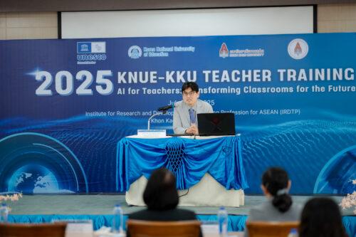 ด้านรองศาสตราจารย์ ดร.ไมตรี อินทร์ประสิทธิ์ นักวิจัยสมรรถนะสูง สถาบันวิจัยและพัฒนาวิชาชีพครูสำหรับอาเซียน เผยว่า การจัดโครงการในครั้งนี้นับเป็นอีกก้าวสำคัญของความร่วมมือระหว่าง KNUE และมหาวิทยาลัยขอนแก่น ภายใต้กรอบของ UNITWIN Program ที่ได้รับการสนับสนุนโดยองค์การ UNESCO “การบูรณาการเนื้อหาเกี่ยวกับปัญญาประดิษฐ์เข้ากับการพัฒนาวิชาชีพครู ผ่านการบรรยายและ workshop ที่เข้มข้นตลอดระยะเวลา 3 วัน ถือเป็นโอกาสสำคัญในการเสริมสร้างองค์ความรู้ใหม่ที่ทันต่อยุคปัจจุบัน มีการแลกเปลี่ยนประสบการณ์และพัฒนาเครือข่ายวิชาชีพอย่างยั่งยืน”