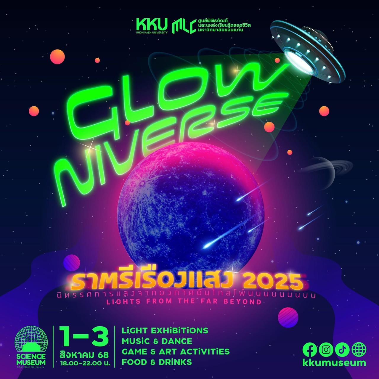 กลับมาอีกครั้ง! ศูนย์พิพิธภัณฑ์และแหล่งเรียนรู้ตลอดชีวิต มหาวิทยาลัยขอนแก่น เตรียมจัดกิจกรรม “Museum Glow Nights 2025 : ราตรีเรืองแสง” ระหว่างวันที่ 1 – 3 สิงหาคม 2568 เวลา 18.00 – 22.00 น. ณ อาคารพิพิธภัณฑ์วิทยาศาสตร์ เพื่อเฉลิมพระเกียรติพระบาทสมเด็จพระวชิรเกล้าเจ้าอยู่หัว เนื่องในวันเฉลิมพระชนมพรรษา และเปิดโอกาสให้ประชาชน เยาวชน นักเรียน นักศึกษา และผู้สนใจทั่วไป ได้เข้ามาเรียนรู้วิทยาศาสตร์ผ่านนิทรรศการและกิจกรรมในบรรยากาศยามค่ำคืน