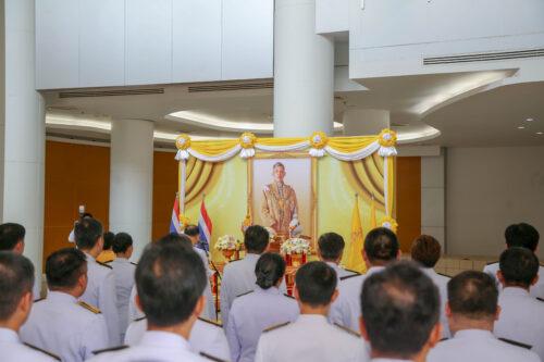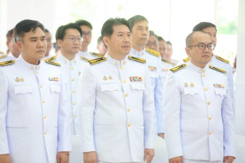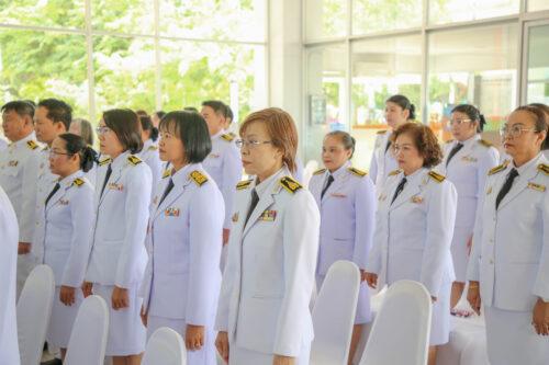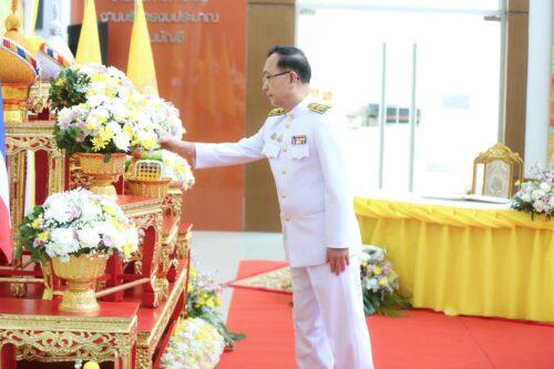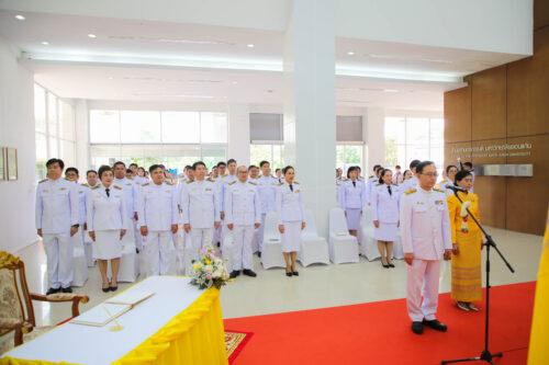 พิธีการเริ่มจาก ท่านประธานในพิธี รศ.นพ. ชาญชัย พานทองวิริยะกุล อธิการบดี และภริยา ดร.เอื้อนจิต พานทองวิริยะกุล ถวายความเคารพเบื้องหน้าพระบรมฉายาลักษณ์ พระบาทสมเด็จพระเจ้าอยู่หัว พร้อมเปิดกรวยกระทงดอกไม้ ธูปเทียนแพ และถวายความเคารพพระบรมฉายาลักษณ์ จากนั้นประธานนำผู้เข้าร่วมพิธี กราบบังคมทูลถวายพระพร