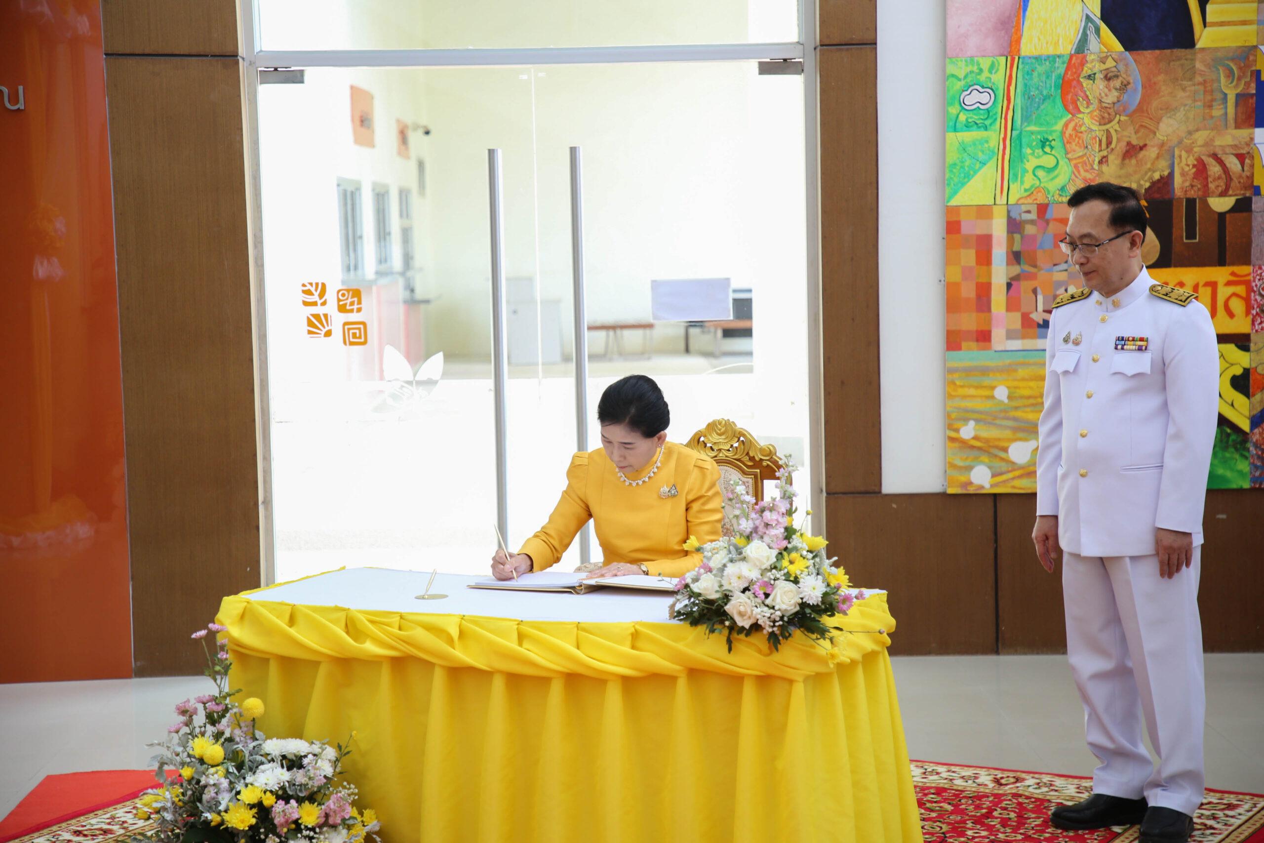 จากนั้นอธิการบดี มหาวิทยาลัยขอนแก่นได้นำกล่าว ถวายสัตย์ปฏิญาณฯ พร้อมร่วมร้องเพลงสรรเสริญพระบารมี และ ถวายความเคารพพร้อมกัน ท้ายสุดประธาน พร้อมด้วยภริยา ได้ลงนามถวายพระพร