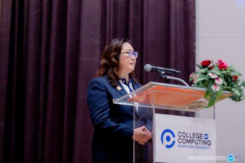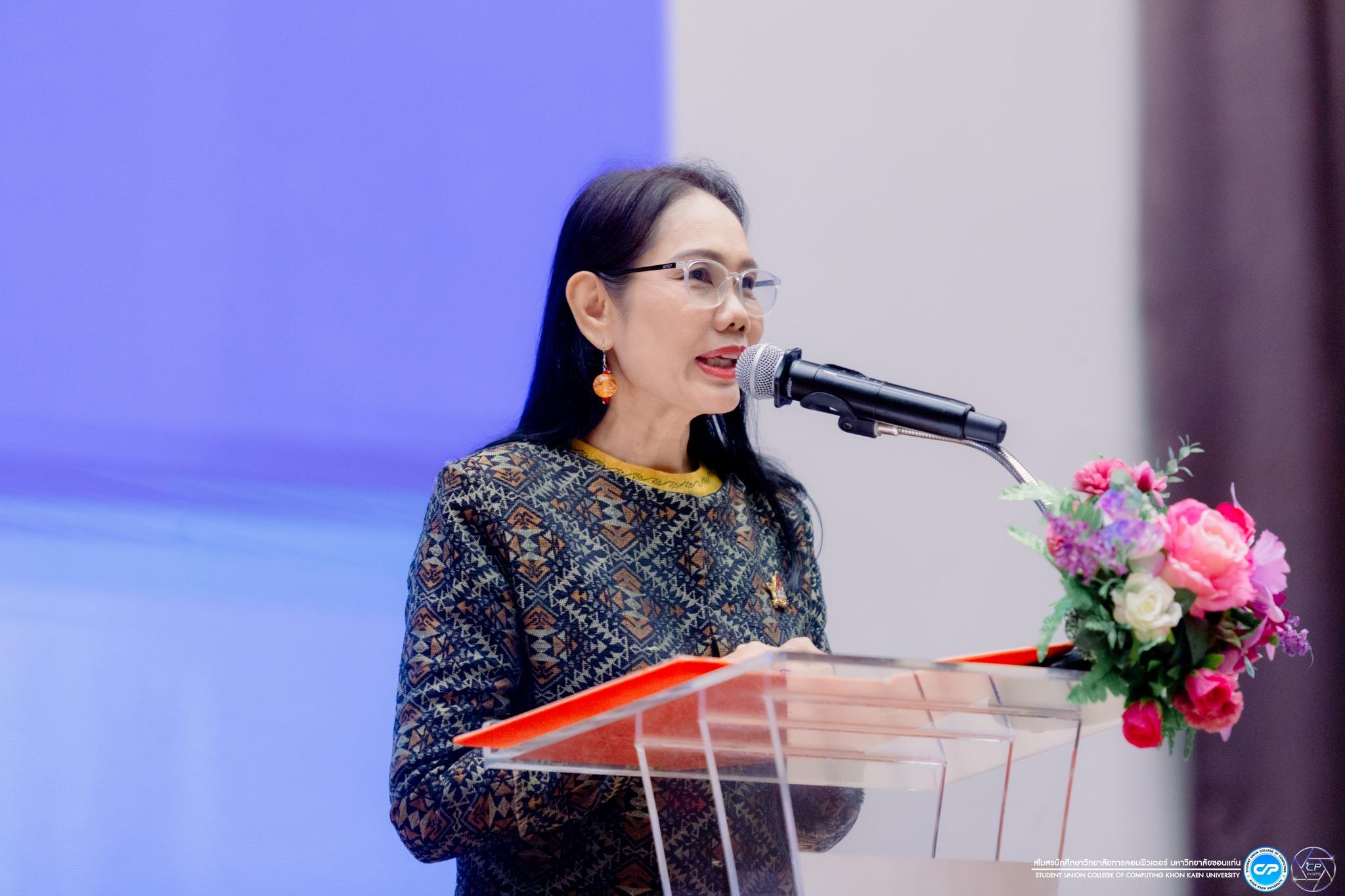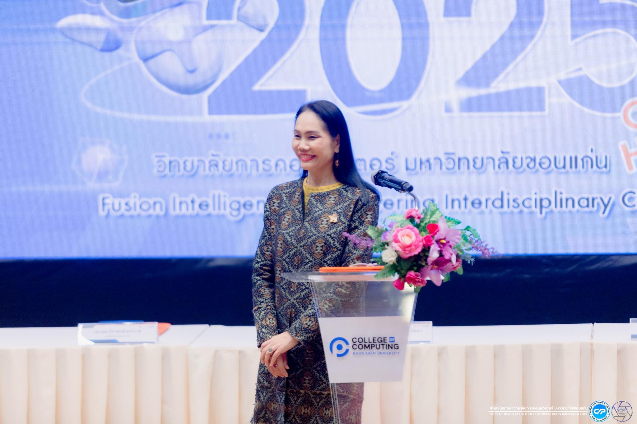 รศ.ดร.เพ็ญศรี เจริญวานิช กล่าวว่า “งาน Computing Fair ครั้งที่ 3 ประจำปี 2568 ซึ่งจัดขึ้นภายใต้แนวคิด ‘Fusion Intelligence: Empowering Interdisciplinary Collaboration’ อันสะท้อนถึงเจตนารมณ์อันแน่วแน่ของวิทยาลัยการคอมพิวเตอร์มหาวิทยาลัยขอนแก่น ในการผลักดันองค์ความรู้ด้านเทคโนโลยีสารสนเทศและปัญญาประดิษฐ์ให้มีบทบาทสำคัญต่อการพัฒนาสังคมในทุกมิติ”