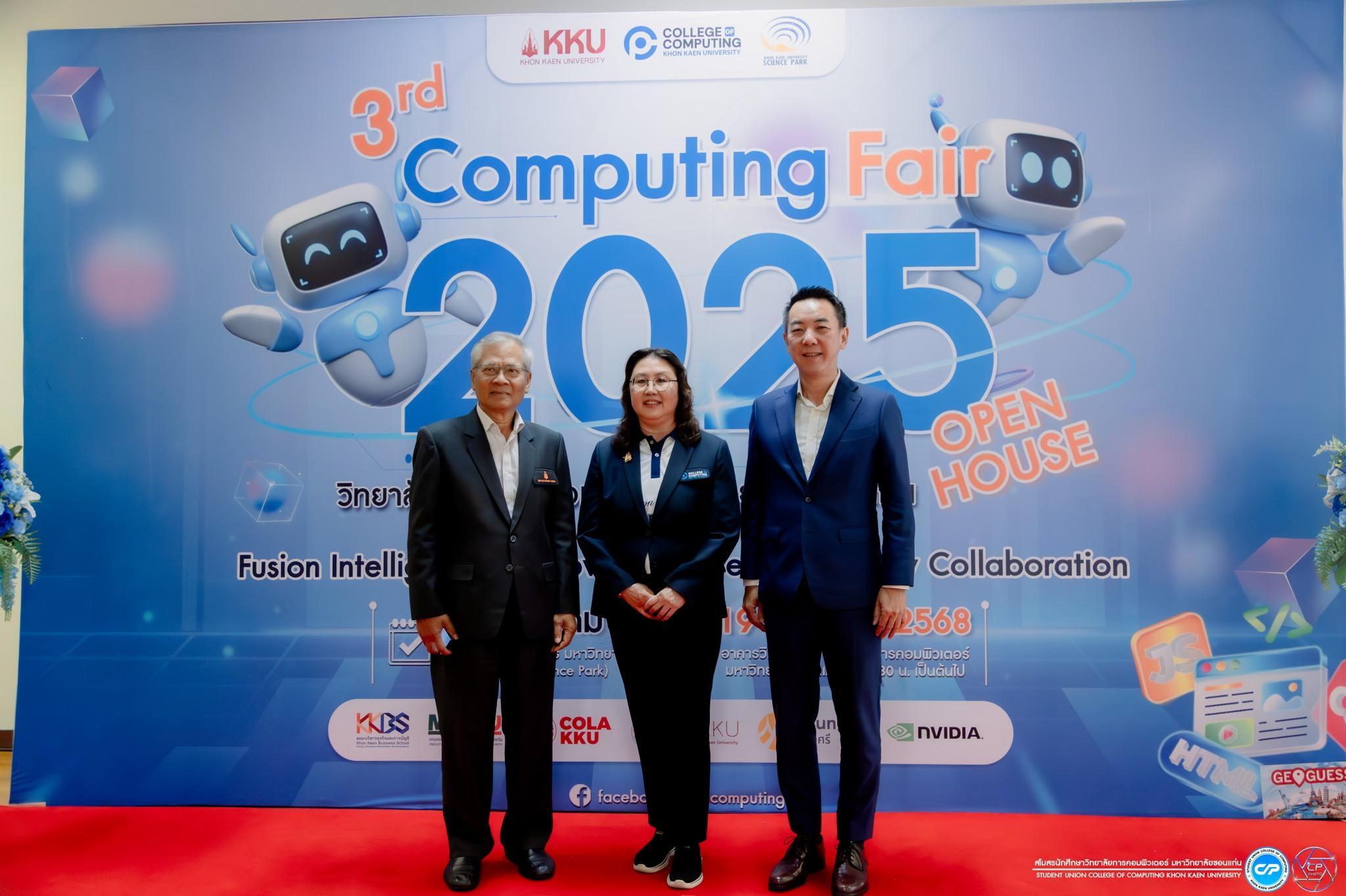 งาน Computing Fair ครั้งที่ 3 จัดขึ้นระหว่างวันที่ 18-19 สิงหาคม 2568 โดยเป็นเวทีสำคัญในการแสดงศักยภาพด้านเทคโนโลยีสารสนเทศและการสร้างเครือข่ายความร่วมมือระหว่างสถาบันการศึกษา ภาคเอกชน และนักศึกษา เพื่อขับเคลื่อนประเทศไทยสู่ยุคดิจิทัลอย่างยั่งยืน และขอขอบคุณอุทยานวิทยาศาสตร์ มหาวิทยาลัยขอนแก่น ที่ได้เอื้อเฟื้อสถานที่ในการจัดกิจกรรมครั้งนี้