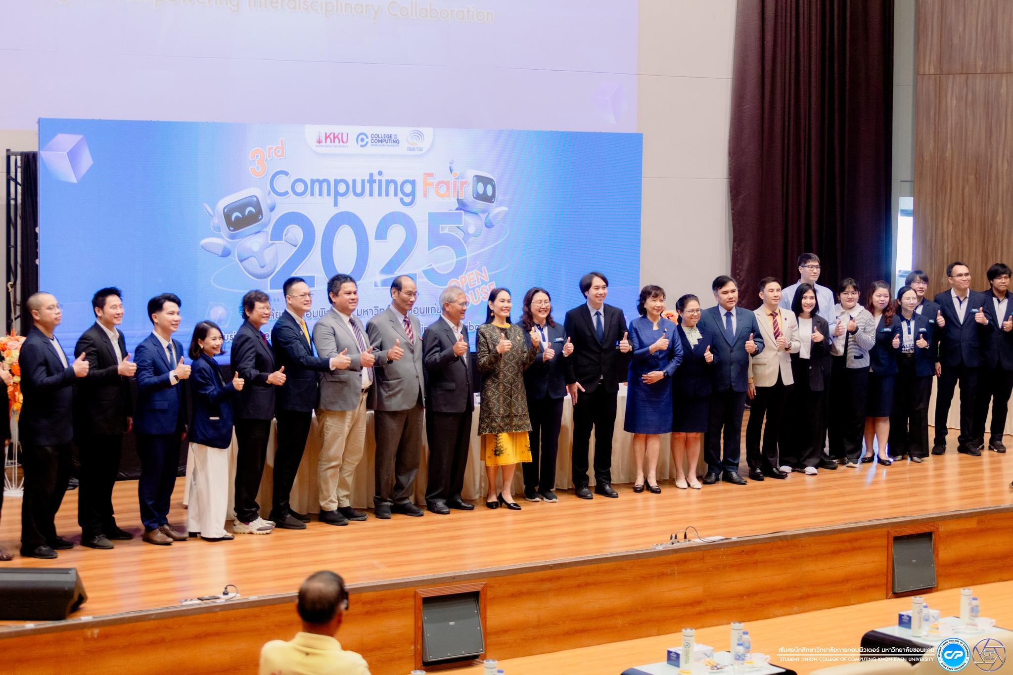 เมื่อวันที่ 18 สิงหาคม 2568 วิทยาลัยการคอมพิวเตอร์ มหาวิทยาลัยขอนแก่น จัดพิธีเปิดงาน Computing Fair ครั้งที่ 3 ประจำปี 2568 ภายใต้แนวคิด “Fusion Intelligence: Empowering Interdisciplinary Collaboration” ณ ห้อง Auditorium อุทยานวิทยาศาสตร์ มหาวิทยาลัยขอนแก่น โดยมี รศ.ดร.เพ็ญศรี เจริญวานิช รองอธิการบดีฝ่ายกิจการนักศึกษาและนวัตวณิชย์ เป็นประธานในพิธีเปิด