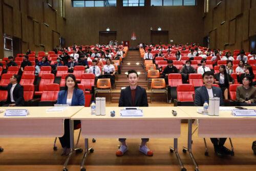 จากนั้น รศ.ดร.รัตติกร วรากูลศิริพันธุ์ กรรมการผู้ทรงคุณวุฒิ ในคณะกรรมการนโยบายและกำกับดูแลสถาบันไทยโคเซ็น โดยสำนักงานปลัดกระทรวงการอุดมศึกษา วิทยาศาสตร์ วิจัยและนวัตกรรม ได้บรรยายในหัวข้อ “ความร่วมมือระหว่างสถาบันอุดมศึกษา ภาคเอกชน และต่างประเทศ กับการขับเคลื่อนนวัตกรรมเทคโนโลยีดิจิทัล” ขยายมุมมองเรื่องการสร้างเครือข่ายความร่วมมือทางวิชาการ เพื่อแนะแนวทางการสร้างระบบนิเวศนวัตกรรมที่เชื่อมโยงทุกภาคส่วนและส่งเสริมการถ่ายทอดเทคโนโลยีสู่การพัฒนาประเทศอย่างยั่งยืน