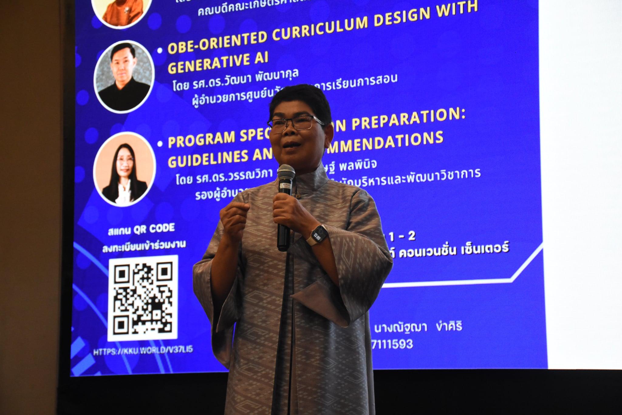 ภาคบ่าย รศ.ดร.วรรณวิภา แก้วประดิษฐ์ พลพินิจ รองผู้อำนวยการฝ่ายวิชาการ สำนักบริหารและพัฒนาวิชาการ บรรยายหัวข้อ “Program Specification Preparation: Guidelines and Recommendations” ตามด้วย รศ.ดร.วัฒนา พัฒนากุล ผู้อำนวยการศูนย์นวัตกรรมการเรียนการสอน ในหัวข้อ “OBE-oriented Curriculum Design with Generative AI” นำเสนอแนวทางออกแบบหลักสูตรตามกรอบ OBE ร่วมกับการใช้ AI เป็นเครื่องมือสำคัญ ตั้งแต่การร่าง/ทบทวน PLO–CLO การทำ curriculum mapping การออกแบบ Active Learning การสร้างรูบริกที่ตรวจสอบได้ ไปจนถึงการทำ AI-powered gap analysis โดยเน้นความโปร่งใส การตรวจสอบอคติ ความถูกต้อง และการมีผู้เชี่ยวชาญร่วมกำกับ (human-in-the-loop)