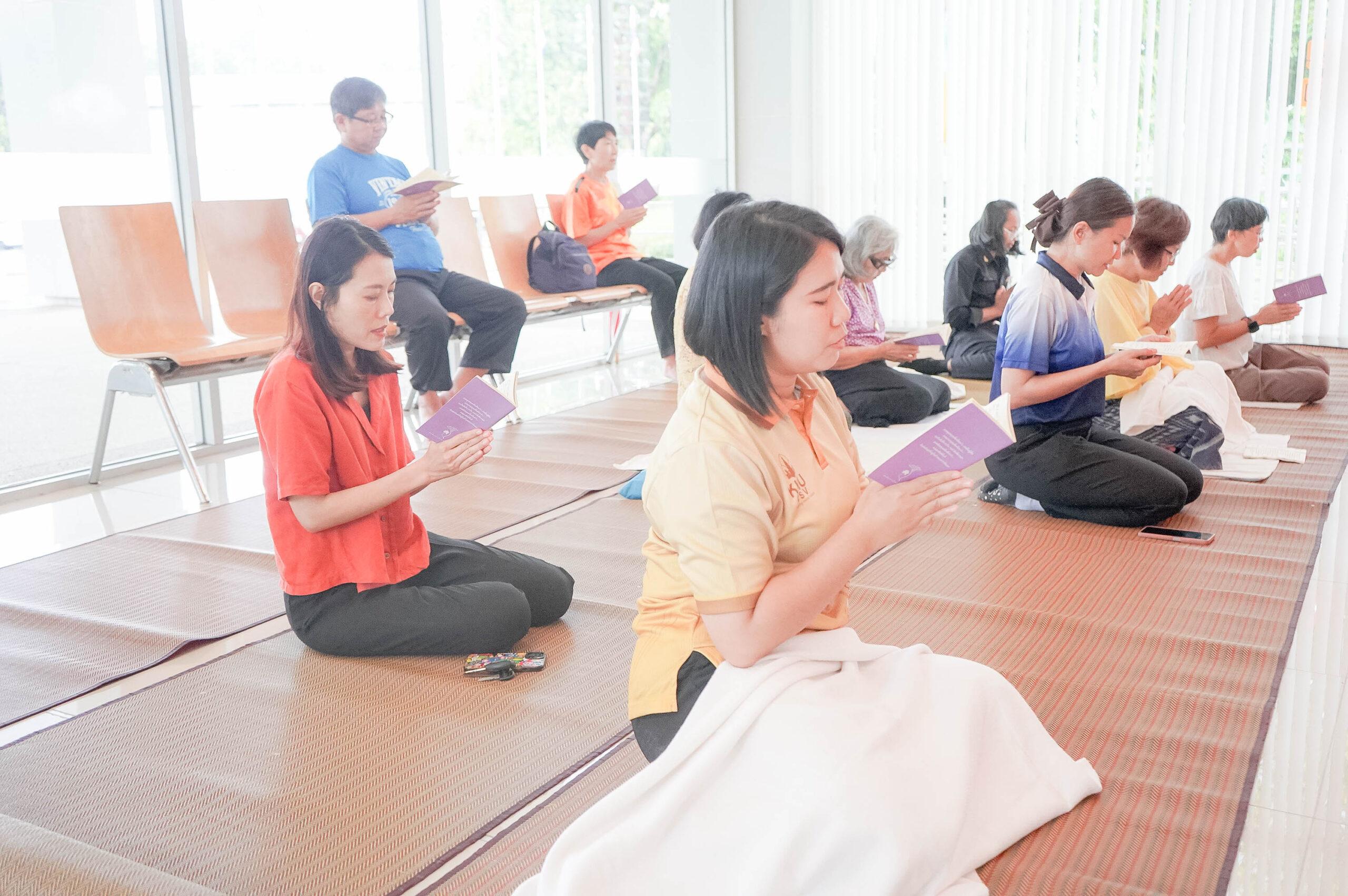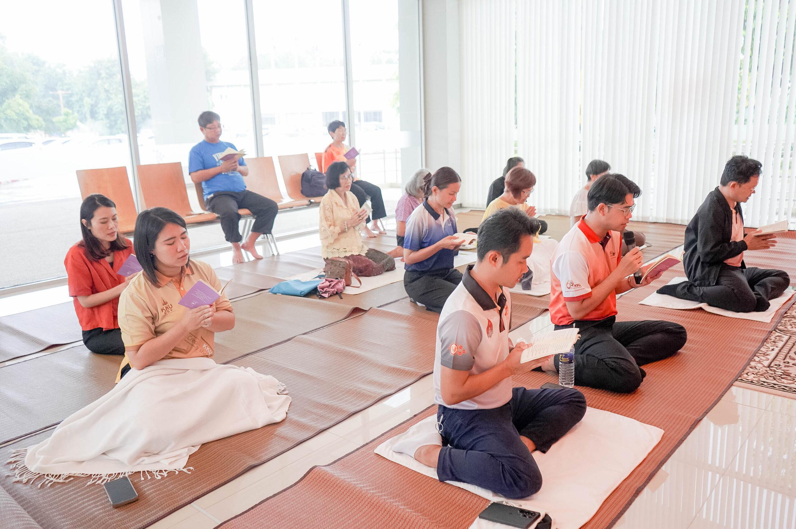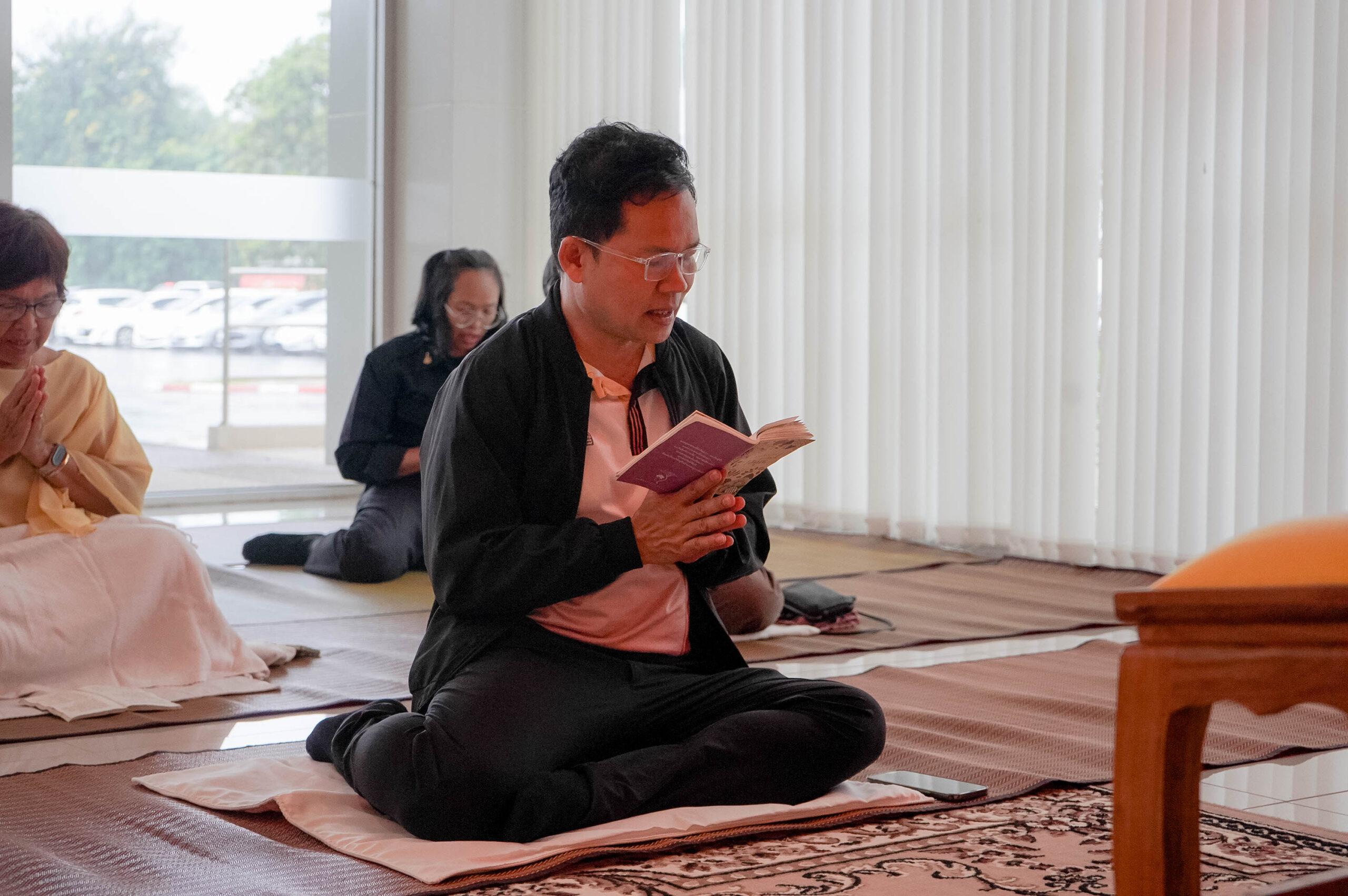 วันที่ 8 กันยายน พ.ศ.2568 ณ บริเวณห้องโถง ชั้น 1 อาคารสิริคุณากร สำนักงานอธิการบดี มหาวิทยาลัยขอนแก่น กองสื่อสารองค์กร จัดกิจกรรมสวดมนต์ทำวัตรเย็น นั่งสมาธิ ในโครงการส่งเสริมคุณธรรม จริยธรรม สำนักงานอธิการบดี มหาวิทยาลัยขอนแก่น ซึ่งได้รับเกียรติจาก นายชุมพร พารา เป็นประธานสวดมนต์ทำวัตรเย็น โดยมีบุคลากรภายใน มข.และประชาชนทั่วไป เข้าร่วมกิจกรรม