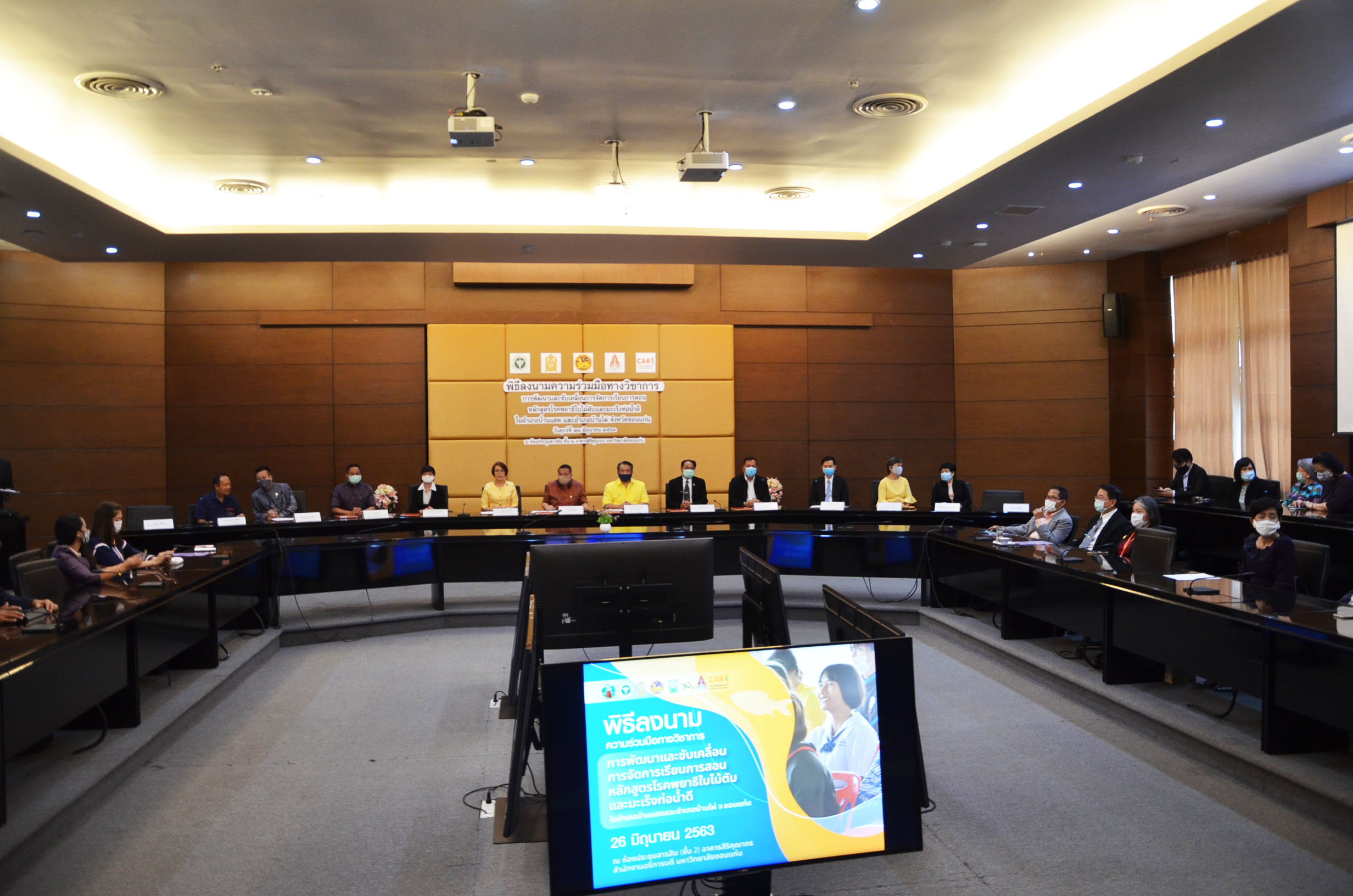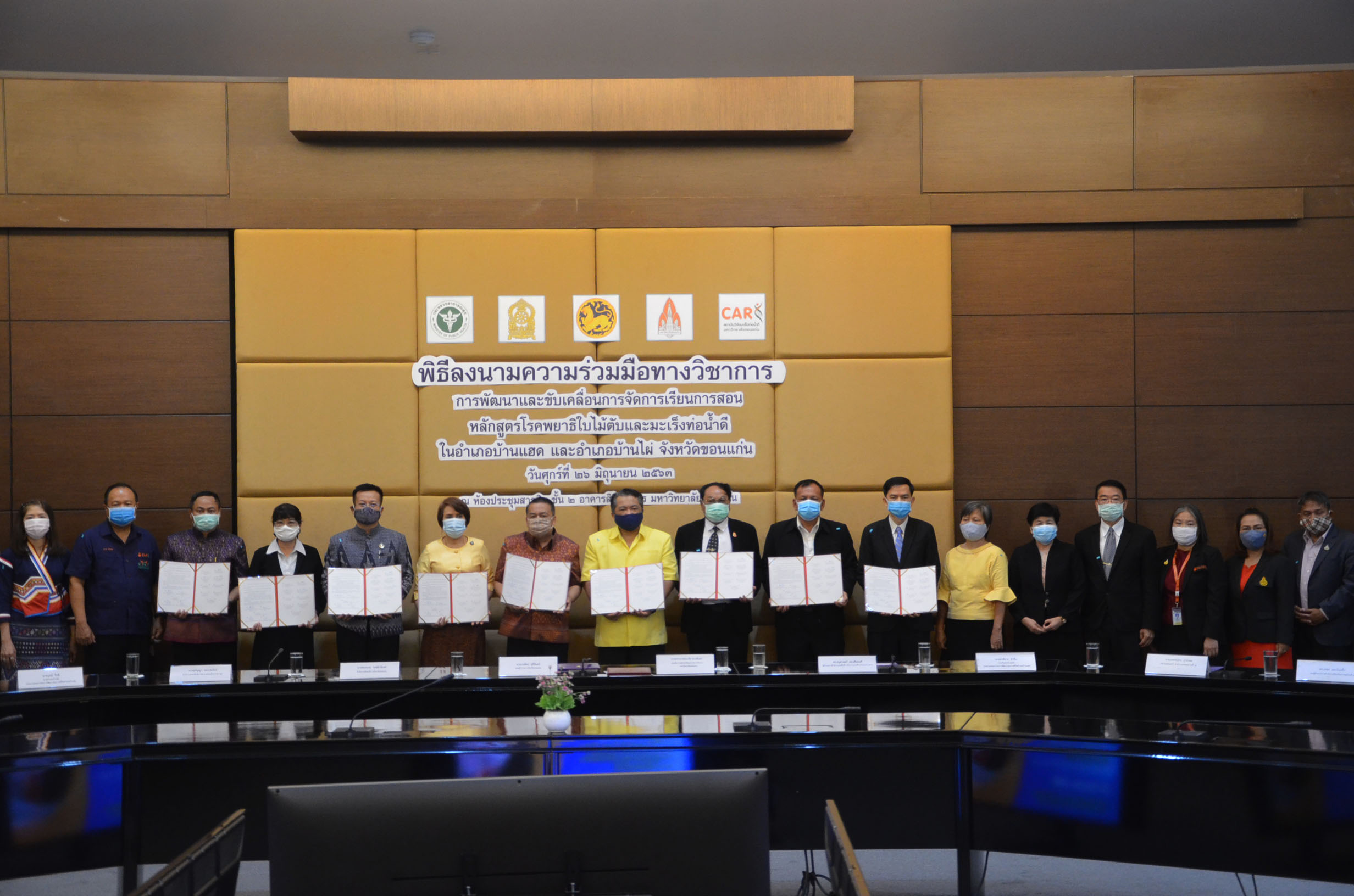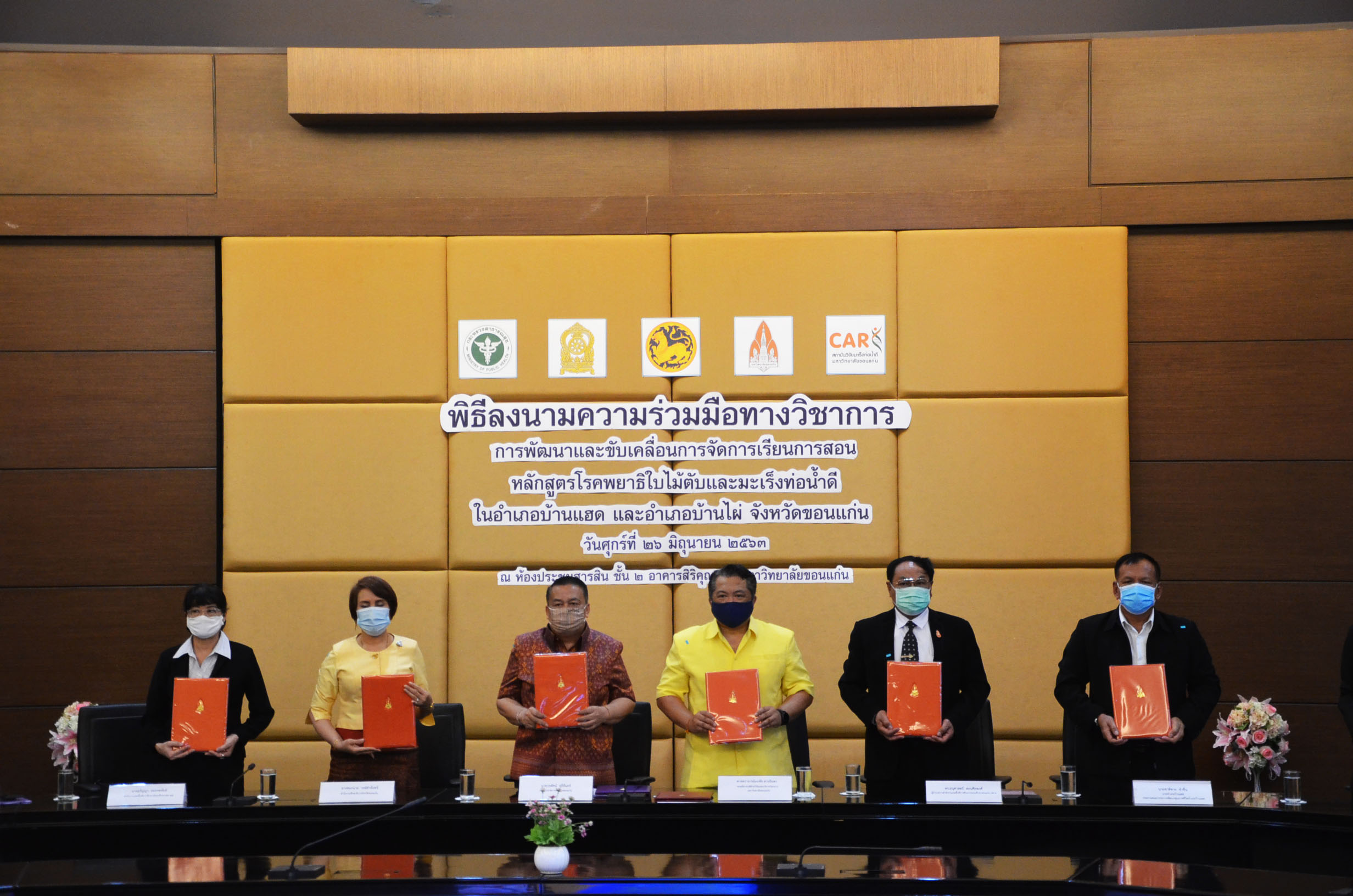 เมื่อวันที่ 26 มิถุนายน 2563 มหาวิทยาลัยขอนแก่น จัดพิธีลงนามข้อตกลงความร่วมมือทางวิชาการ ระหว่าง สถาบันวิจัยมะเร็งท่อน้ำดี และ คณะศึกษาศาสตร์ มหาวิทยาลัยขอนแก่น กับ สำนักงานศึกษาธิการจังหวัดขอนแก่น สำนักงานเขตพื้นที่การศึกษาประถมศึกษาขอนแก่นเขต 2 สำนักงานเขตพื้นที่การศึกษามัธยมศึกษาเขต 25 คณะกรรมการพัฒนาคุณภาพชีวิตอำเภอบ้านแฮด คณะกรรมการพัฒนาคุณภาพชีวิตอำเภอบ้านไผ่ สำนักงานป้องกันควบคุมโรคที่ 7 และ สำนักงานสาธารณสุขจังหวัดขอนแก่น ในการพัฒนาและขับเคลื่อนการจัดการเรียนการสอนหลักสูตรโรคพยาธิใบไม้ตับและมะเร็งท่อน้ำดี ในอำเภอบ้านแฮดและอำเภอบ้านไผ่ จังหวัดขอนแก่น โดยมี นายวรทัศน์ ธุลีจันทร์ รองผู้ว่าราชการจังหวัดขอนแก่น เป็นประธาน ศาสตราจารย์ ดร.มนชัย ดวงจินดา รองอธิการบดีฝ่ายวิจัยและบริการวิชาการ มหาวิทยาลัยขอนแก่น คณะผู้บริหารตัวแทนหน่วยงาน ร่วมลงนามเป็นสักขีพยาน ณ ห้องประชุมสารสิน ชั้น 2 อาคารสิริคุณากร