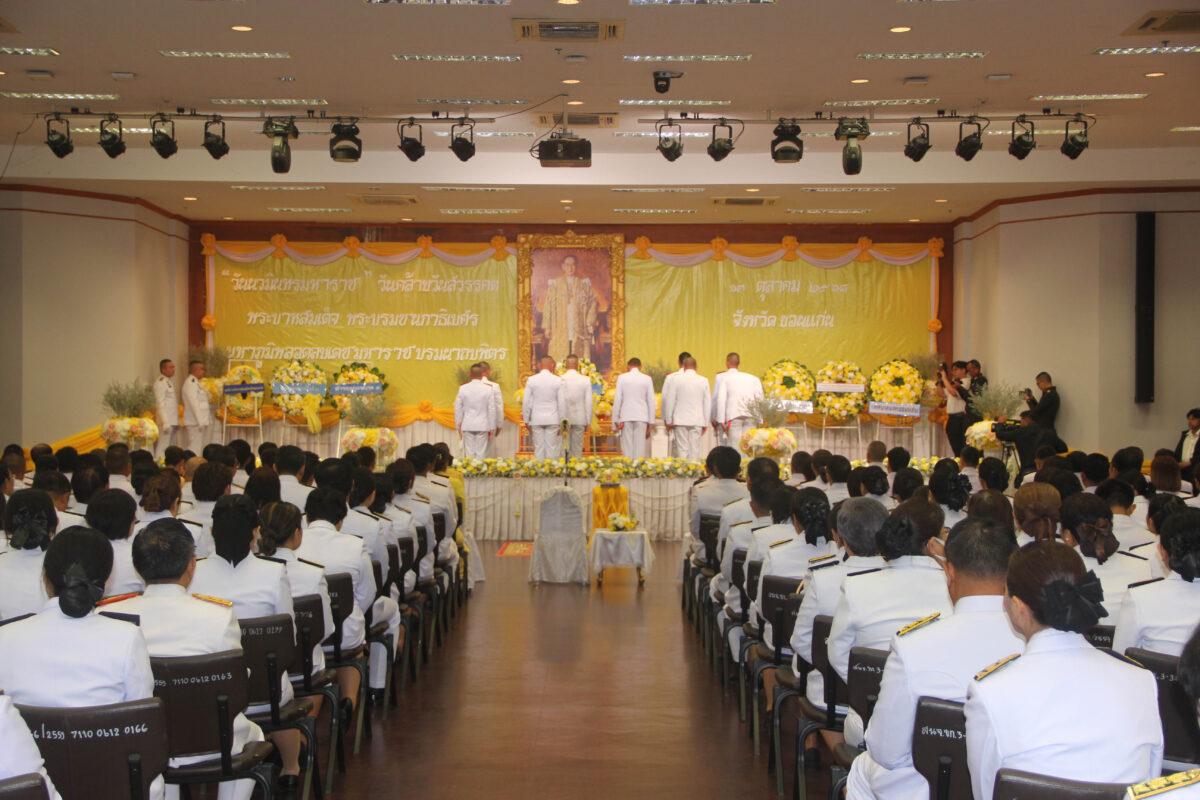 มหาวิทยาลัยขอนแก่น เข้าร่วมกิจกรรมสำคัญตามกำหนดการของจังหวัดขอนแก่น ซึ่งจัดขึ้น ณ ศาลากลางจังหวัดขอนแก่น โดยในเวลา ๐๗.๐๐ น. ได้มีพิธีวางพวงมาลาถวายราชสักการะ ณ ห้องประชุมแก่นเมือง โดยมี ประธานในพิธี นำคณะผู้เข้าร่วมพิธีวางพวงมาลา ถวายราชสักการะเบื้องหน้าพระบรมฉายาลักษณ์ พร้อมด้วยผู้เข้าร่วมพิธียืนสงบนิ่ง เพื่อน้อมรำลึกในพระมหากรุณาธิคุณ เป็นเวลา ๘๙ วินาที