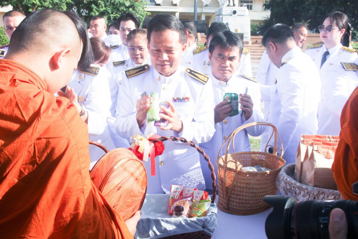 ต่อมาในเวลา ๐๘.๓๐ น. ได้จัดพิธีสวดพระพุทธมนต์และทำบุญตักบาตร ณ บริเวณพระบรมราชานุสาวรีย์รัชกาลที่ ๕ โดยประธานในพิธี พร้อมด้วยข้าราชการ พนักงานรัฐวิสาหกิจ องค์กรเอกชน นักเรียน นักศึกษา จิตอาสาพระราชทาน และประชาชนทั่วไป ร่วมพิธีทำบุญตักบาตรถวายเป็นพระราชกุศลในโอกาสสำคัญดังกล่าว