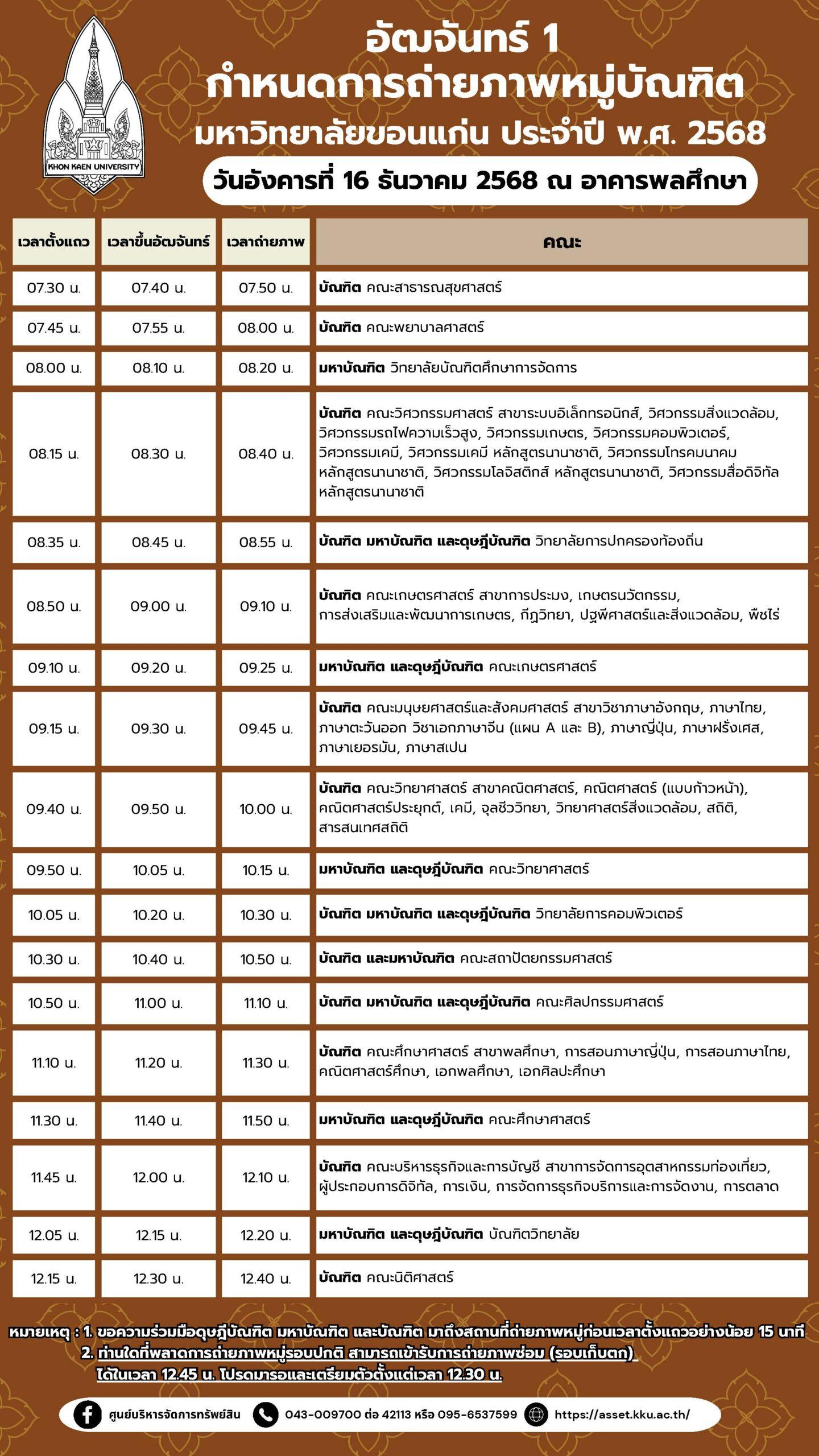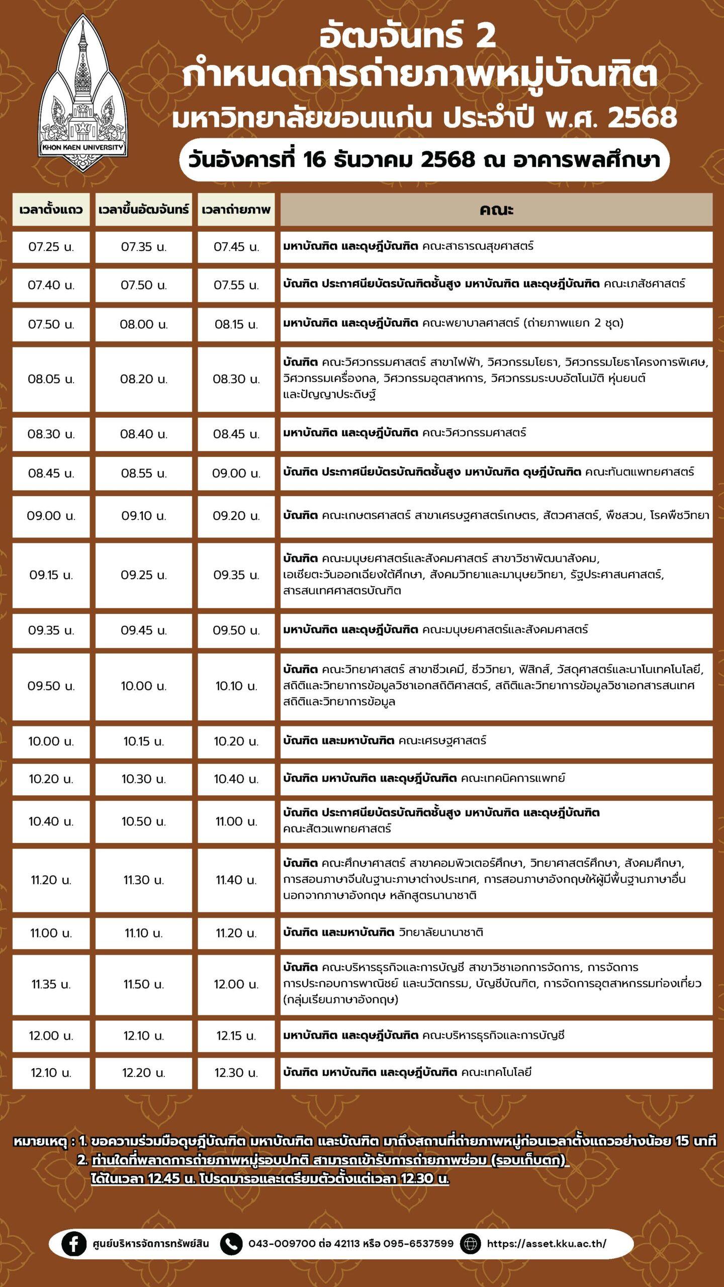 กำหนดการถ่ายภาพหมู่บัณฑิต และการจองภาพ ประจำปี 2568