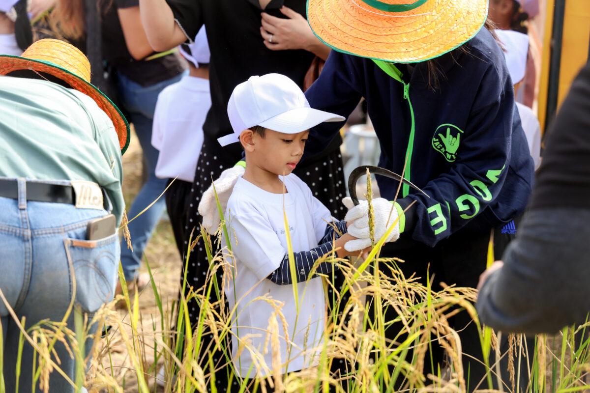 ต่อมานักเรียนชั้นอนุบาลร่วมกิจกรรมเกี่ยวข้าว นวดข้าว ทำขวัญข้าว เปิดประสบการณ์ตรงด้านอาชีพเกษตรกรรม วัฒนธรรม และภูมิปัญญาไทยอย่างลึกซึ้งและสนุกสนาน นอกจากนี้ยังส่งเสริม IQ, EQ และพัฒนาทักษะประสบการณ์นอกห้องเรียนให้แข็งแกร่งมากยิ่งขึ้น