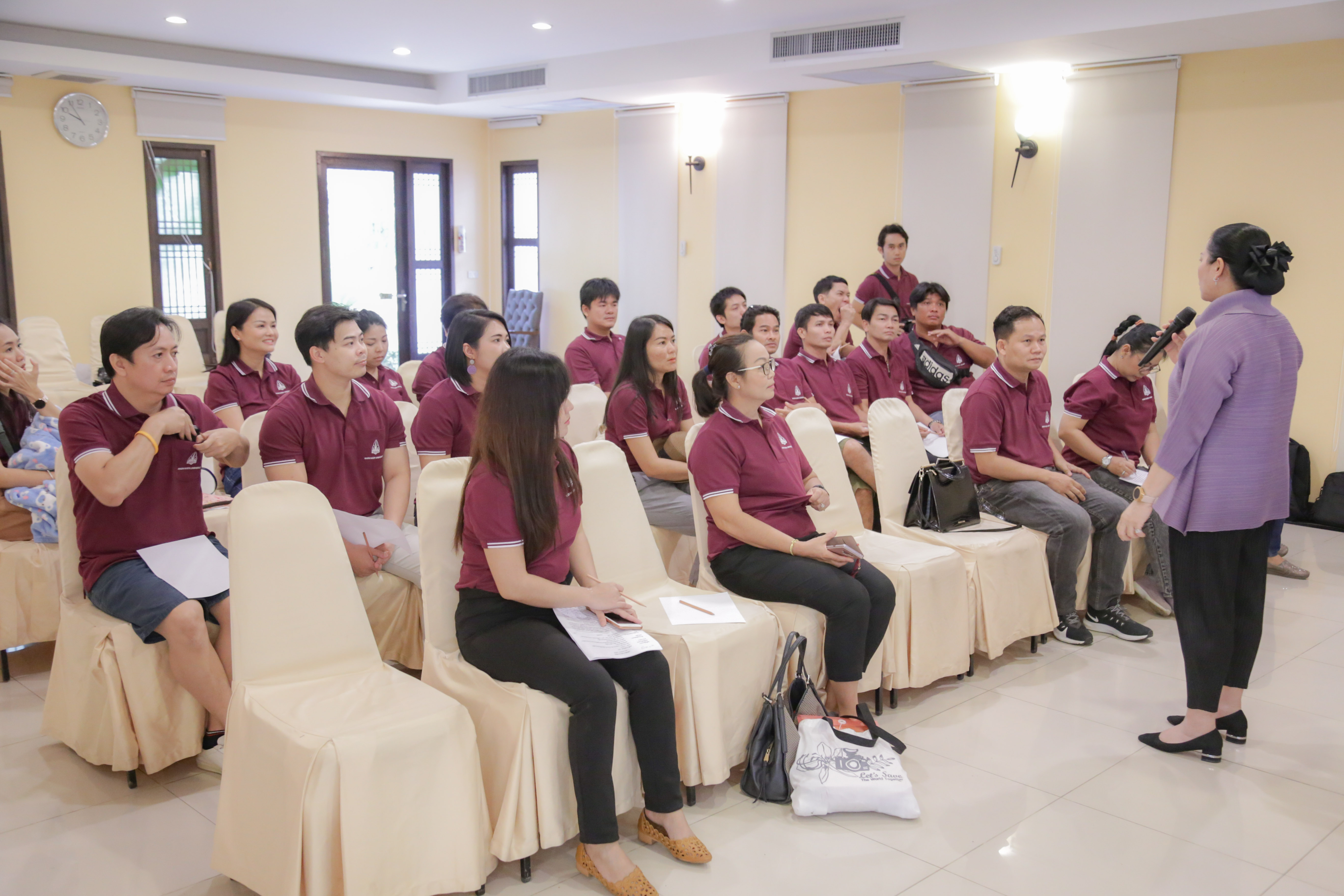 “เราพูดคุยกันเป็นประจำ เช่น เรามี weekly ทุกอาทิตย์ มีการประชุมอาทิตย์ละครั้ง หรือ 2 อาทิตย์ครั้ง กับผู้ที่เกี่ยวข้อง วิธีการประชุม คือ ให้บุคลากรสร้างหัวข้อที่เขาจะพูด ต่อจากนั้นจะให้พูดคุย แสดงข้อคิดเห็นของเขา ซึ่งเราจะนั่งฟังก่อน เมื่อฟังเสร็จแล้วจะปรึกษากันว่าเรามีความเห็นกับเขาอย่างไร ที่จะทำให้งานไปสู่เป้าหมาย หรือ จะแก้ปัญหาในจุดนั้นอย่างไร เพื่อให้เกิดการแก้ไขอย่างถูกต้อง”