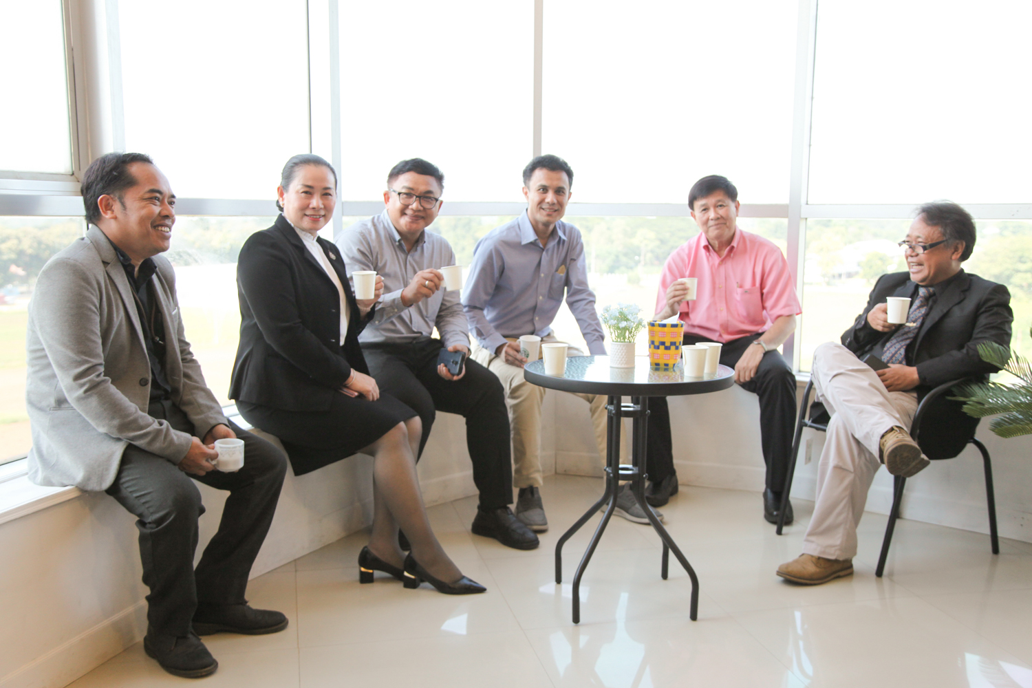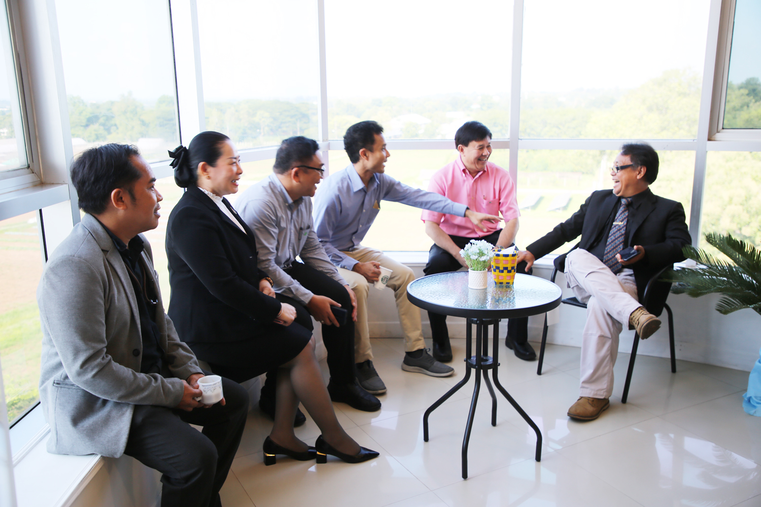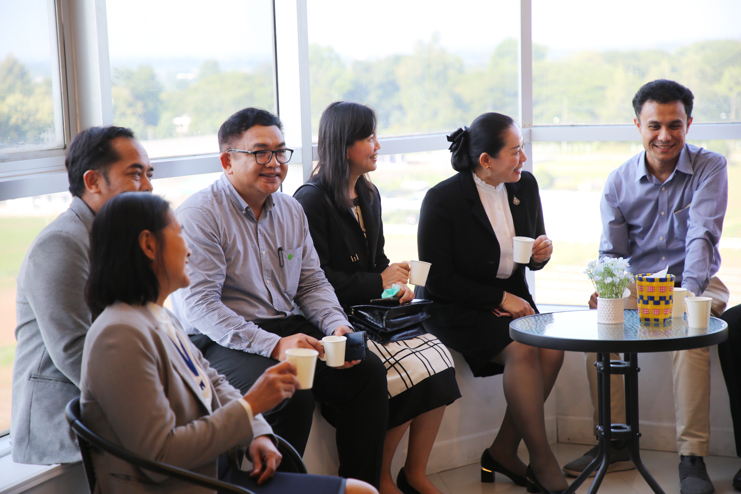 ผศ.ดร.เด่นพงษ์ สุดภักดี รองอธิการบดีฝ่ายดิจิทัล ผศ.อาวุธ ยิ้มแต้ รองอธิการบดีฝ่ายโครงสร้างพื้นฐานและสิ่งแวดล้อม รศ.ดร.นิยม วงศ์พงษ์คำ รองอธิการบดีฝ่ายศิลปวัฒนธรรมและเศรษฐกิจสร้างสรรค์ กับมุมกาแฟ แลกเปลี่ยนการทำงาน