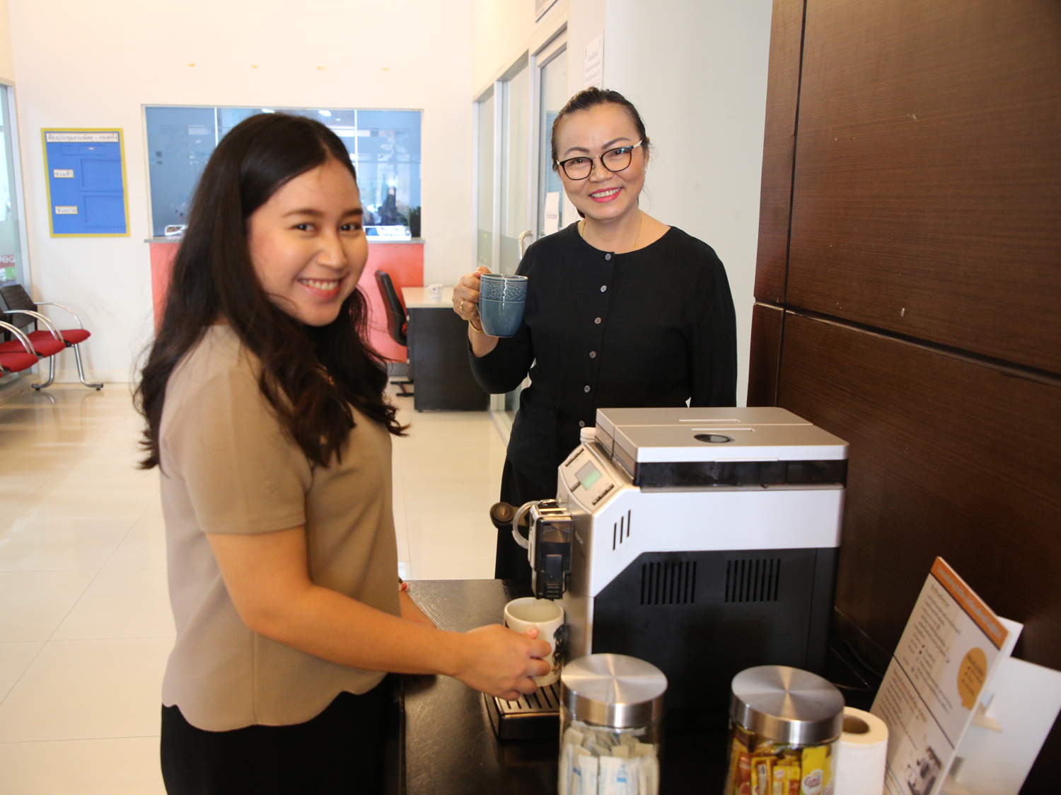 นางสาววิจิตรา แก่นเชียงสา พนักงานพัสดุ  กองคลัง  กล่าวว่า  โดยปกติตนจะออกนอกที่ทำงานไปหาซื้อกาแฟในเวลาก่อนเข้าทำงาน และเวลาพักเที่ยง แต่ปัจจุบัน ไม่ต้องออกไปข้างนอก เพราะมีมุมกาแฟในที่ทำงาน นอกจากจะสะดวกและประหยัดแล้ว ยังเพิ่มเวลาทำงาน และเป็นพื้นที่ให้แลกเปลี่ยนความคิดระหว่างเพื่อนร่วมงานและหน่วยงานอื่น ๆ อีก นับเป็นโครงการที่ดีมาก เพิ่มประสิทธิภาพการทำงาน และเพิ่มความสุขของคนทำงานได้อย่างดียิ่ง