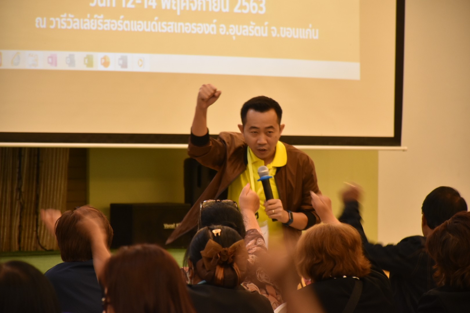 วันที่ 12 พฤศจิกายน 2563 ที่ผ่านมา สถาบันวิจัยมะเร็งท่อน้ำดี มหาวิทยาลัยขอนแก่น ร่วมมือกับ เทศบาลนครขอนแก่น จ.ขอนแก่น จัดกิจกรรม ค่ายผู้นำสู่การเปลี่ยนแปลงเพื่อแก้ไขปัญหาโรคพยาธิใบไม้ตับและมะเร็งท่อน้ำดี (อำเภอต้นแบบ : นครขอนแก่นโมเดล) ระหว่างวันที่ 12-14 พฤศจิกายน 2563 ณ วารีวัลเลย์ รีสอร์ต แอนด์ เรสเทอรองต์ อำเภออุบลรัตน์ จังหวัดขอนแก่น โดยมี รศ.นพ.ณรงค์ ขันตีแก้ว ผู้อำนวยการสถาบันวิจัยมะเร็งท่อน้ำดี กล่าวต้อนรับผู้เข้าอบรมและกล่าวเปิดงาน มีผู้เข้าร่วมกิจกรรมจากผู้นำชุมชน ตัวแทนครู เจ้าหน้าที่หน่วยบริการสุขภาพปฐมภูมิ และเจ้าหน้าที่เทศบาลนครขอนแก่น จำนวน 111 คน โดยการจัดกิจกรรมค่ายผู้นำฯ ในครั้งนี้เพื่อเป็นการสร้างความเข้าใจเป็นหนึ่งเดียวของคณะทำงานในโครงการฯ ทั้งในส่วนของภาครัฐ และภาคประชาชนรวมถึงการส่งเสริมให้มีการถ่ายทอดองค์ความรู้ในด้านการแก้ไขปัญหาโรคพยาธิใบไม้ตับและมะเร็งท่อน้ำดีเชิงบูรณาการ