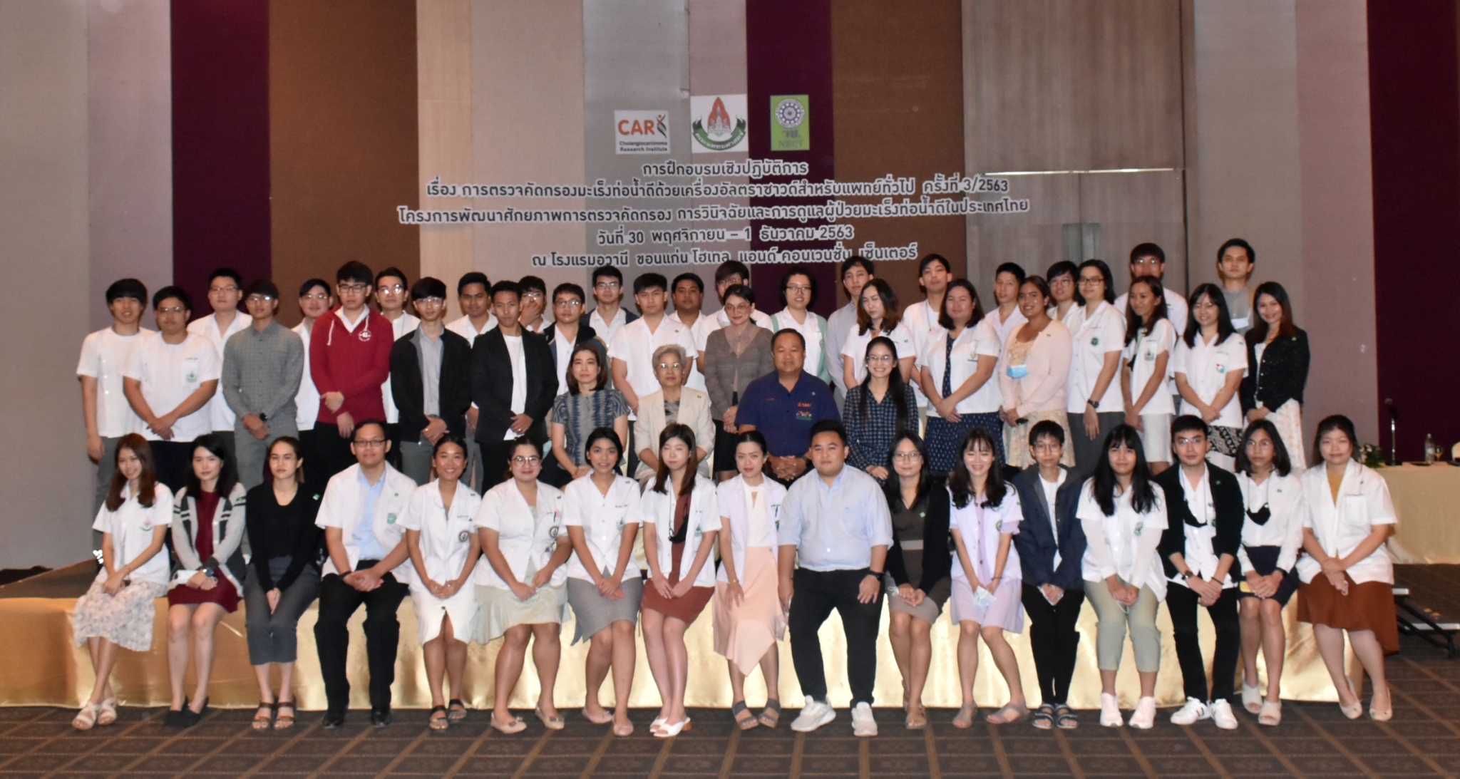 วันที่ 30 พฤศจิกายน 2563 สถาบันวิจัยมะเร็งท่อน้ำดี มหาวิทยาลัยขอนแก่น ร่วมกับ ภาควิชารังสีวิทยา คณะแพทยศาสตร์ มหาวิทยาลัยขอนแก่น จัดฝึกอบรมเชิงปฏิบัติการ เรื่อง “การตรวจคัดกรองมะเร็งท่อน้ำดีด้วยเครื่องอัลตราซาวด์สำหรับแพทย์ทั่วไป ครั้งที่ 3/2563” ณ โรงแรมอวานีขอนแก่นโฮเทลแอนด์คอนเวนชั่นเซ็นเตอร์ จ.ขอนแก่น โดยมีแพทย์จากเขตสุขภาพที่ 7,8,9 และ 10 เข้าร่วมฝึกอบรม จำนวน 55 คน โดยงานนี้ได้รับเกียรติจาก รศ.พญ.วรินทร พุทธรักษ์ รองหัวหน้าภาควิชารังสีวิทยาฝ่ายวิชาการ คณะแพทยศาสตร์ มหาวิทยาลัยขอนแก่น เป็นประธานในพิธีเปิด