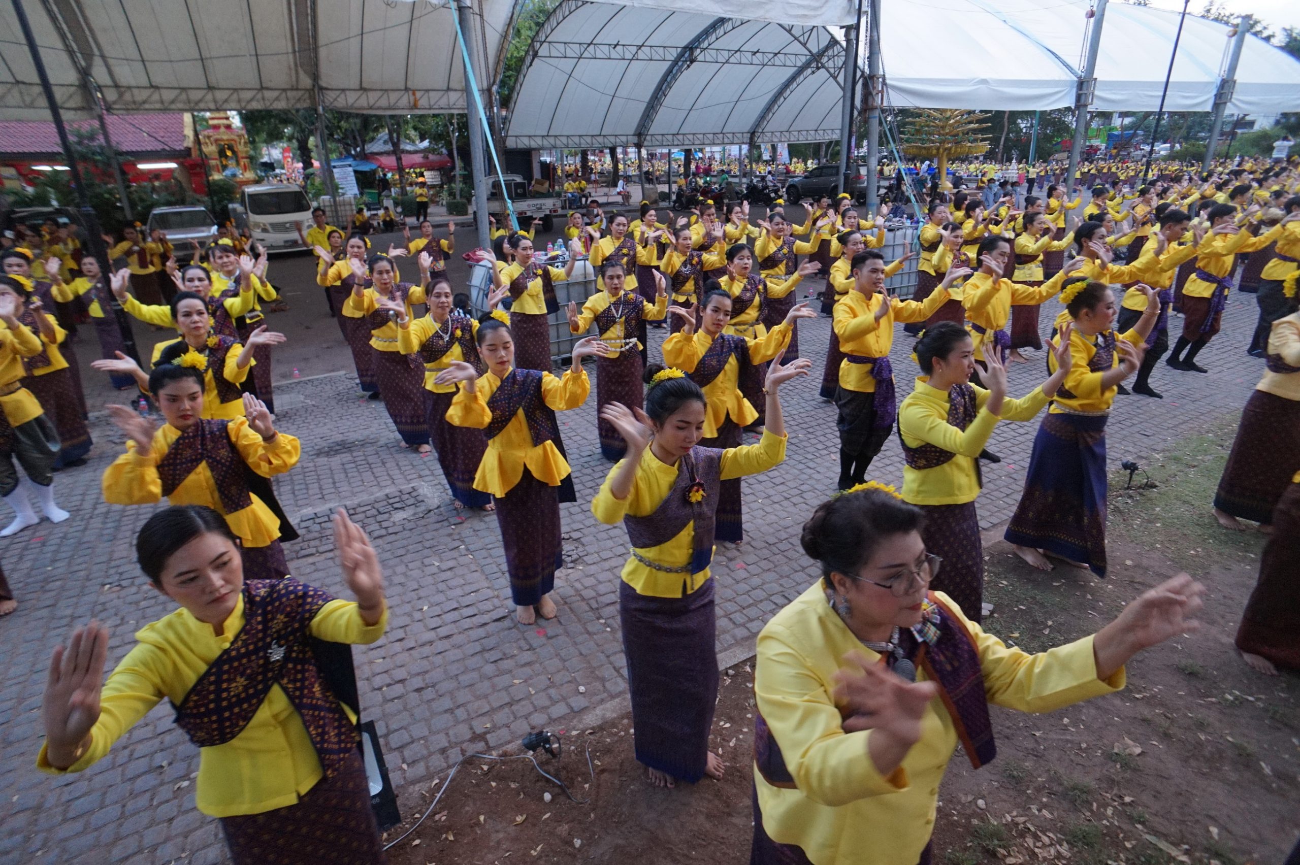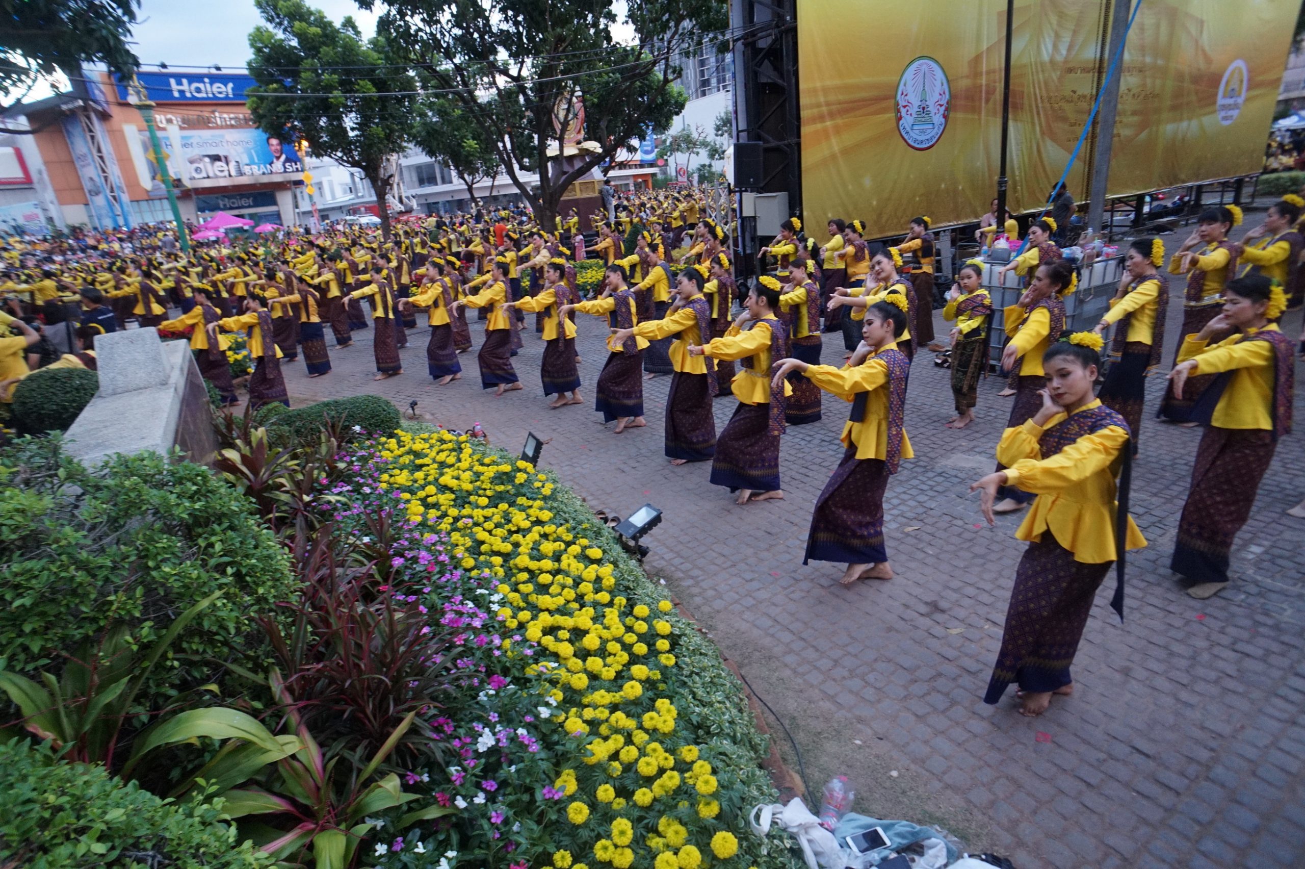 บรรยากาศของการมีส่วนร่วมของมหาวิทยาลัยขอนแก่น ณ บริเวณศาลหลักเมืองขอนแก่น ชาวมหาวิทยาลัยขอนแก่น ประกอบด้วย ผู้บริหารมหาวิทยาลัย ผู้อำนวยการ หัวหน้าส่วนงาน บุคลากร และนักศึกษา รวมทั้งบุตรหลานของบุคลากรที่มีความตั้งใจมาร่วมกิจกรรม ต่างแต่งกายตามที่จังหวัดขอนแก่นได้กำหนดไว้อย่างสวยงามมาจัดแถวรอการเริ่มพิธีการตั้งแต่เวลา 14.00 น.โดยมีบุคลากรจากกองสื่อสารองค์กรคอยอำนวยความสะดวกและบริการน้ำดื่มตลอดกิจกรรม จนเมื่อถึงเวลาพิธีทุกคนได้ตั้งใจร่ายรำตามจังหวะเพลงที่กำหนดไว้ร่วมกับตัวแทนหน่วยงานและประชาชนจำนวน 3 เพลง 2 รอบ คือ เพลงขอนแก่นวันนี้ เพลงฟ้อนผูกเสี่ยว และเพลงดอกคูนเสียงแคน ซึ่งในปีนี้มีผู้รำจำนวน 60,000 คน ผู้รำชายแต่งกายด้วยเสื้อเหลืองดอกคูน กางเกงดำ คาดเอวด้วยผ้าขาวม้าหรือผ้าลายแคนแก่นคูน ผู้รำหญิง แต่งกายด้วยเสื้อเหลืองดอกคูน ผ้าซิ่นลายมัดหมี่สีเข้ม หรือผ้าซิ่นลายแคนแก่นคูน พาดผ้าสไบลายแคนแก่นคูน เป็นภาพที่สวยงามและพร้อมเพรียงสะท้อนความตั้งใจที่แน่วแน่ของผู้มาร่วมงานทุกคน