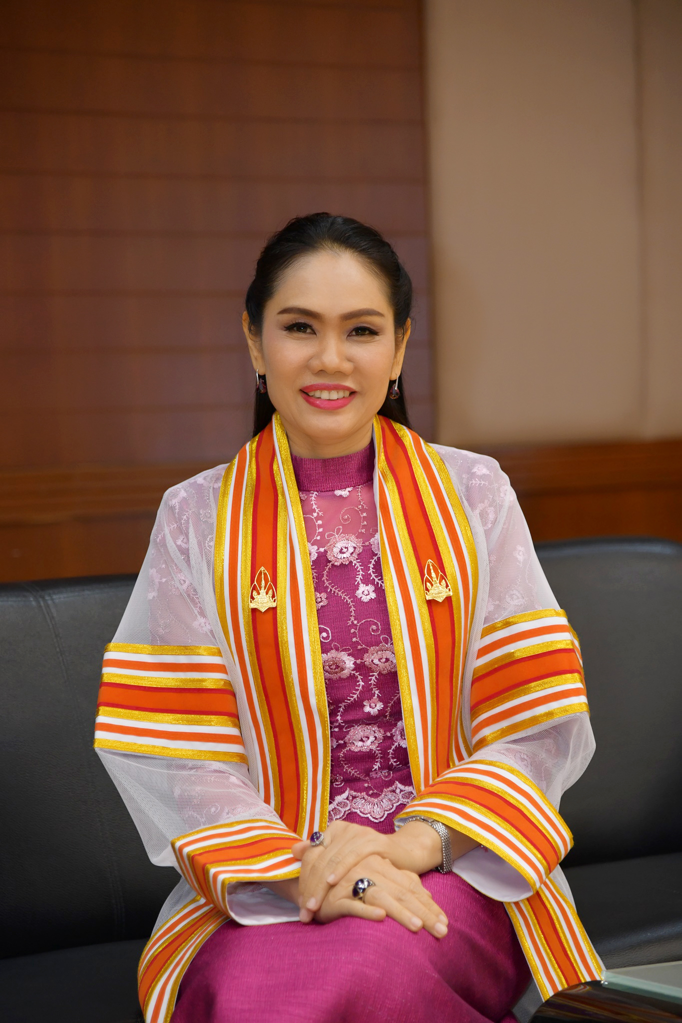 “ในการสำเร็จการศึกษานั้นก็ถือเป็นเพียงจุดเริ่มต้นของชีวิต ดังนั้นในการที่จะไปประกอบอาชีพและไปใช้ชีวิตในโลกแห่งความเป็นจริง ที่จะต้องไปทำมาหาเลี้ยงชีพนั้น คณะฯก็ขอฝากแง่คิดดีๆไว้กับบัณฑิต โดยขอหยิบยกค่านิยมของคณะฯที่พวกเราได้ทำงาน โดยมีค่านิยมที่นำทางพวกเราก็คือ KKBS ตัวอักษร K ตัวแรกก็คือ Knowledge Excellence หรือ เลิศด้วยความรู้ การทำงานสิ่งใดก็ตาม ผู้ทำงานต้องมีความรู้ความเข้าใจในความชำนาญในการทำงานนั้นๆ ดังนั้นผู้ที่ทำงานจะต้องไม่หยุดที่จะใฝ่เรียนรู้ เพื่อให้ตัวเองมีความรู้ตลอดเวลา และก็มีความรู้ที่กว้างไกล สำหรับ K ตัวที่สองก็คือ Keen Unity หรือ คู่ความสมัครสมาน ก็คือเรื่องของความสมัครสมานสามัคคี การทำงานสิ่งใดก็ตามต้องมีความรักความสามัคคี มีความเป็นอันหนึ่งอันเดียวกัน ทำงานกับผู้อื่นได้ ยอมรับผู้อื่นปรับตัวเองเข้ากับผู้อื่นได้ ส่วนตัว B ก็คือ Being Result-driven Culture หรือ สร้างงานมุ่งผลลัพธ์ ก็คือการทำงานนั้นต้องมีวัฒนธรรมในการทำงานที่มุ่งเน้นผลลัพธ์ มีความรับผิดชอบ มีวินัยในการทำงาน ไม่เพียงแต่ทำงานให้เสร็จ ต้องทำงานให้สำเร็จ ทำงานให้มีผลลัพธ์ที่เป็นประโยชน์ต่อองค์กร ที่จะนำพาองค์กรไปสู่ความเจริญก้าวหน้า สำหรับตัว S ก็คือ Social Responsibility หรือ รวมพลังสร้างสรรค์สังคม ถือเป็นสิ่งสำคัญในการใช้ชีวิตของมนุษย์เรา นอกจากจะทำงานแล้ว เรายังจะต้องดูแลสังคมด้วย หวังเป็นอย่างยิ่งว่าค่านิยมในการทำงาน KKBS ที่มอบให้จะทำให้บัณฑิตของเราทุกท่านเป็นทั้งคนเก่งและเป็นคนดีค่ะ