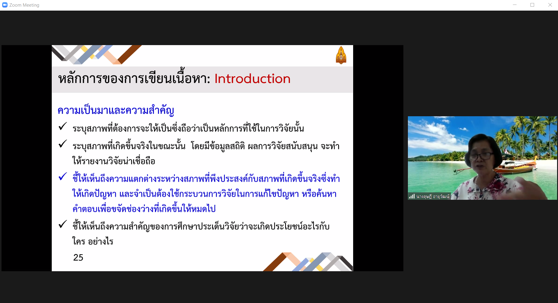 มหาวิทยาลัยขอนแก่น เป็นหนึ่งในมหาวิทยาลัยวิจัยแห่งชาติ ซึ่งมุ่งเน้นที่จะผลิตผลงานวิจัยอันเป็นที่ยอมรับและเกิดประโยชน์ในด้านวิชาการ ด้านการกำหนดนโยบาย ตลอดจนการนำไปใช้ประโยชน์ในด้าน ต่าง ๆ คณะสหวิทยาการ มหาวิทยาลัยขอนแก่น วิทยาเขตหนองคาย เป็นคณะใหม่ที่เกิดจากการปรับโครงสร้างองค์การมีความมุ่งหวังให้อาจารย์ทุกท่านปรับเปลี่ยนการทำงานการวิจัยเพื่อนำไปใช้ประโยชน์ มีผลงานบทความวิจัยที่เพิ่มขึ้น เป็นที่ยอมรับในระดับชาติ และนานาชาติ ในการเข้าอบรมครั้งนี้มี คณาจารย์ให้ความสนใจ มากกว่า 20 คน จัดการประชุมในรูปแบบ ออนไลน์ เพื่อป้องกันการแพร่กระจายเชื้อไวรัสโคโรน่า (COVID-19)